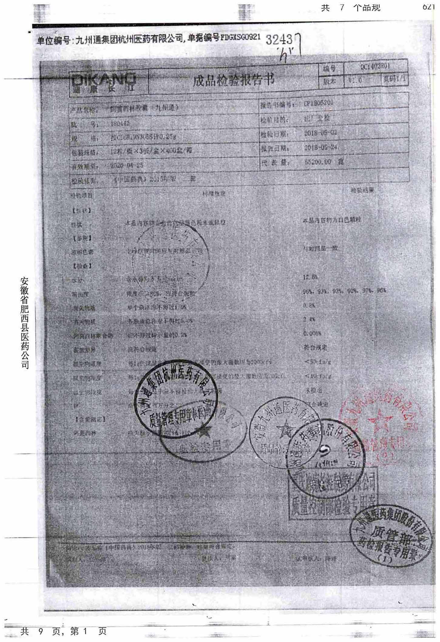 名称 | 规格 | 批号 | 药检报告 |