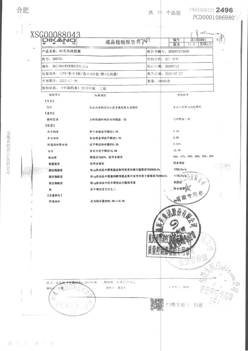 阿莫西林胶囊 | 0.25g*36粒 | 200701 | 查看详情 |