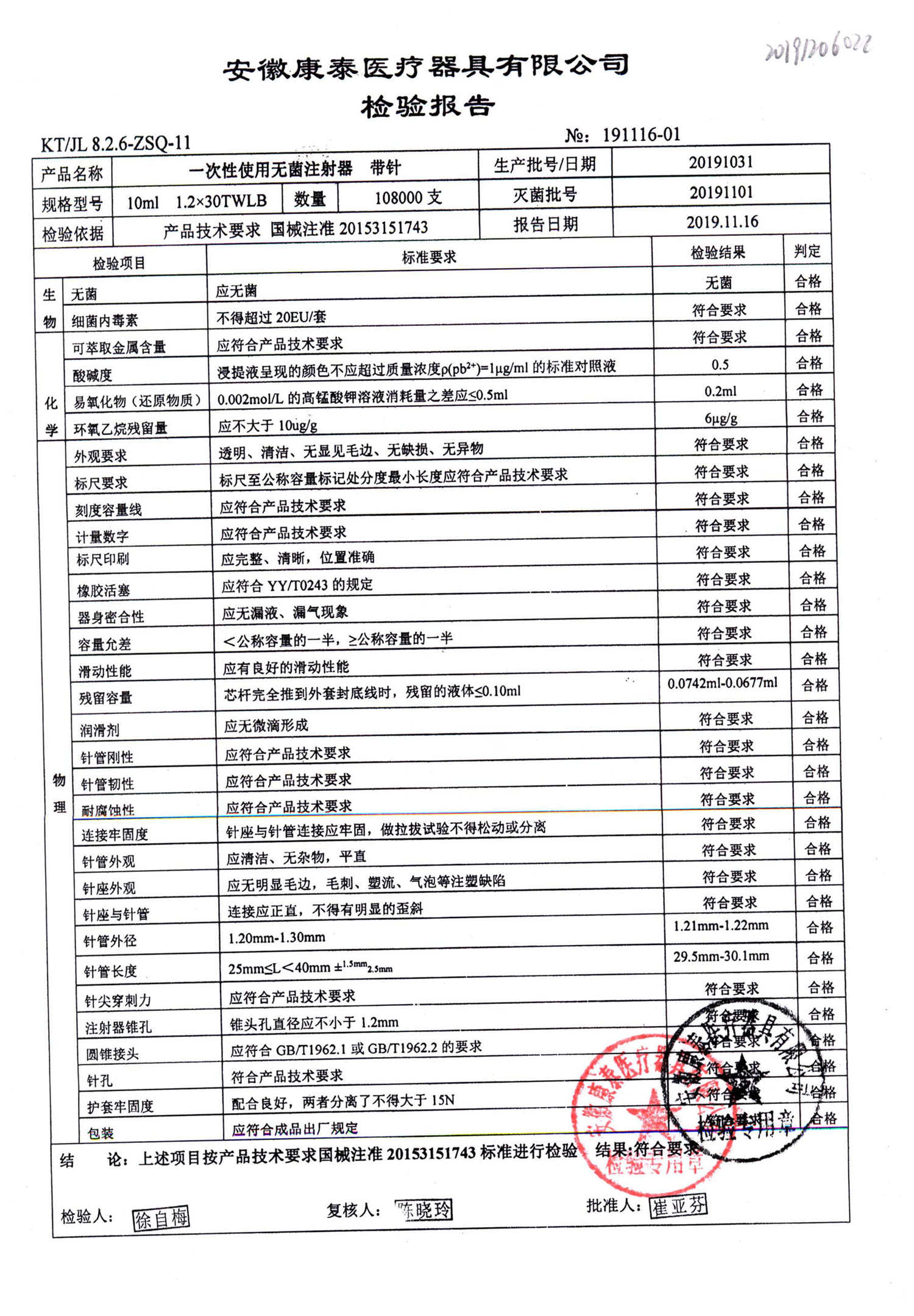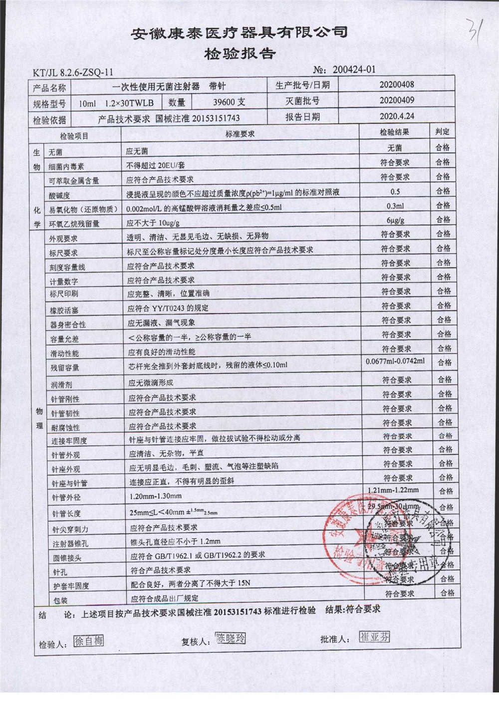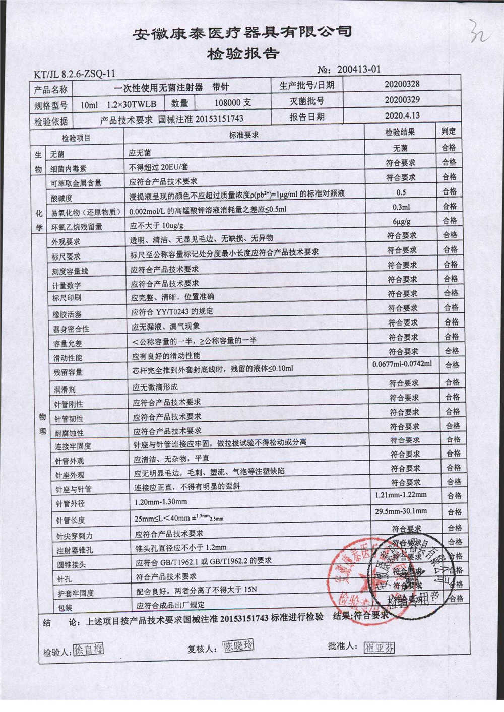 一次性使用无菌注射器 带针 | 10ml 1.2*30TWLB | 20200408 | 查看详情 |