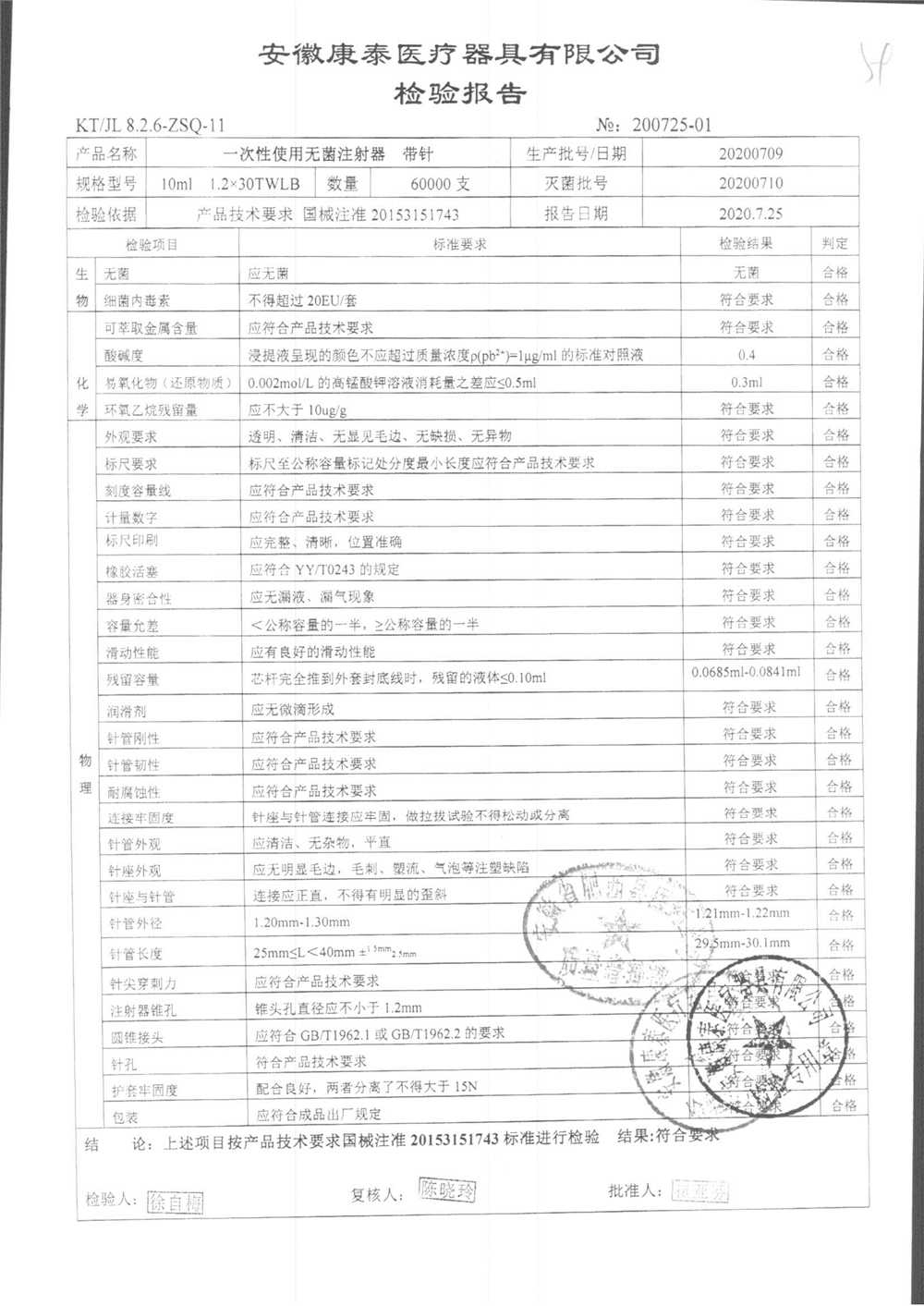 一次性使用无菌注射器 带针 | 10ml 1.2*30TWLB | 20200709 | 查看详情 |