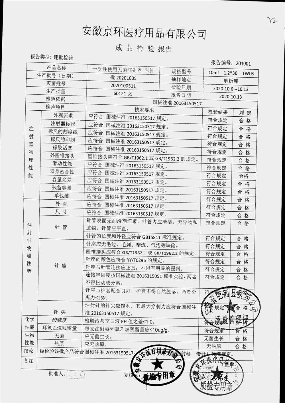 一次性使用无菌注射器 带针 | 10ml 1.2*30TWLB | 20201005 | 查看详情 |