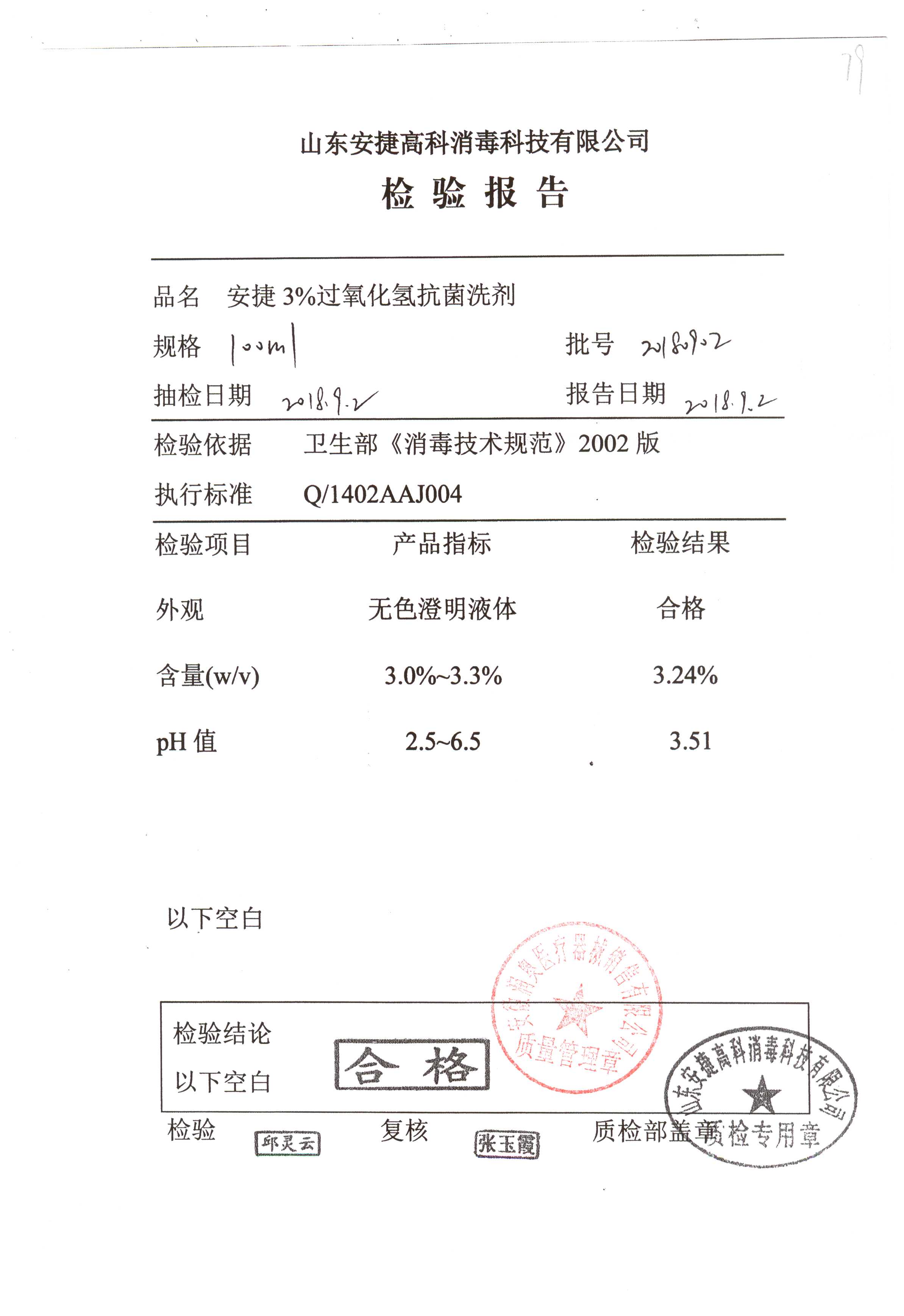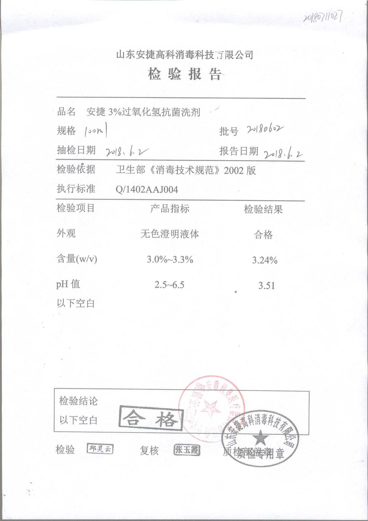 安捷3%过氧化氢抗菌洗剂 | 100ml | 20180902 | 查看详情 |