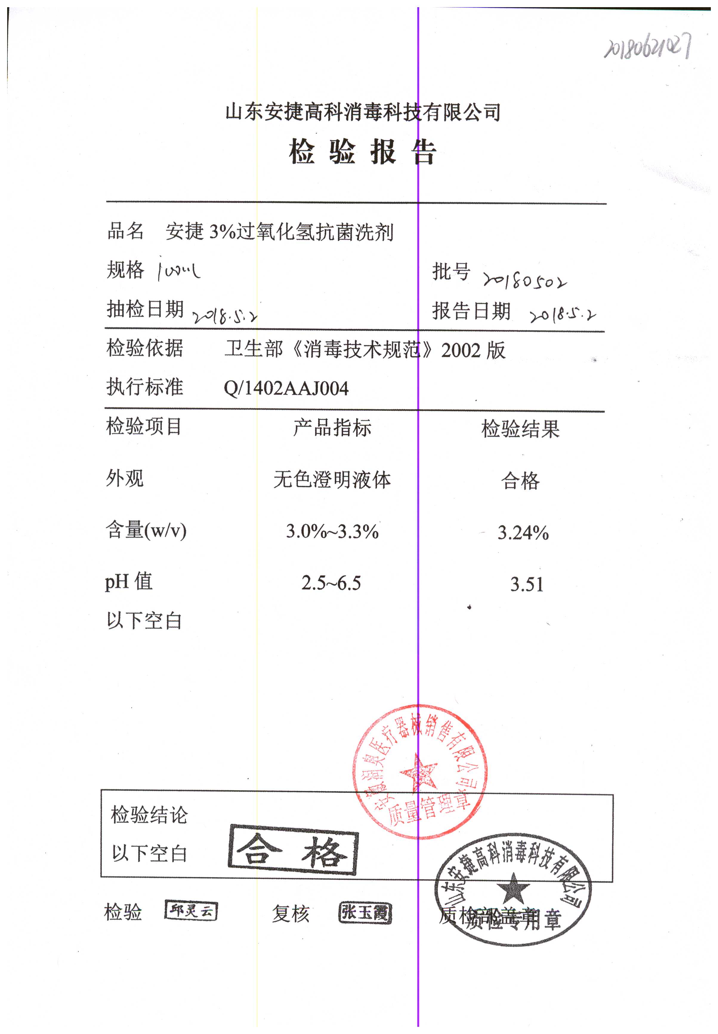 安捷3%过氧化氢抗菌洗剂 | 100ml | 20180602 | 查看详情 |