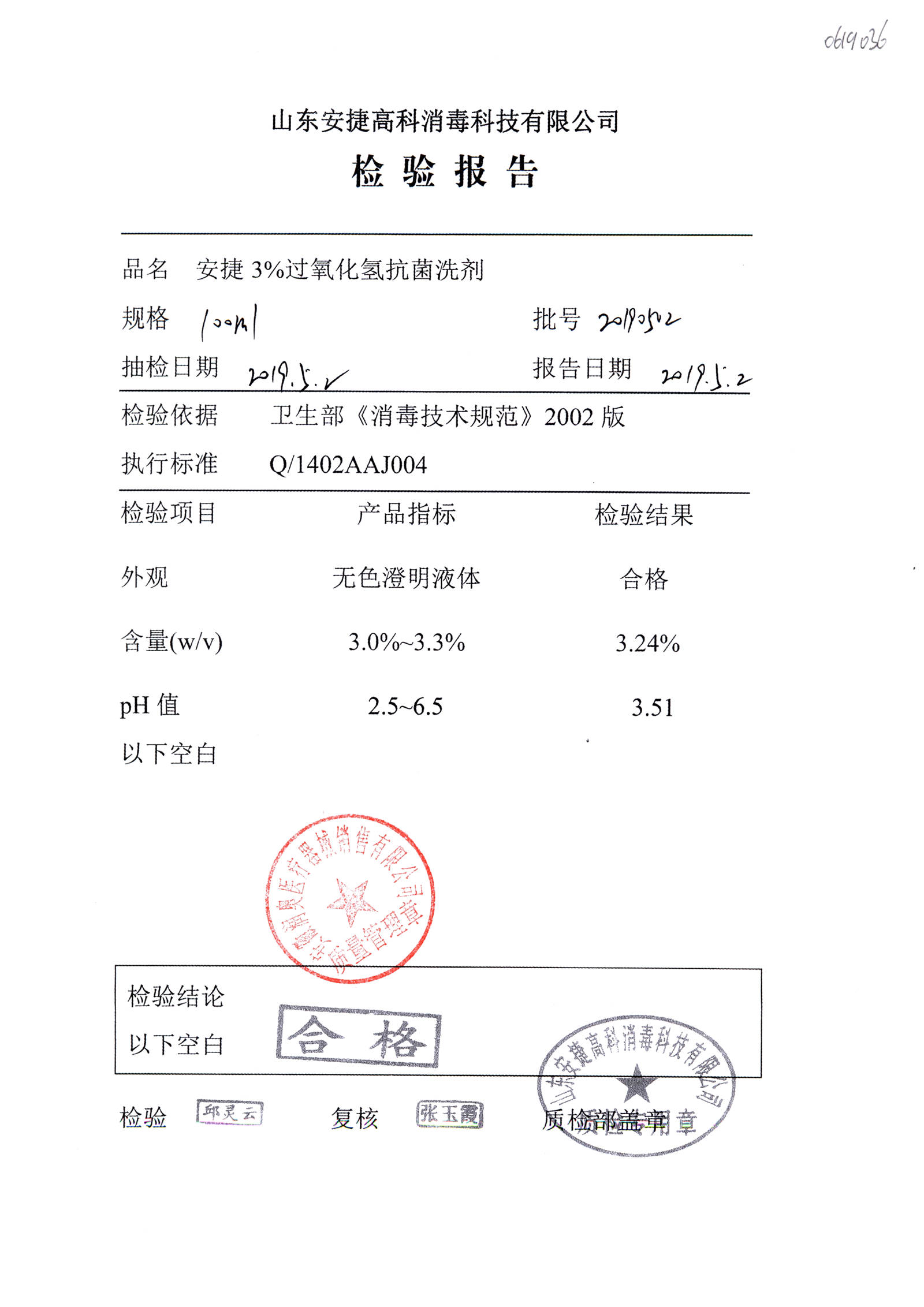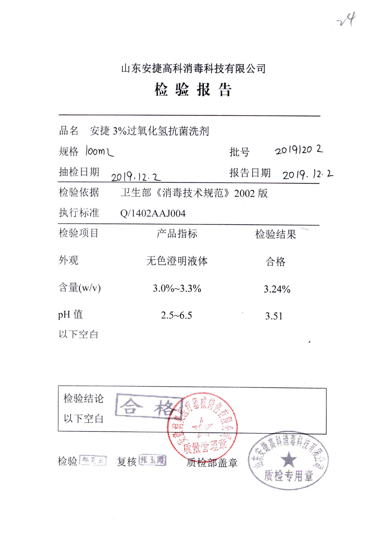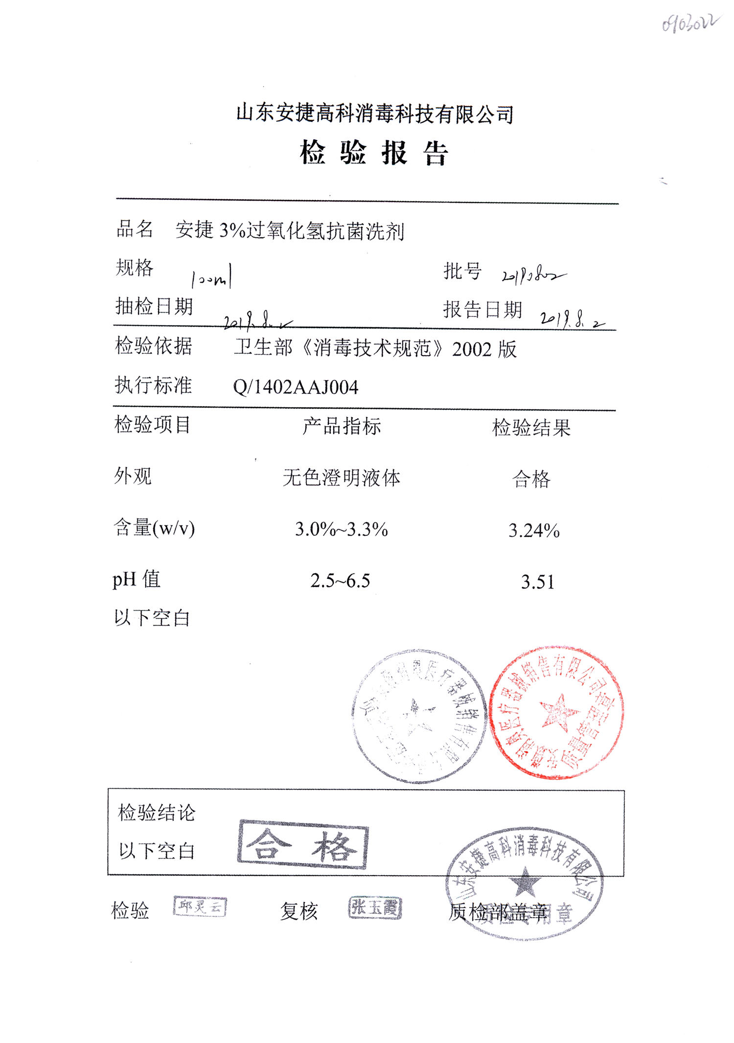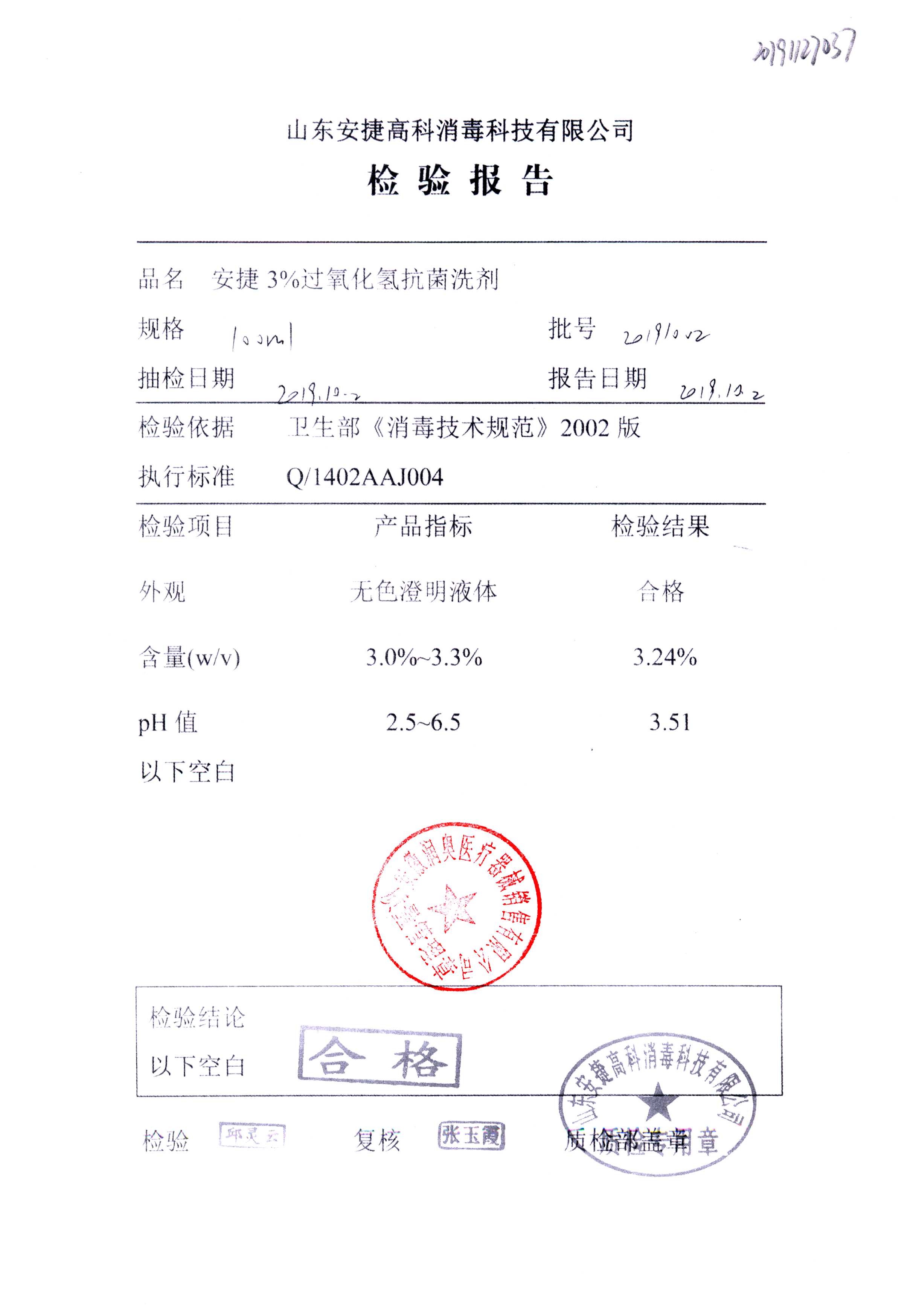 安捷3%过氧化氢抗菌洗剂 | 100ml | 20191002 | 查看详情 |
