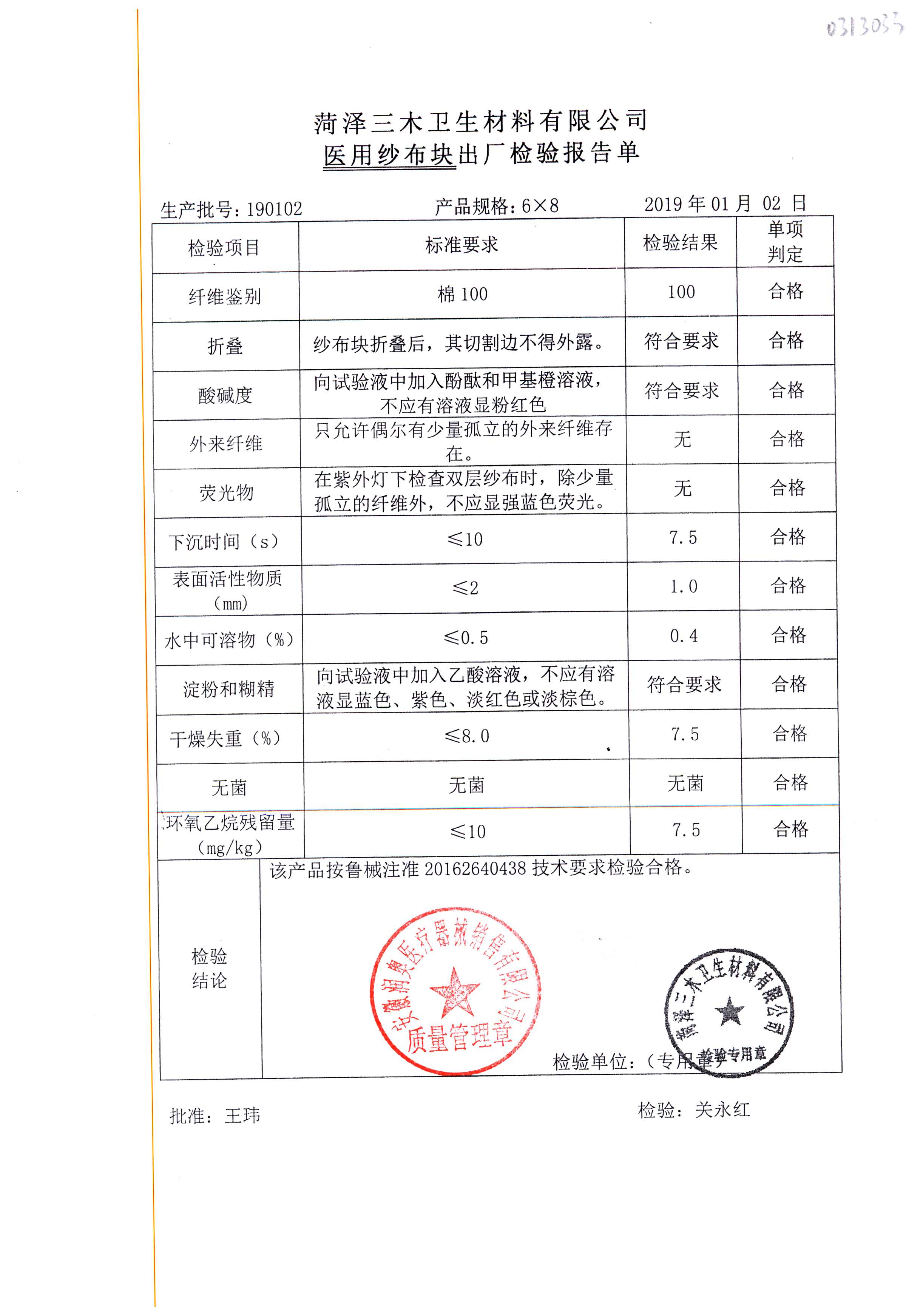 名称 | 规格 | 批号 | 药检报告 |