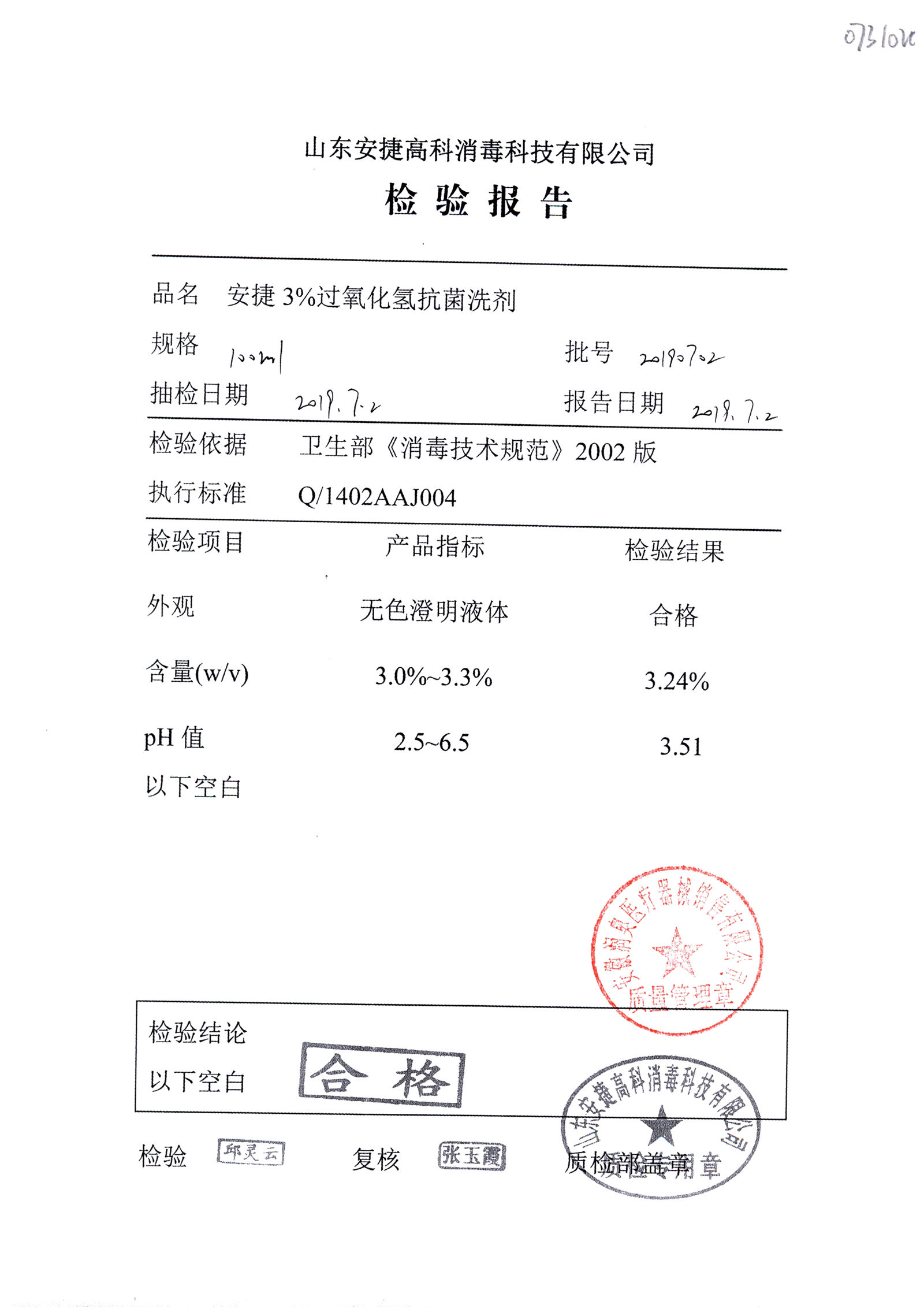 安捷3%过氧化氢抗菌洗剂 | 100ml | 20190702 | 查看详情 |