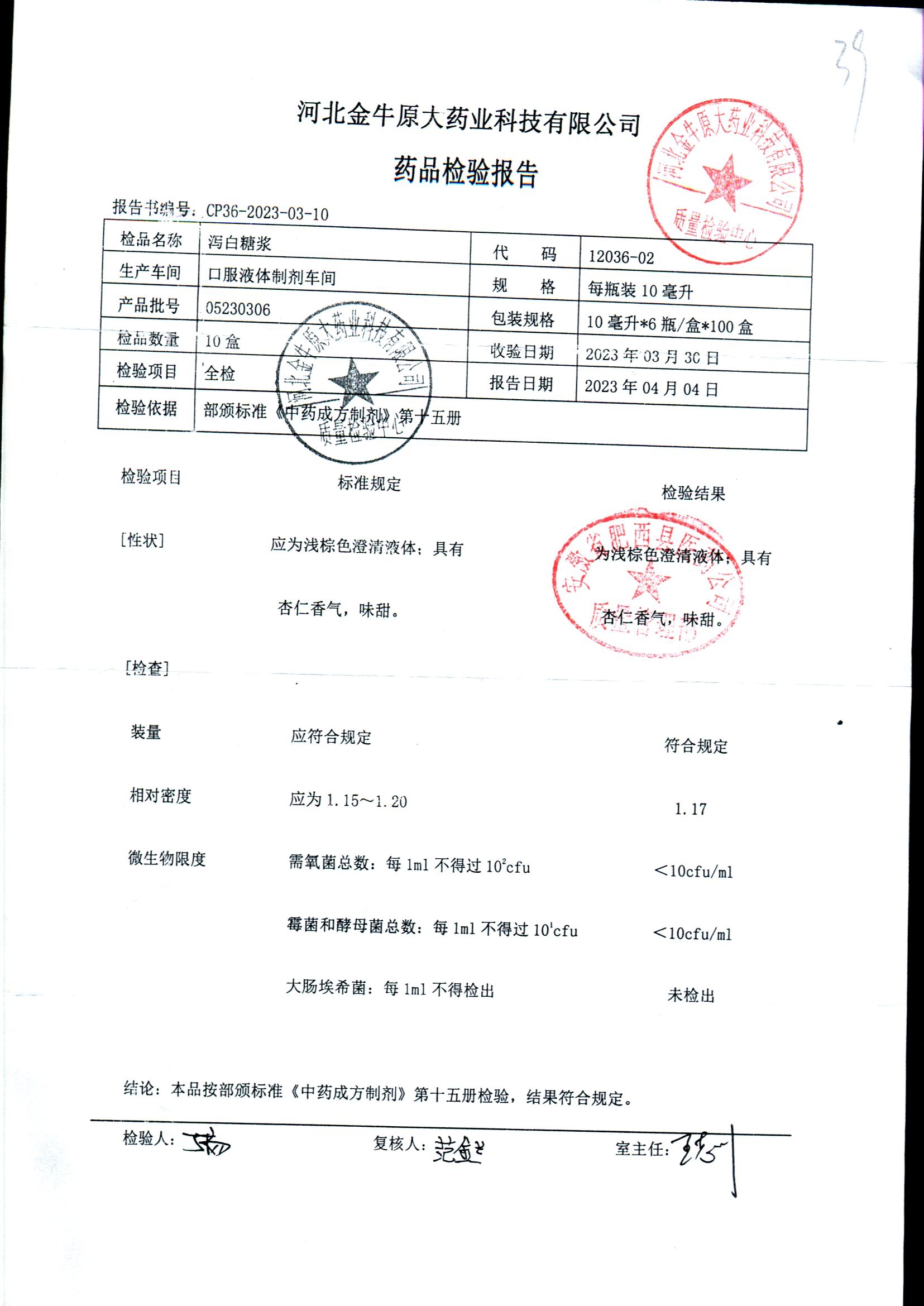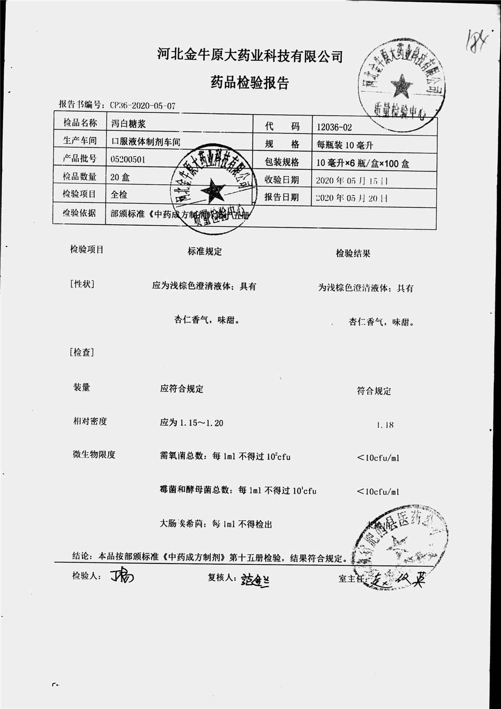 泻白糖浆 | 10ml | 05190307 | 查看详情 |