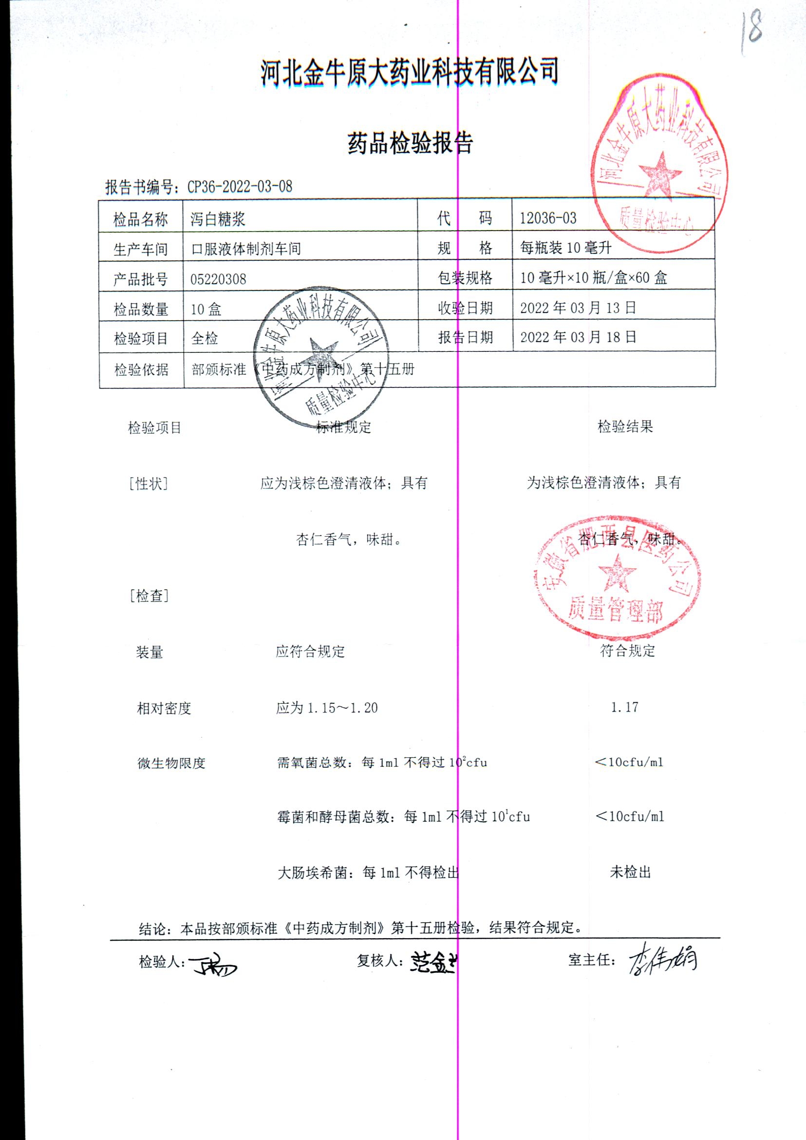 泻白糖浆 | 10ml | 05180903 | 查看详情 |