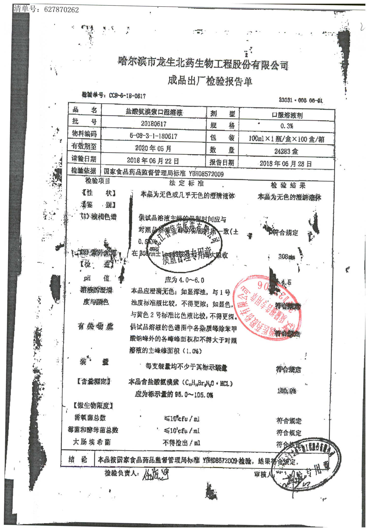盐酸氨溴索口服溶液 | 10ml | 20180617 | 查看详情 |