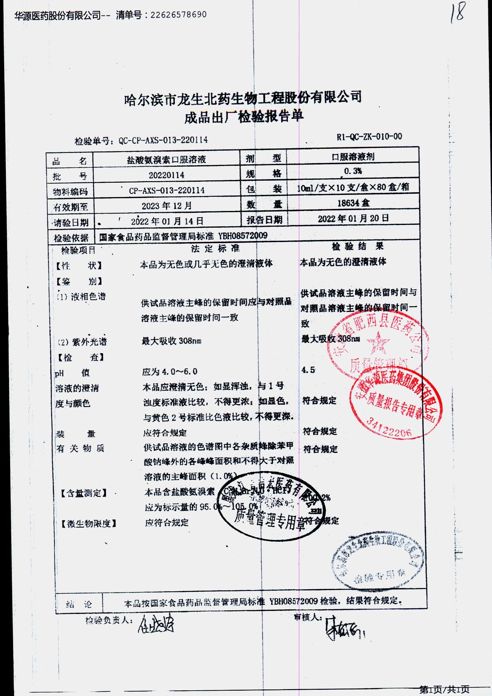 盐酸氨溴索口服溶液 | 10ml | 20180501 | 查看详情 |