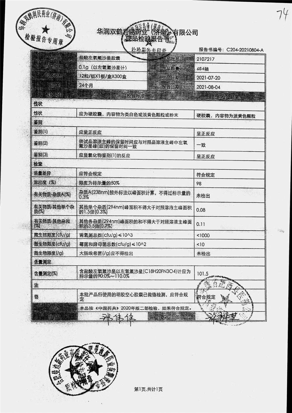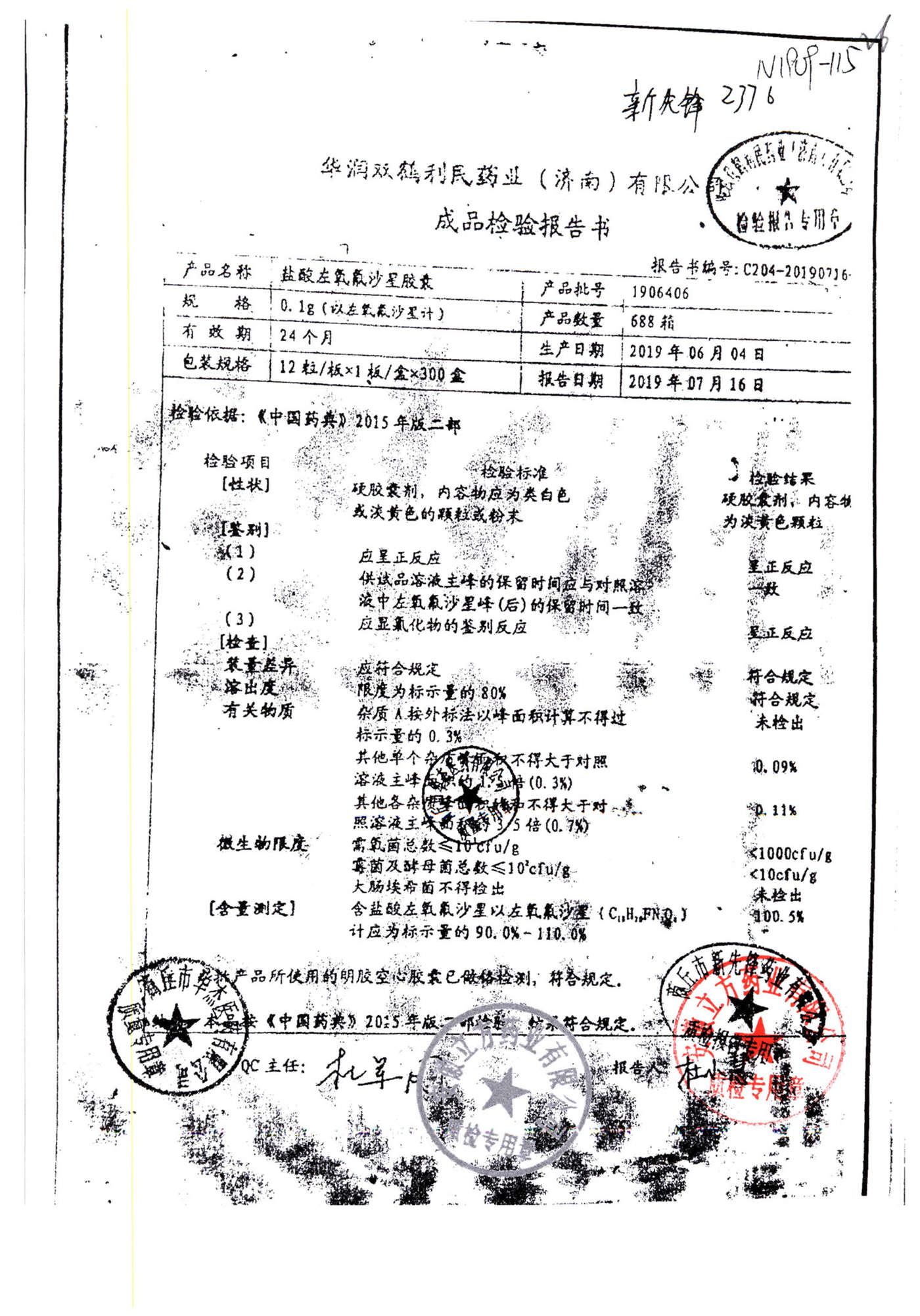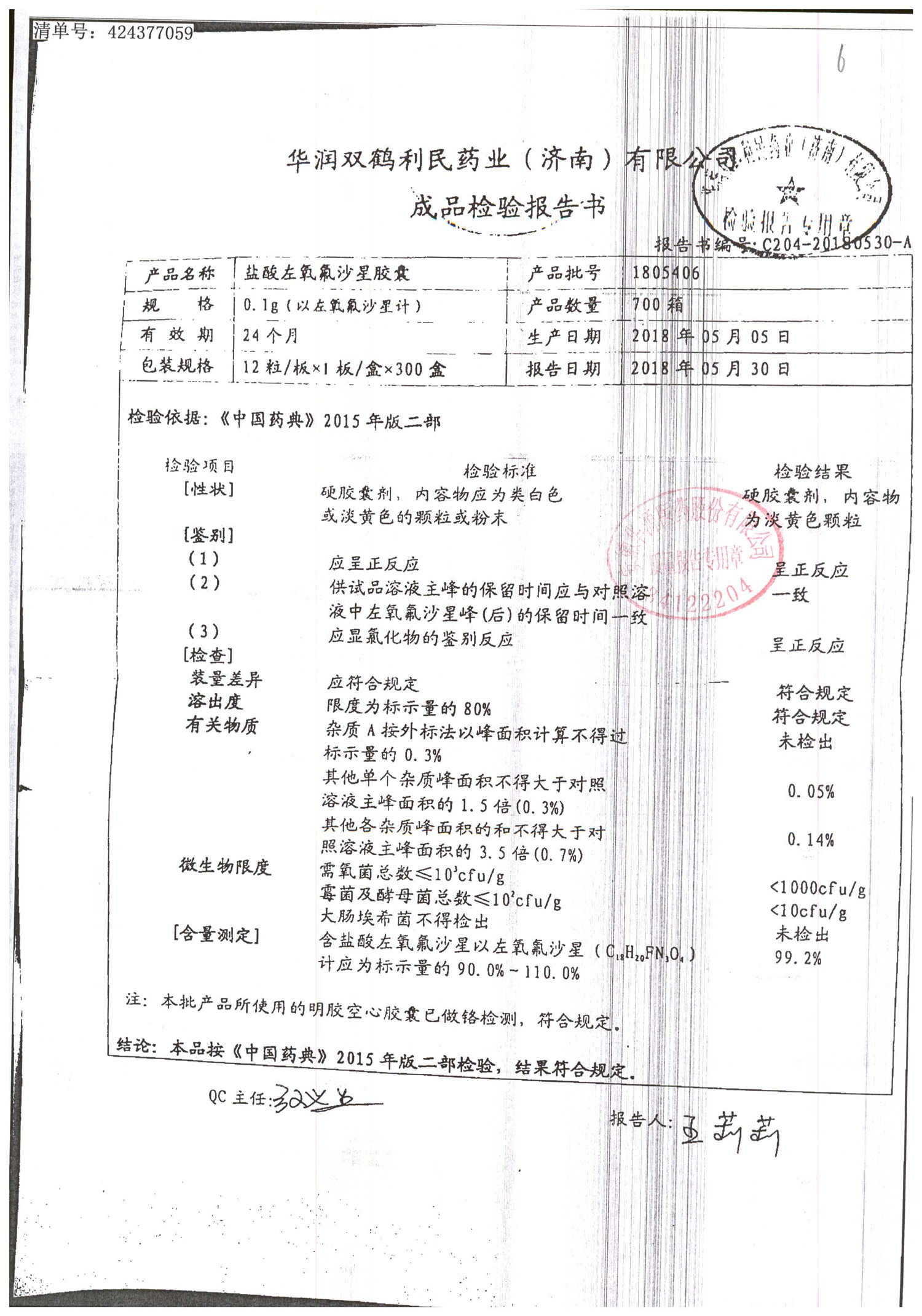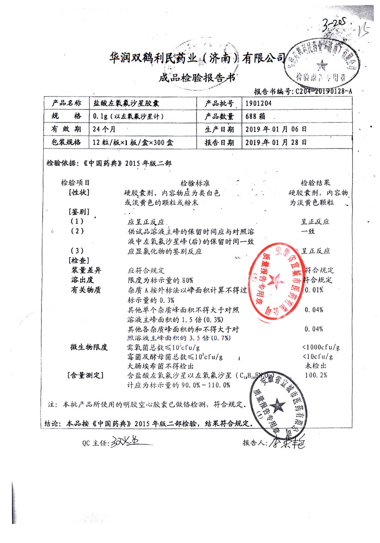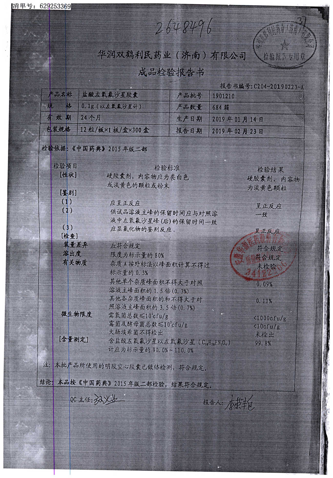 盐酸左氧氟沙星胶囊 | 0.1g | 1901204 | 查看详情 |