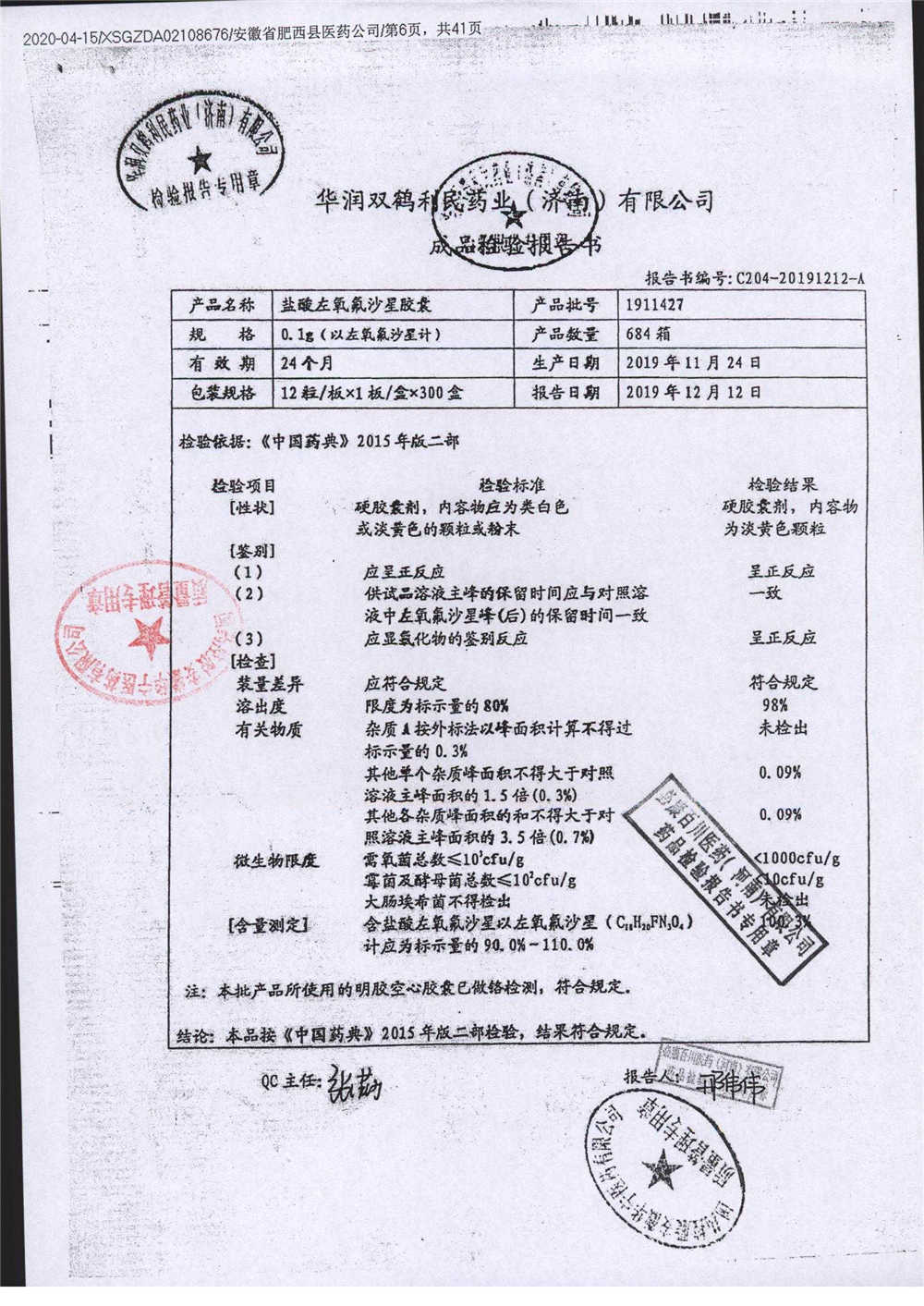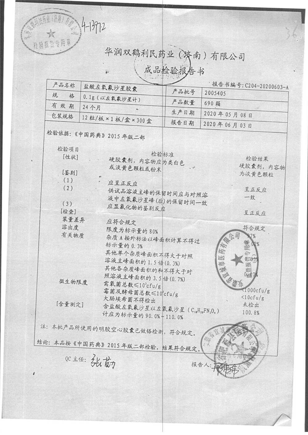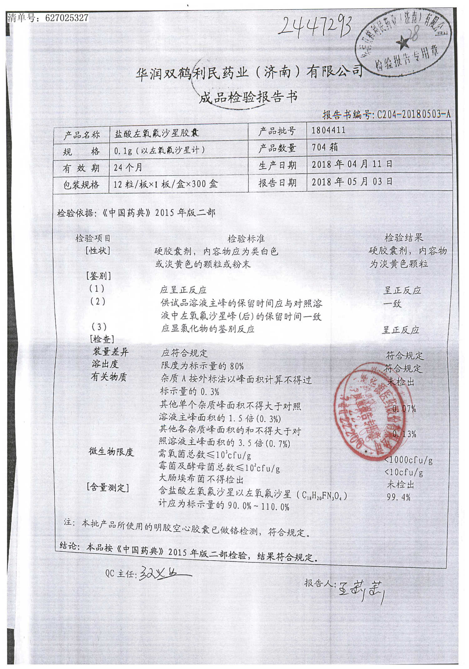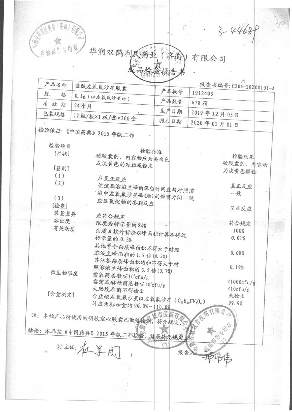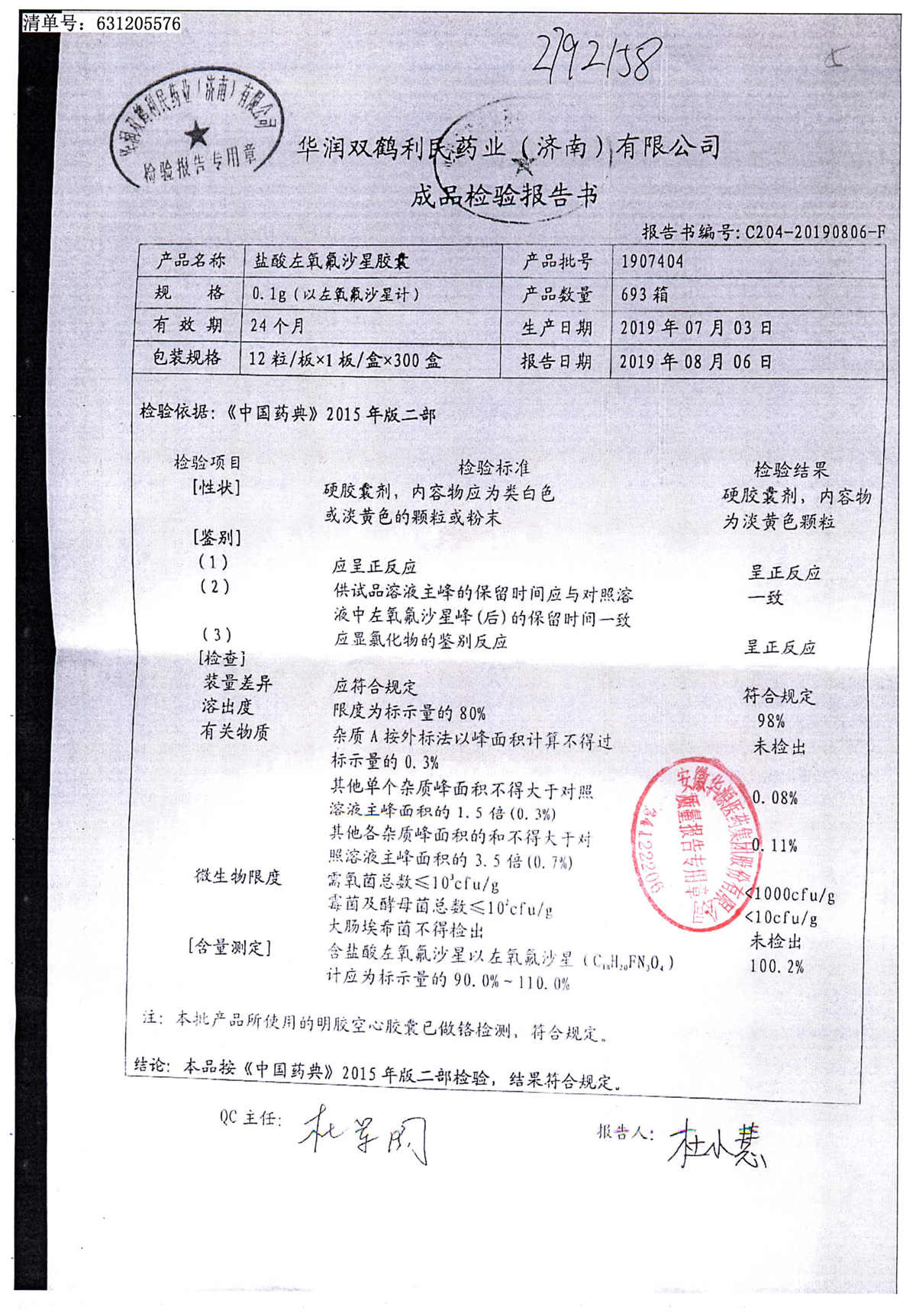 盐酸左氧氟沙星胶囊 | 0.1g | 1901204 | 查看详情 |