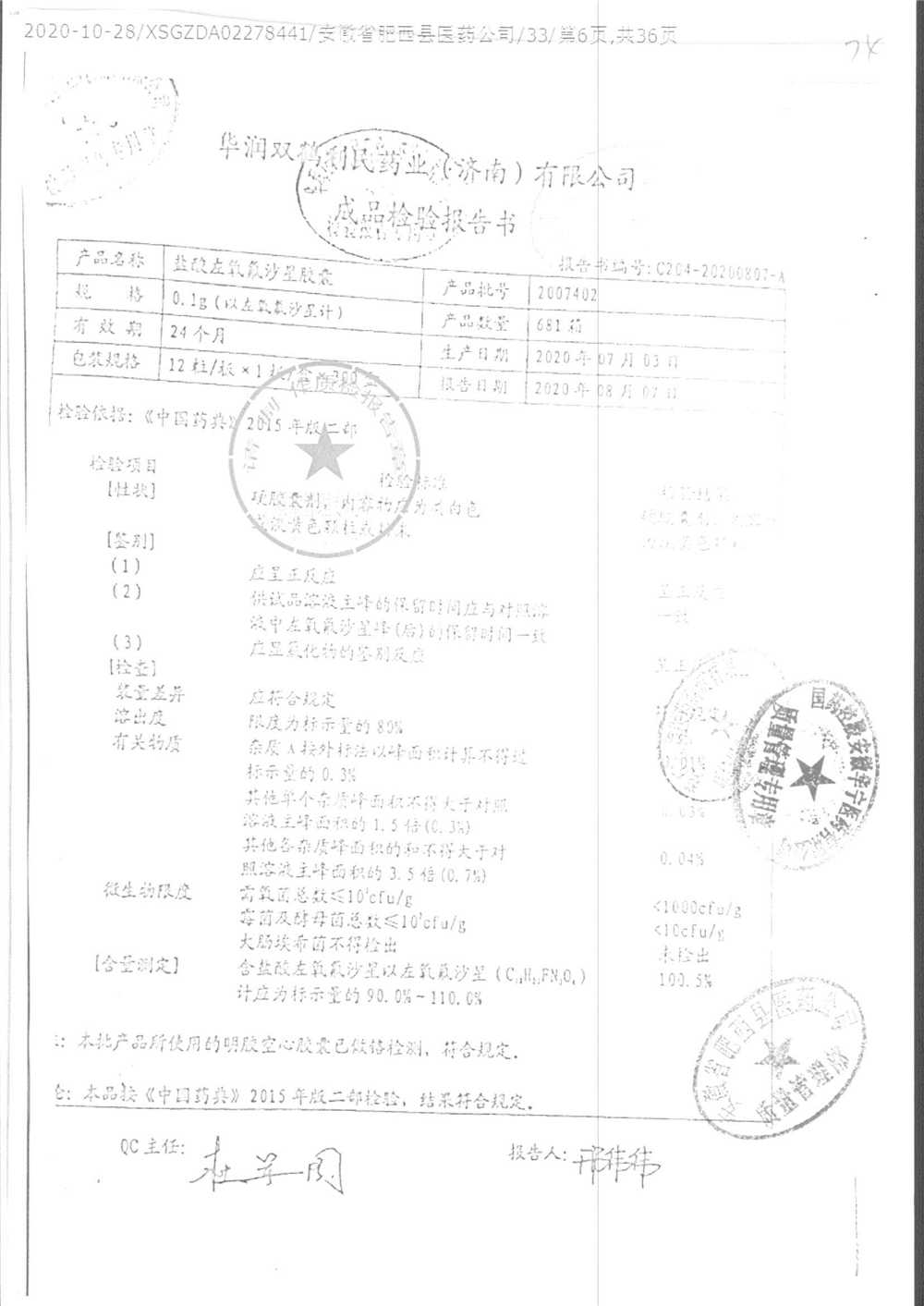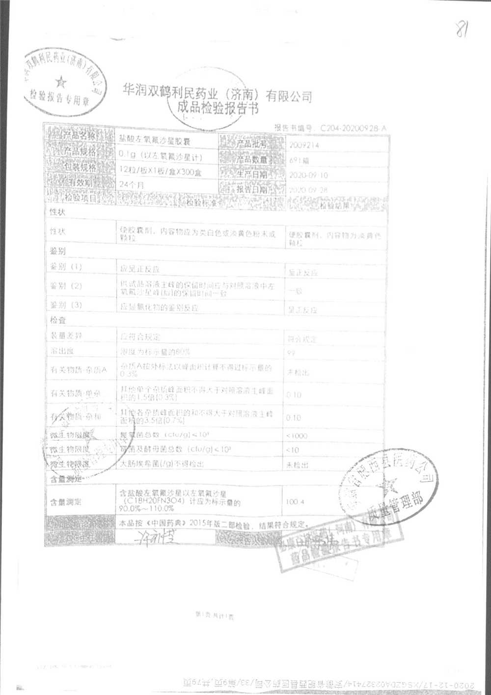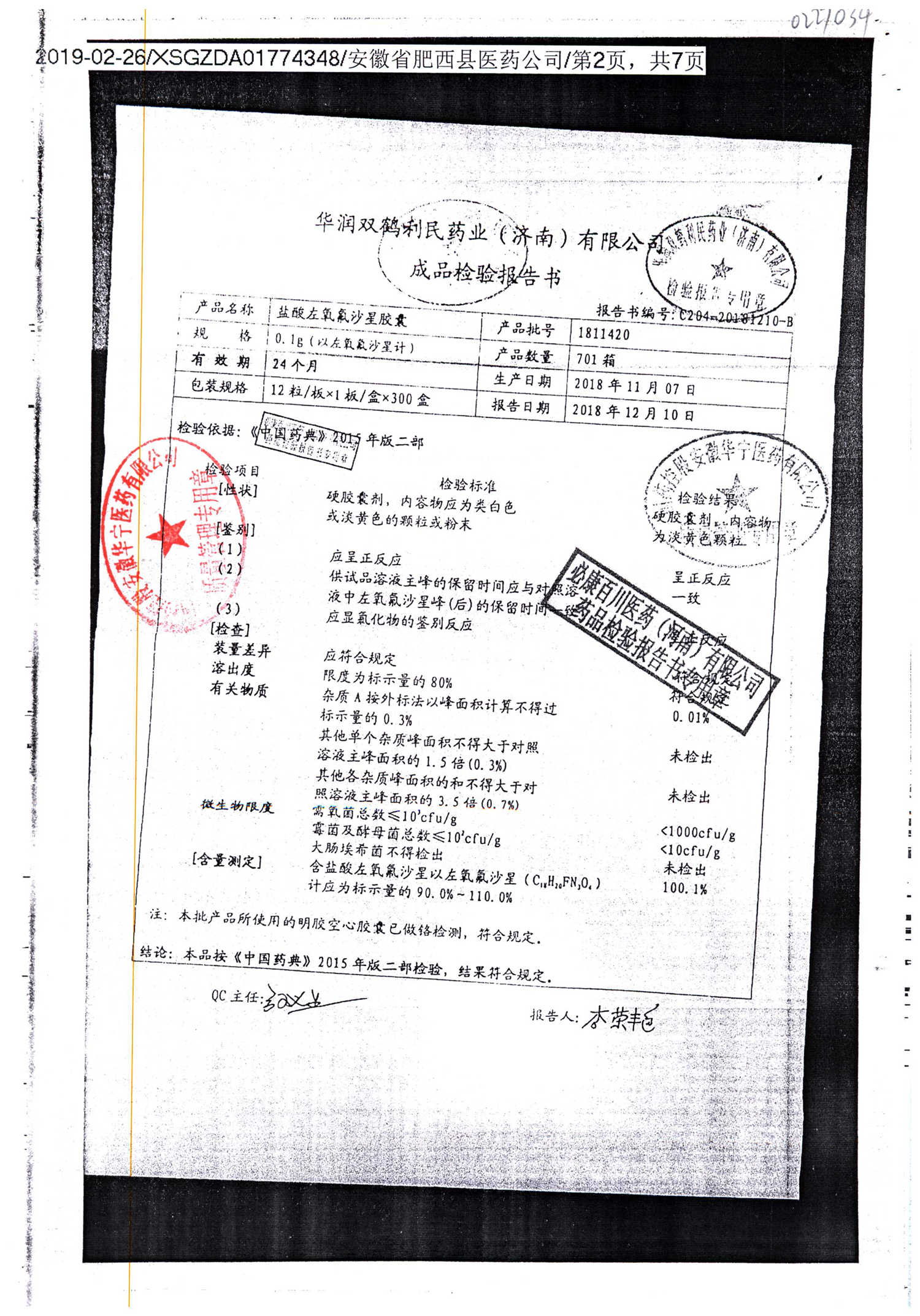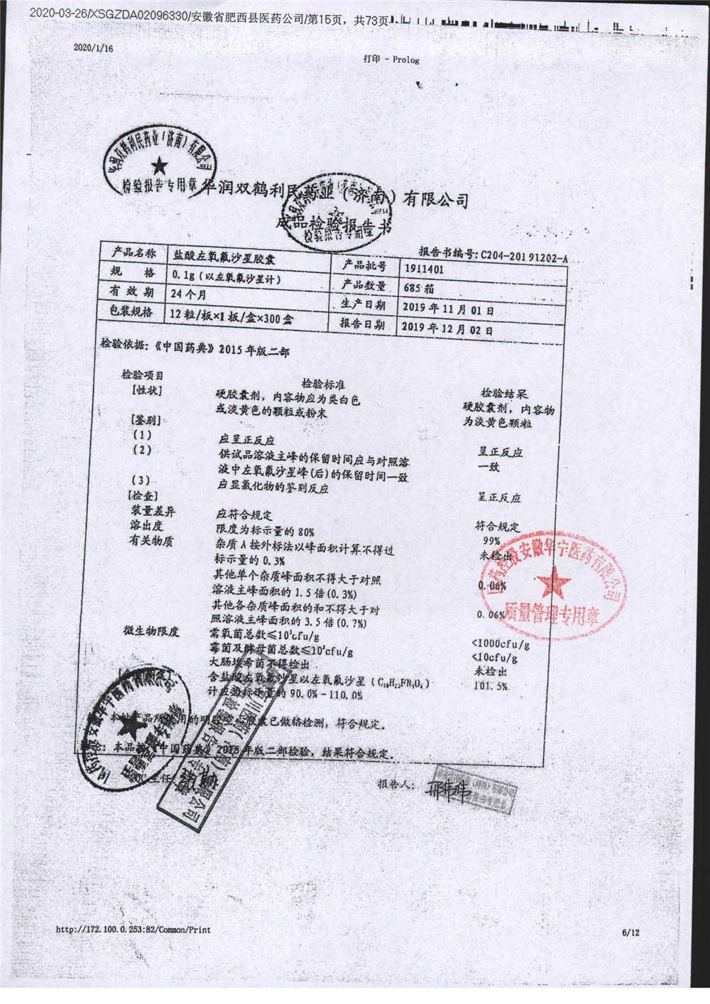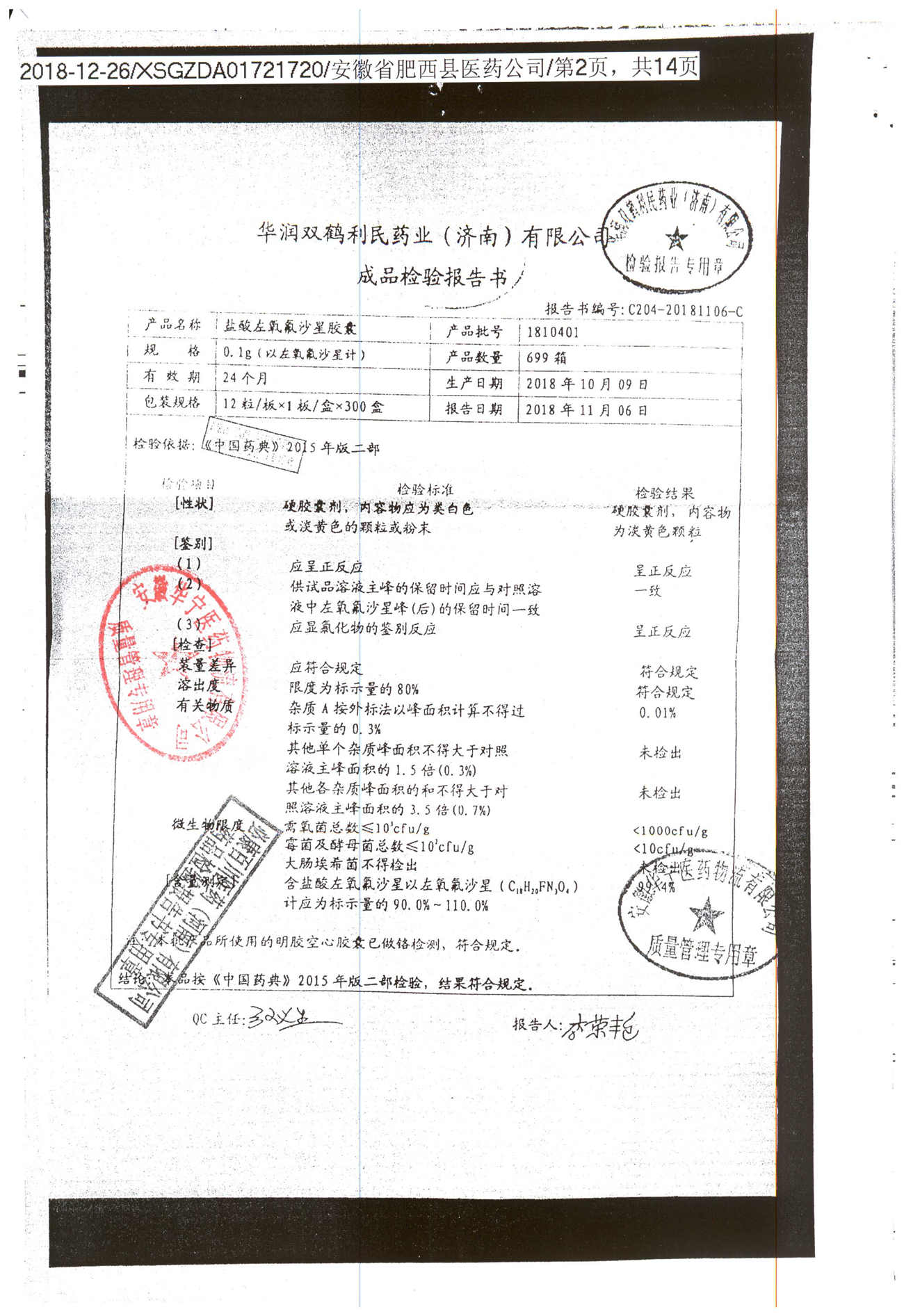 盐酸左氧氟沙星胶囊 | 0.1g | 1901204 | 查看详情 |