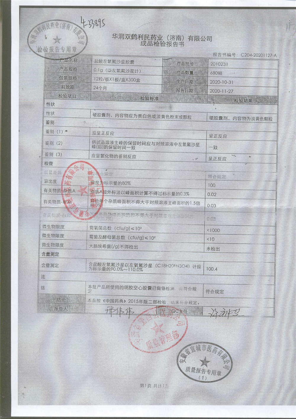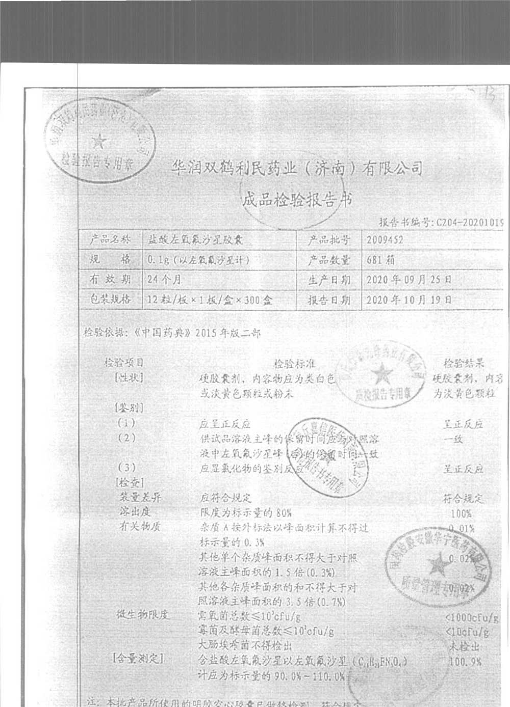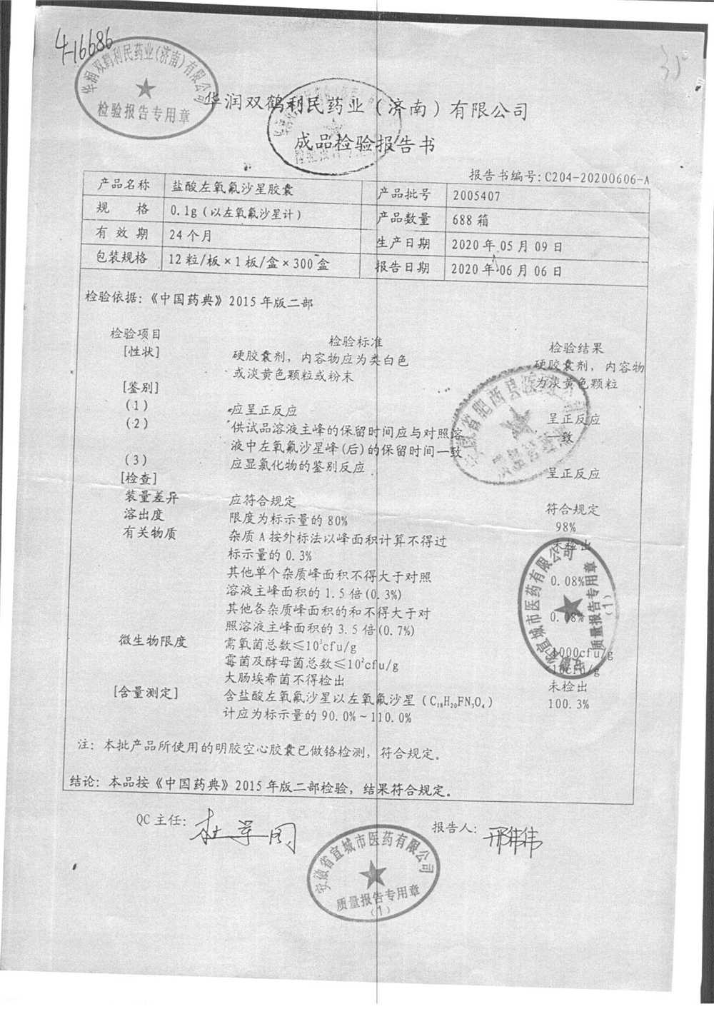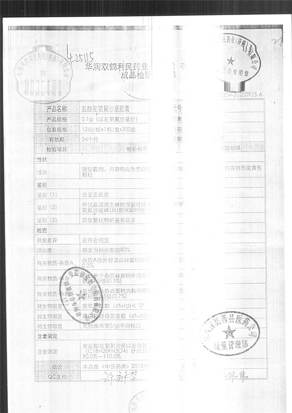 盐酸左氧氟沙星胶囊 | 0.1g | 2010231 | 查看详情 |