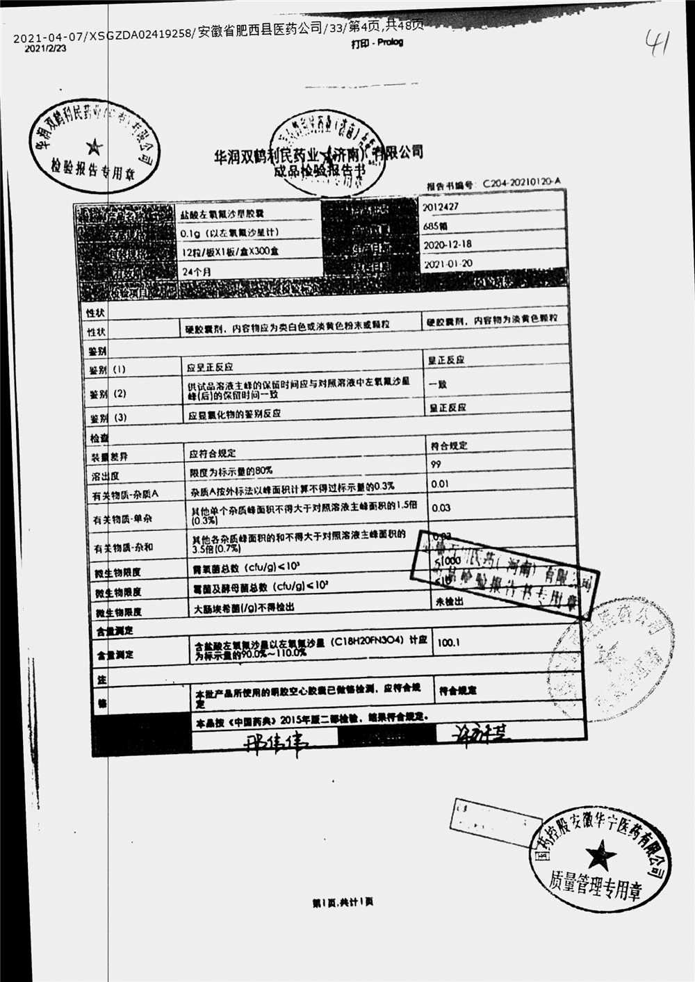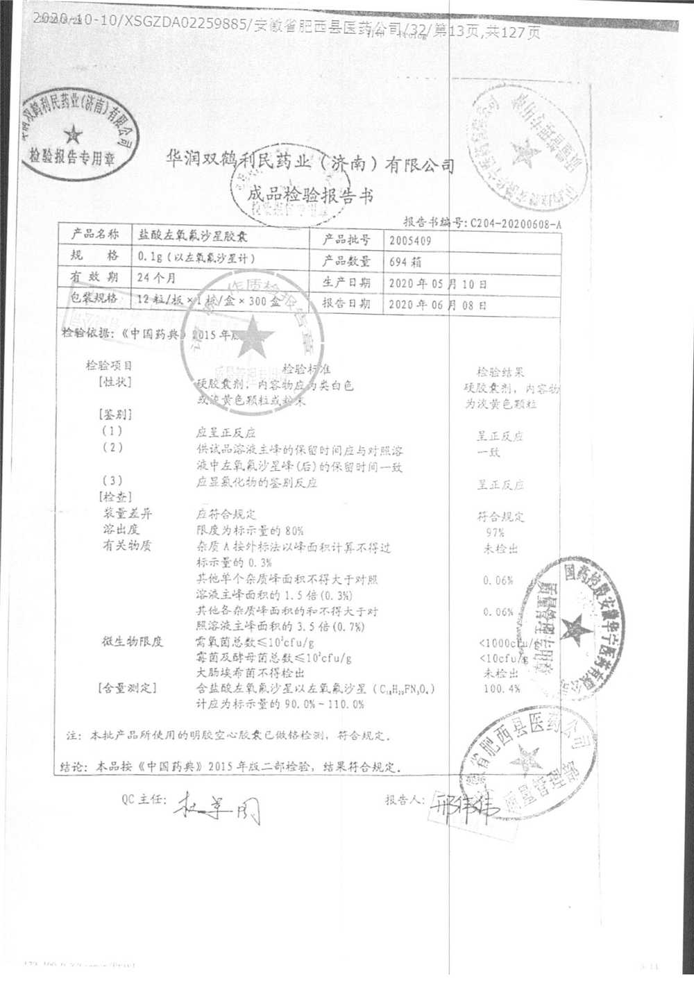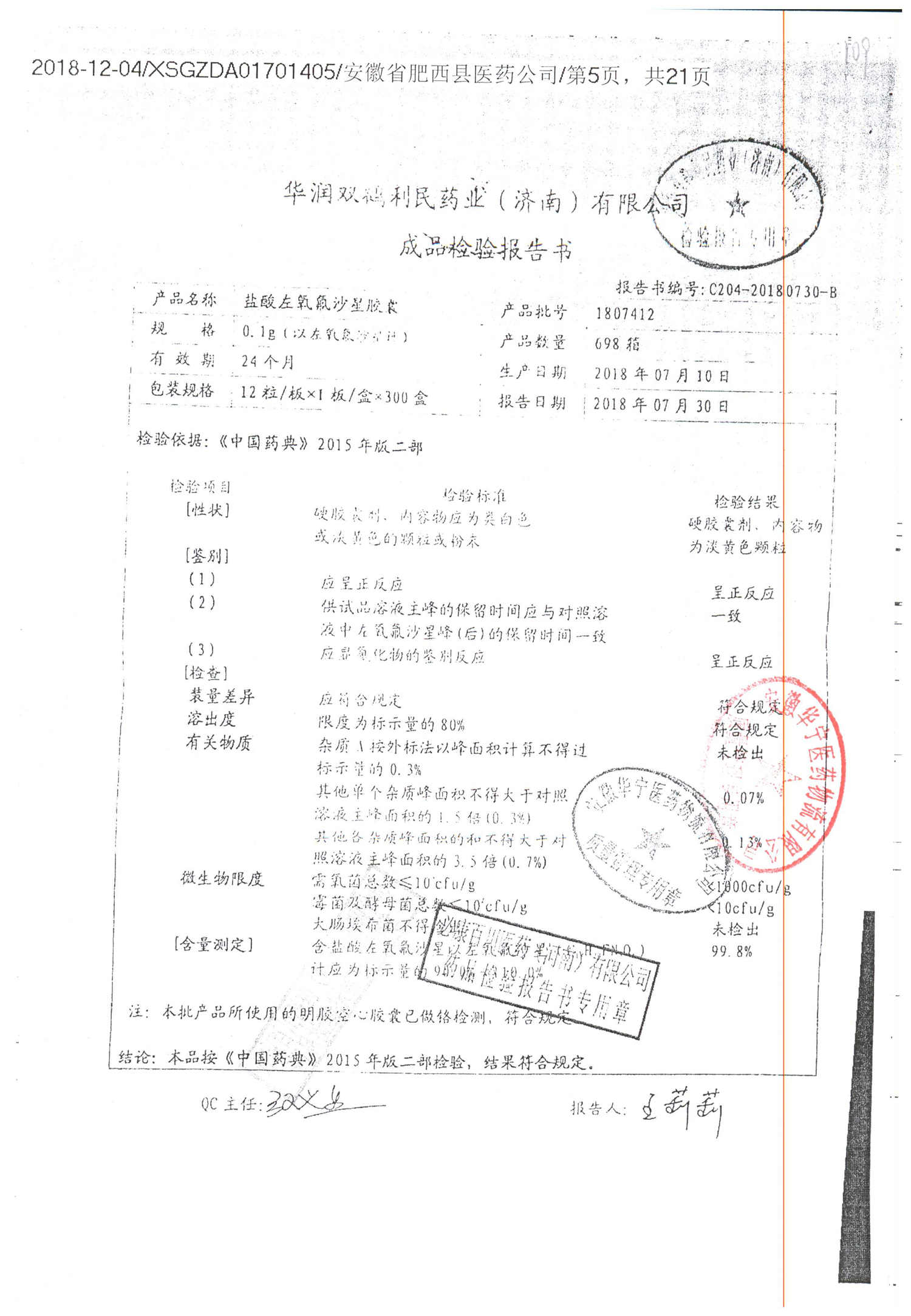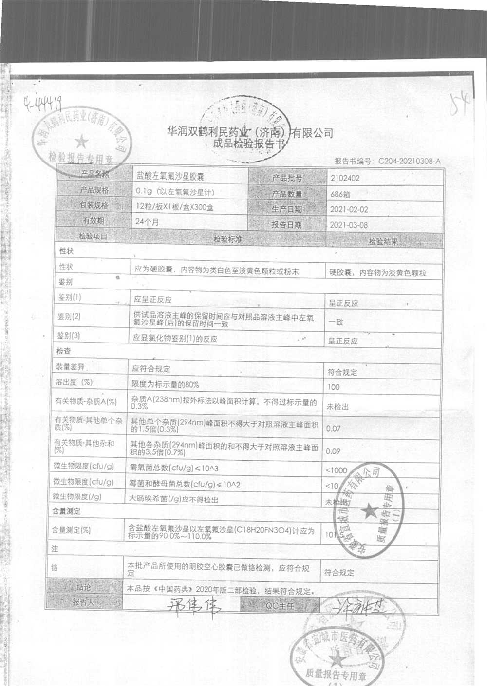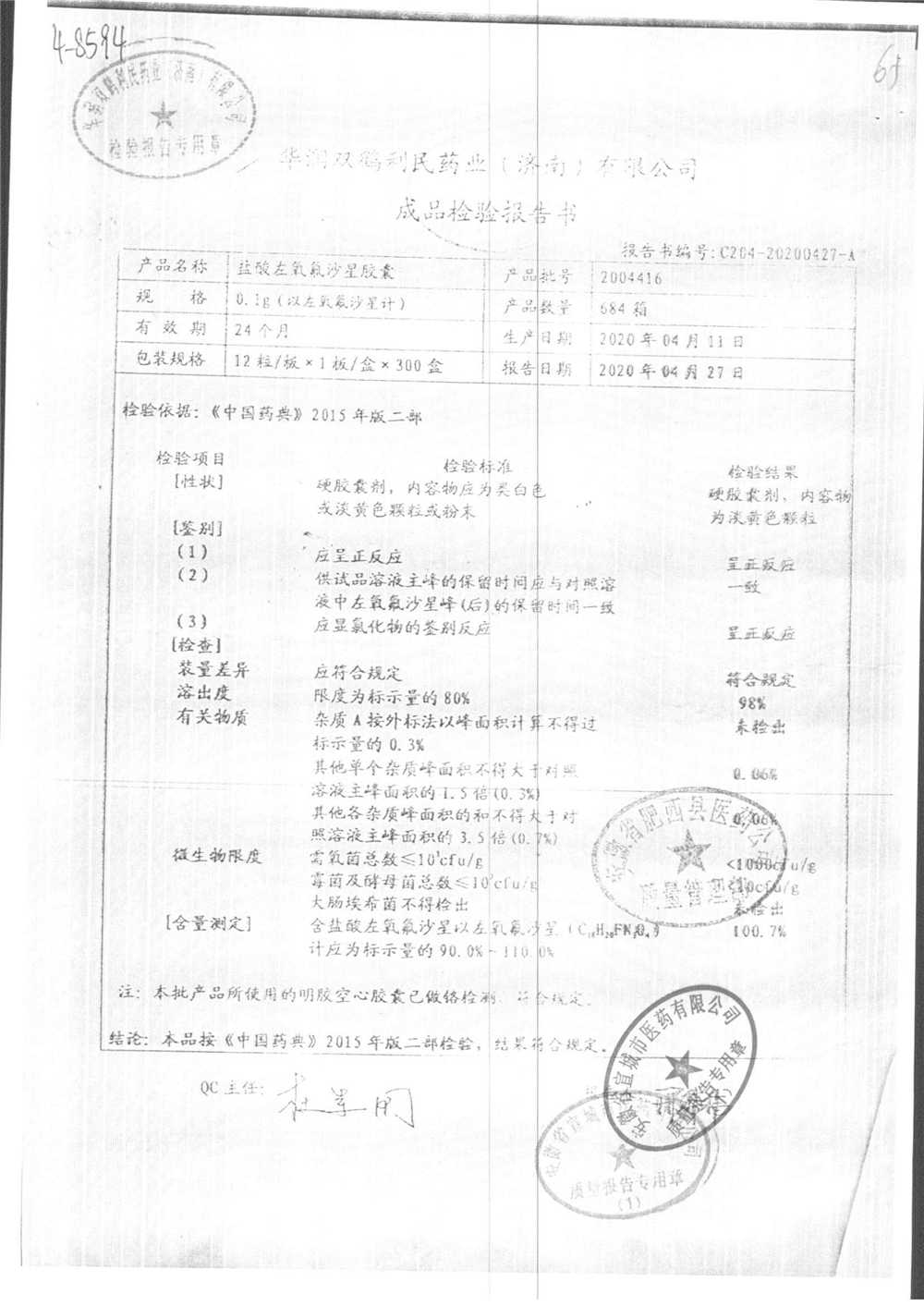 盐酸左氧氟沙星胶囊 | 0.1g | 2010231 | 查看详情 |