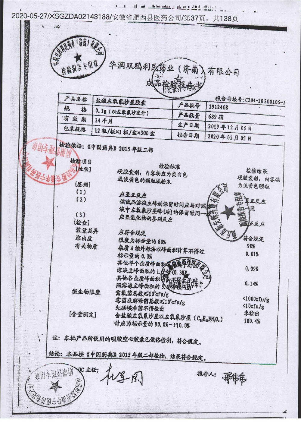 盐酸左氧氟沙星胶囊 | 0.1g | 2009213 | 查看详情 |
