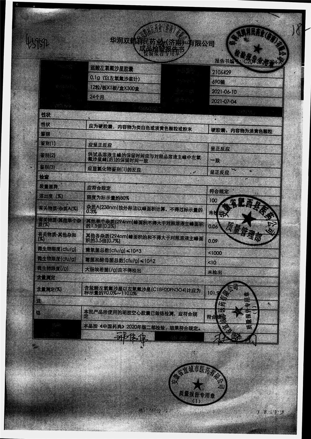 盐酸左氧氟沙星胶囊 | 0.1g | 1810401 | 查看详情 |