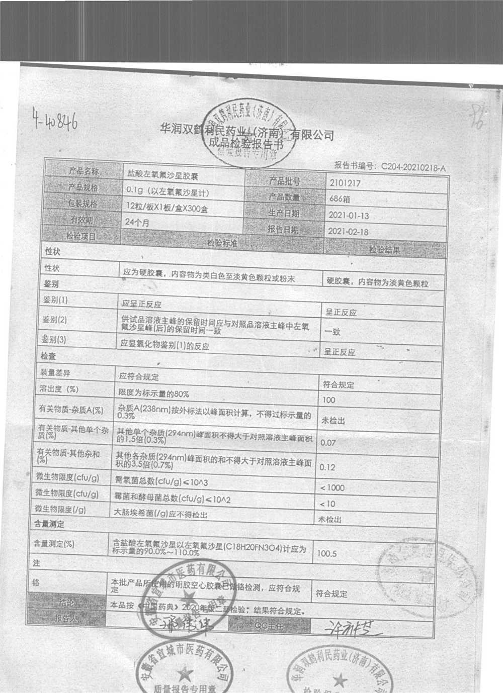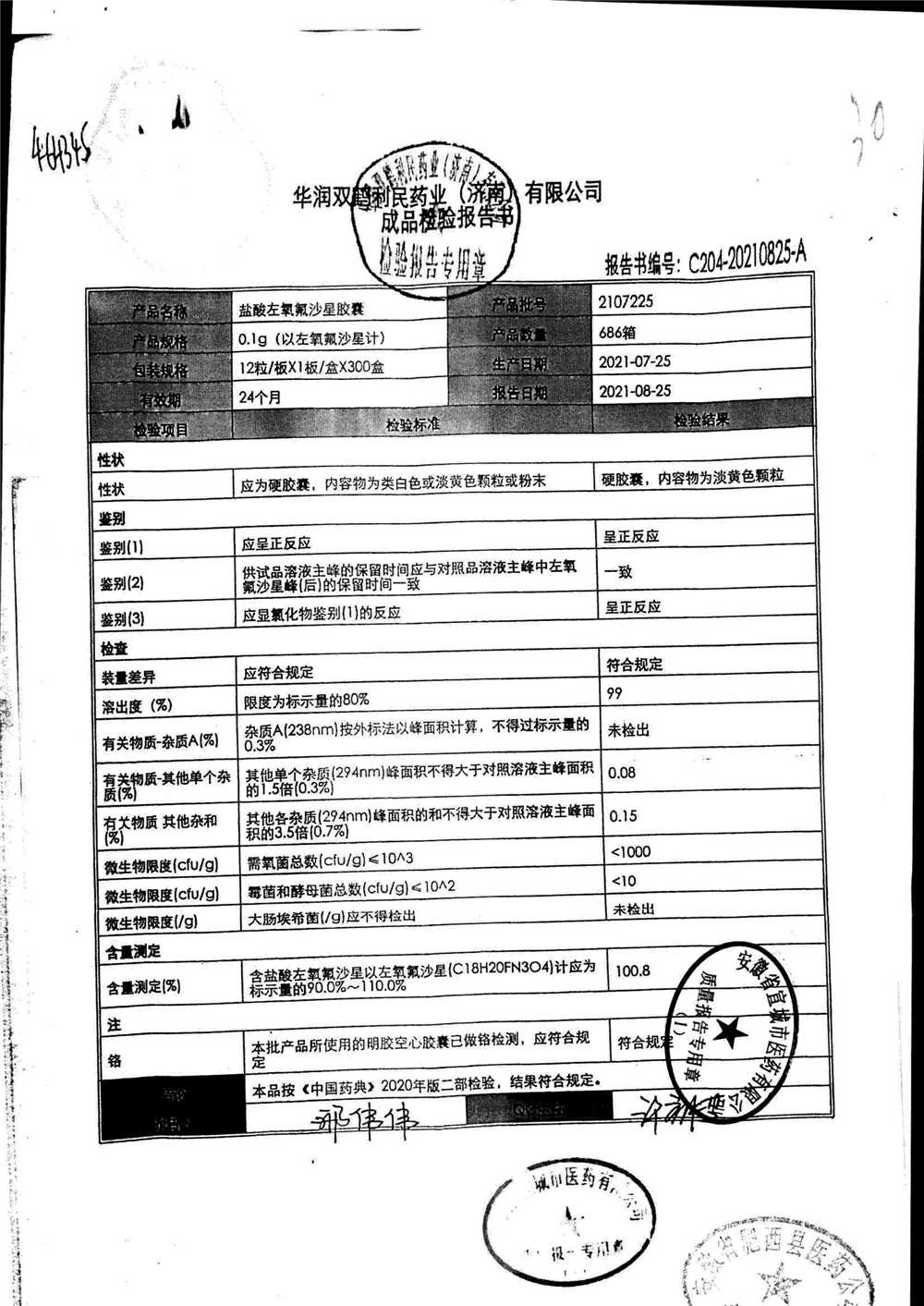 盐酸左氧氟沙星胶囊 | 0.1g | 2012427 | 查看详情 |