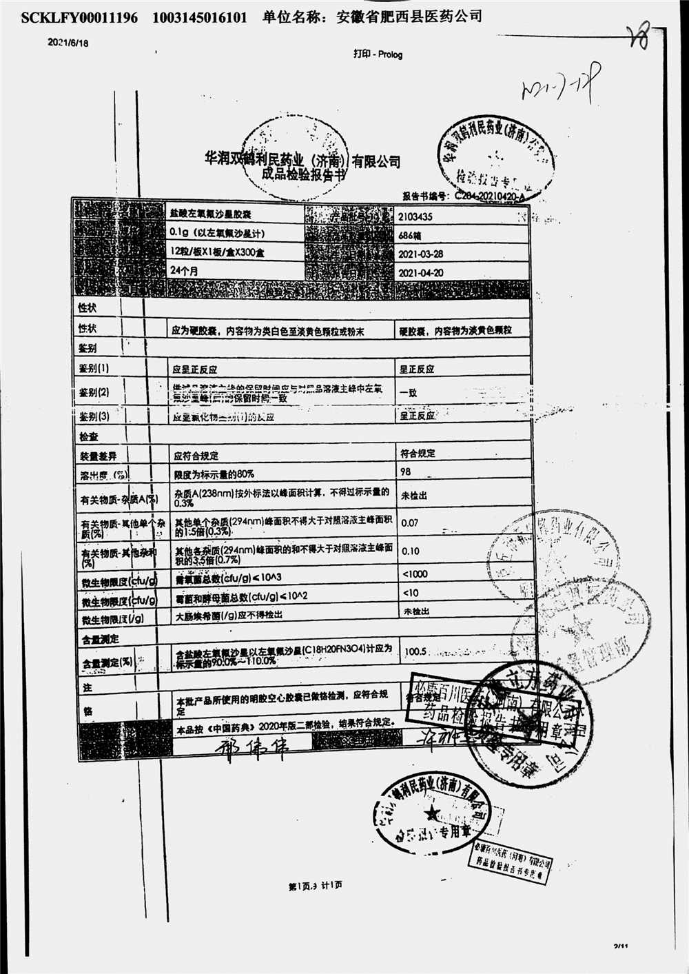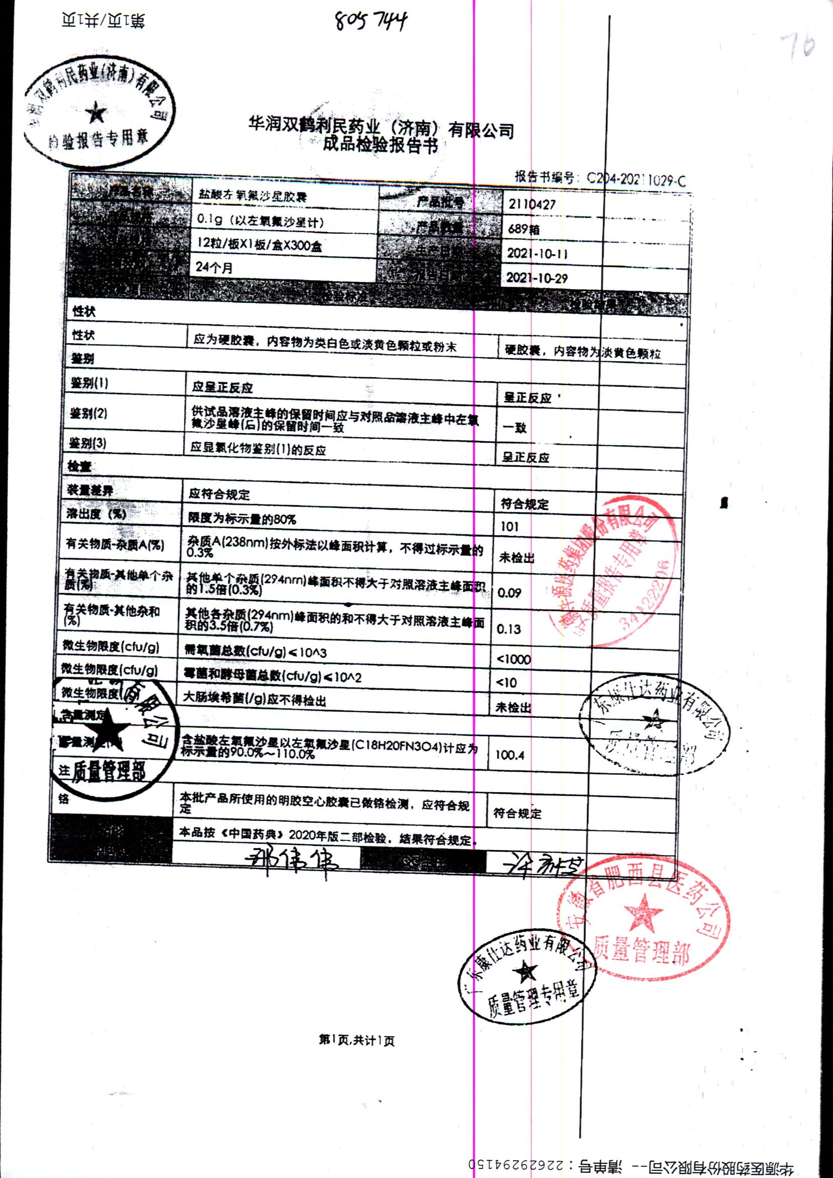 盐酸左氧氟沙星胶囊 | 0.1g | 1811420 | 查看详情 |