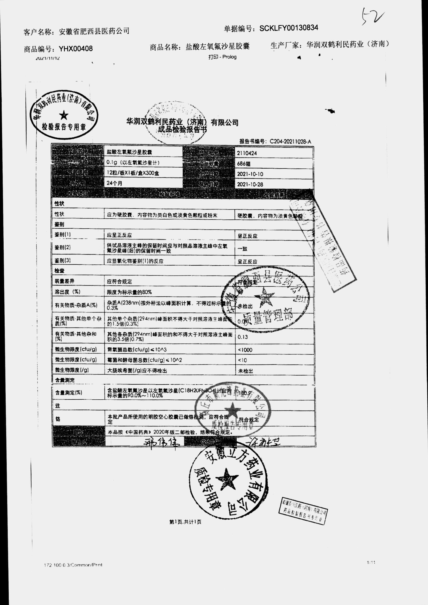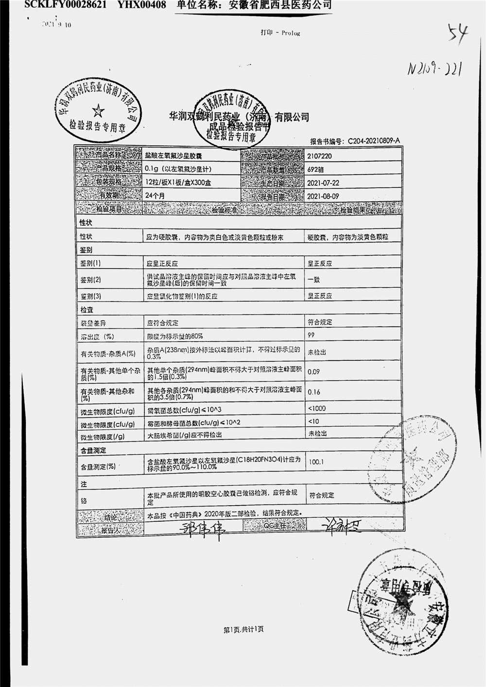盐酸左氧氟沙星胶囊 | 0.1g | 2110424 | 查看详情 |