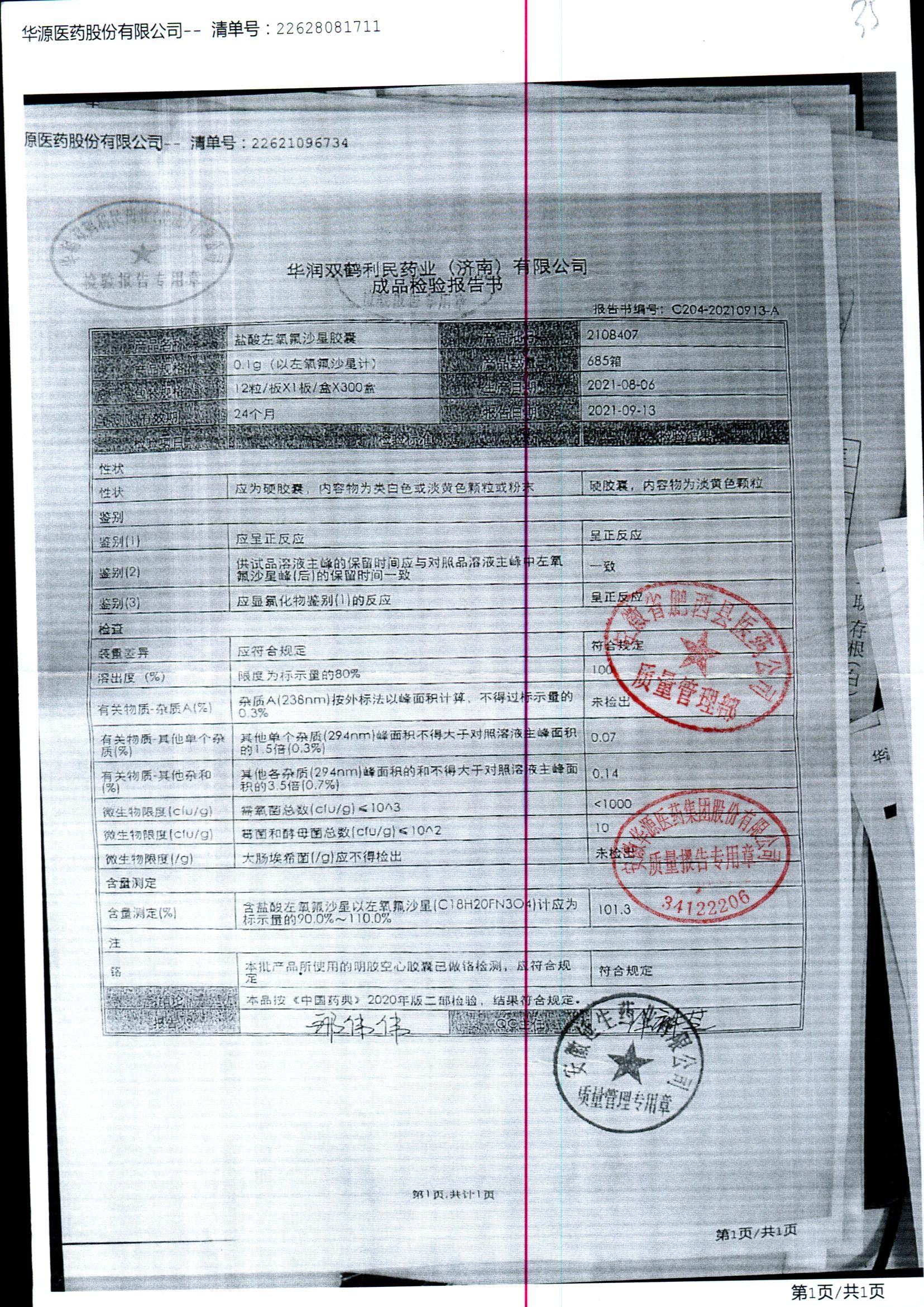 盐酸左氧氟沙星胶囊 | 0.1g | 1906406 | 查看详情 |