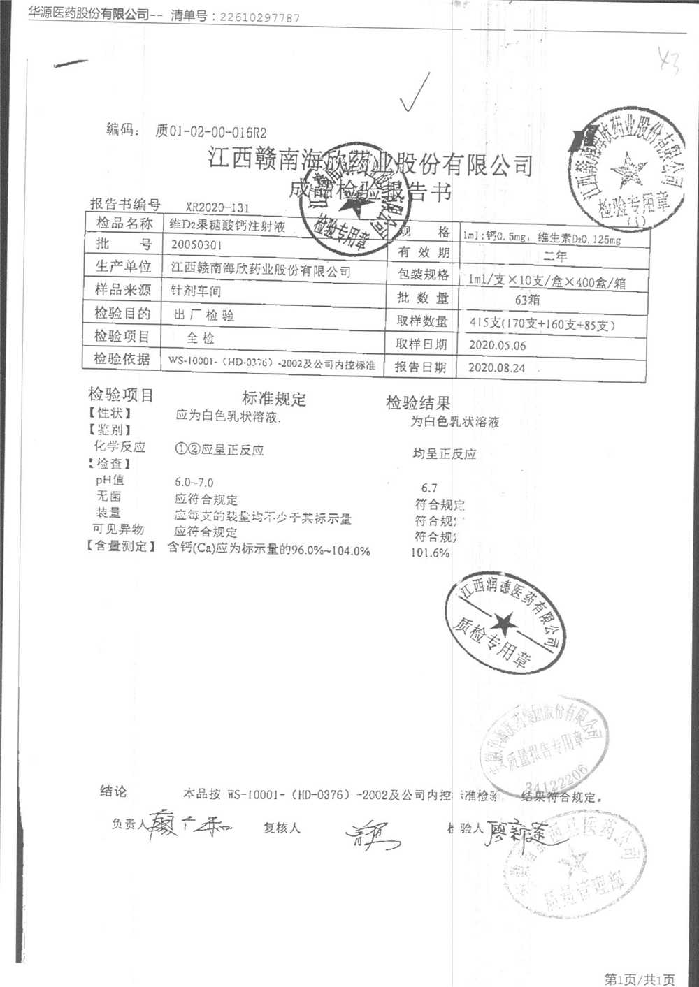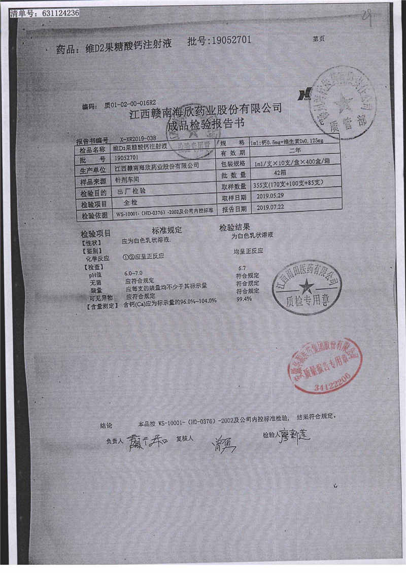 维D2果糖酸钙注射液 | 1ml | 19052701 | 查看详情 |