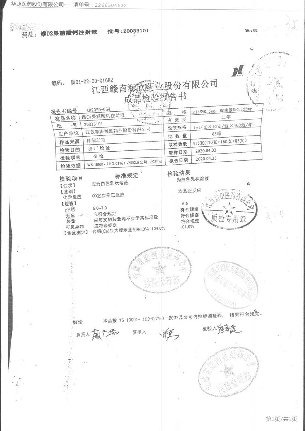 维D2果糖酸钙注射液 | 1ml | 20033101 | 查看详情 |