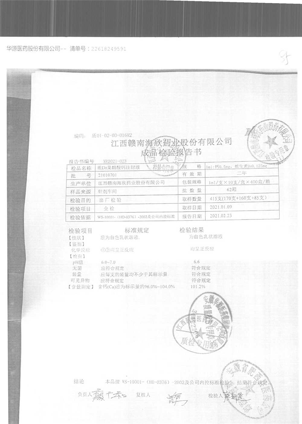 维D2果糖酸钙注射液 | 1ml | 21010701 | 查看详情 |