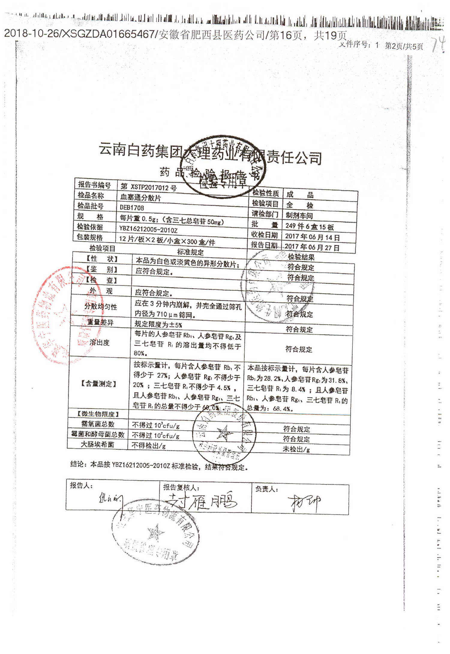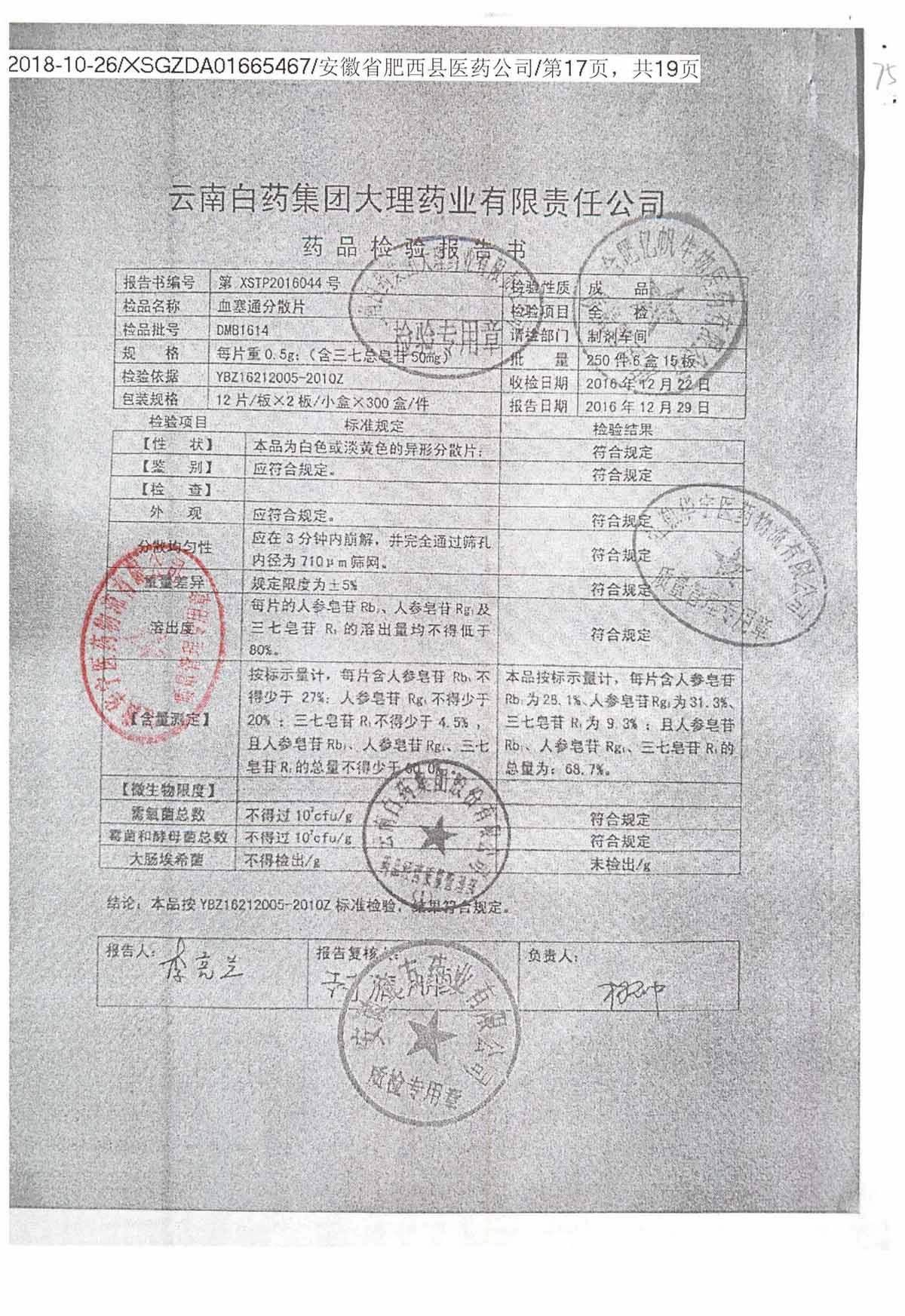 药检报告