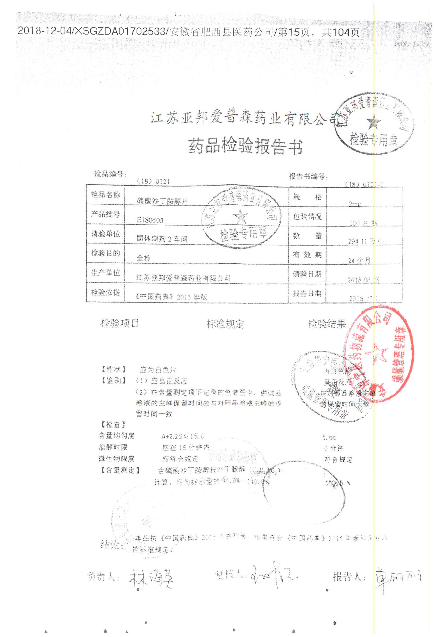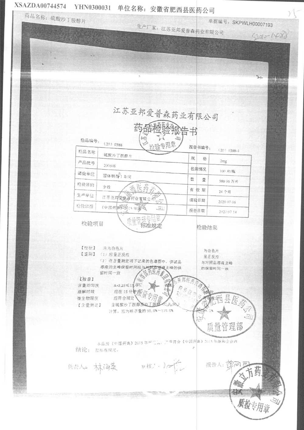硫酸沙丁胺醇片 | 2mg | 201219 | 查看详情 |