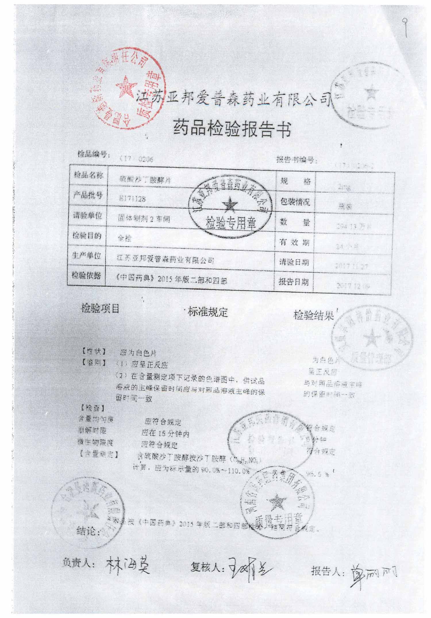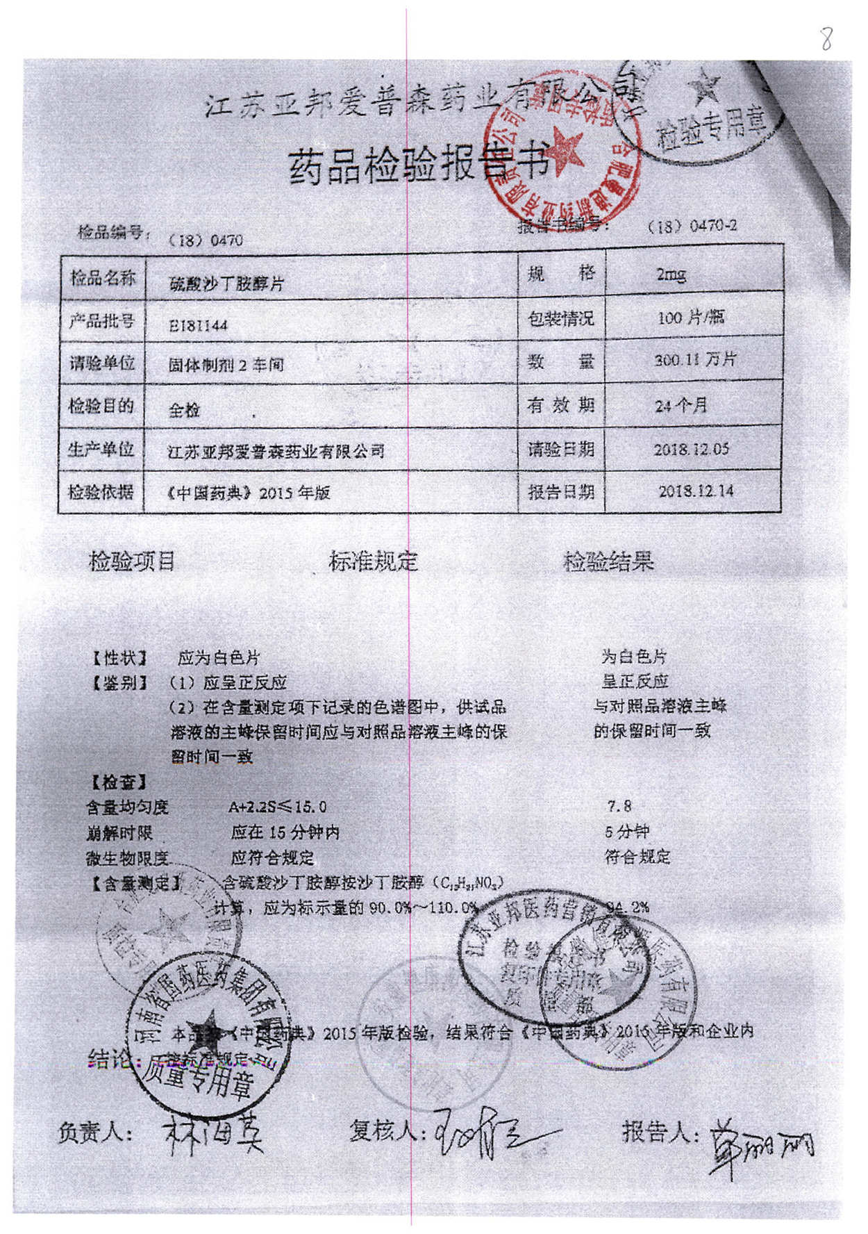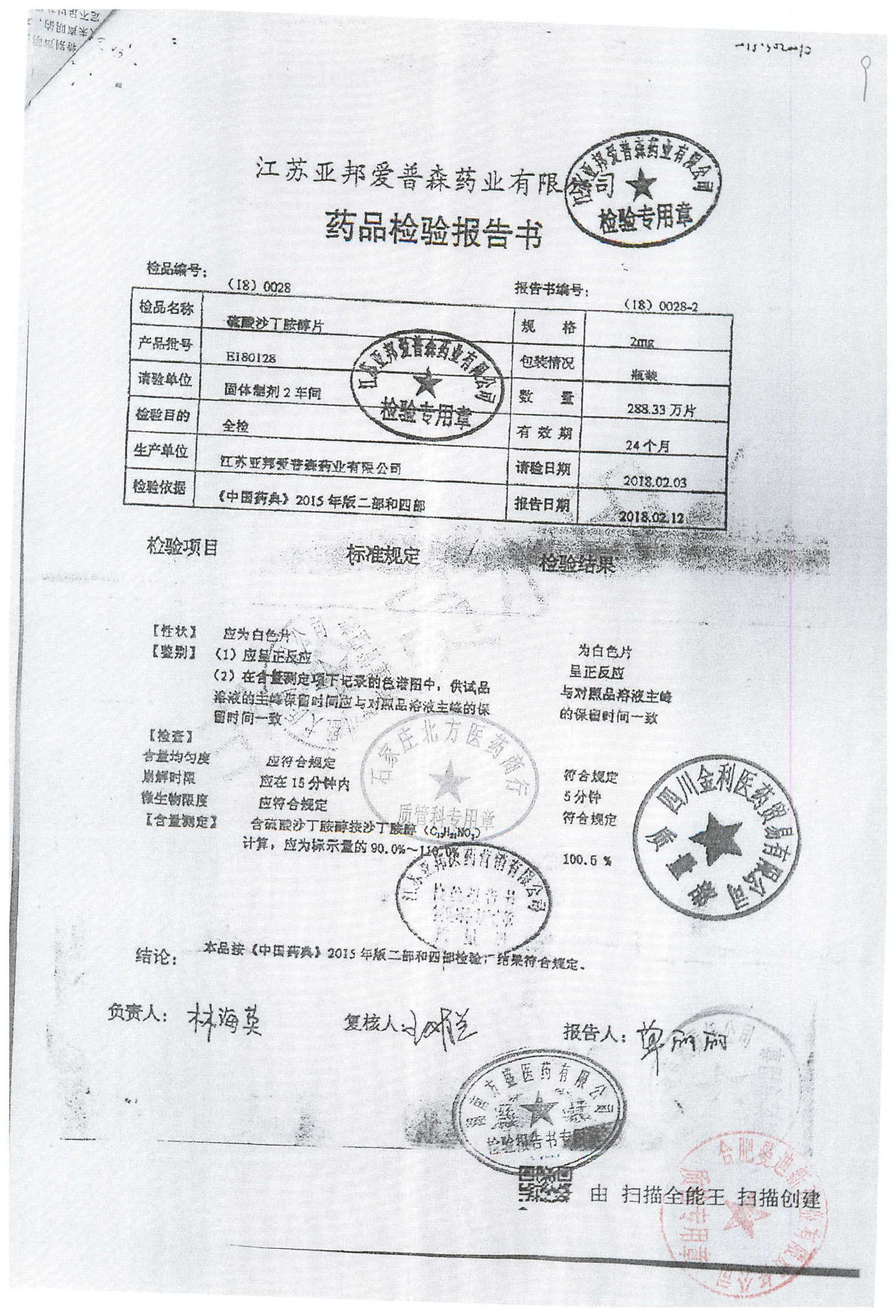 硫酸沙丁胺醇片 | 2mg | E180604 | 查看详情 |