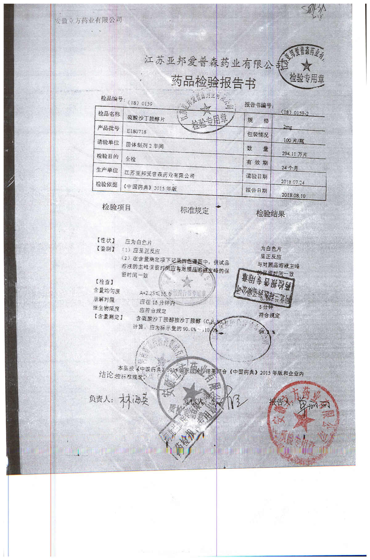 硫酸沙丁胺醇片 | 2mg | E180718 | 查看详情 |