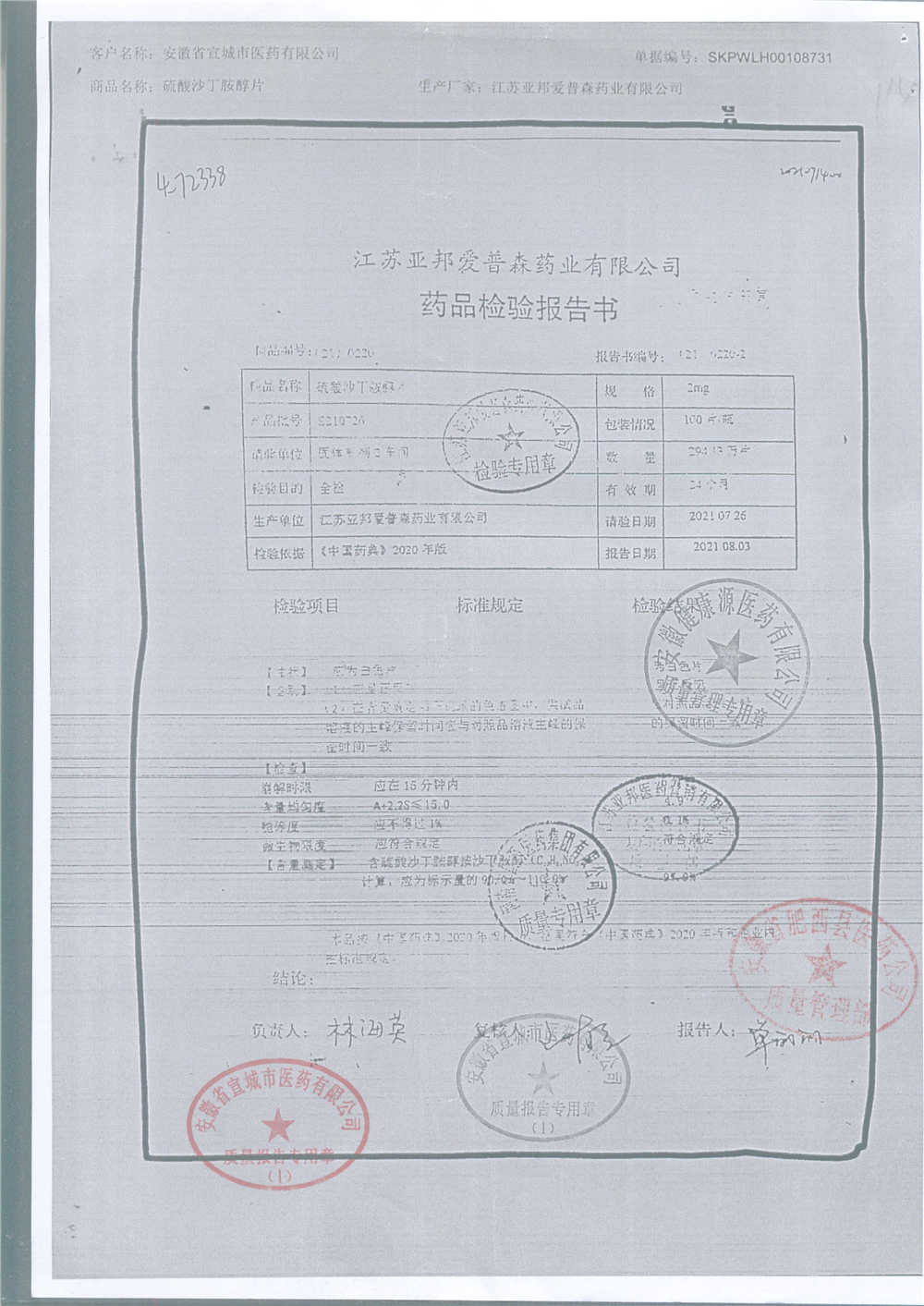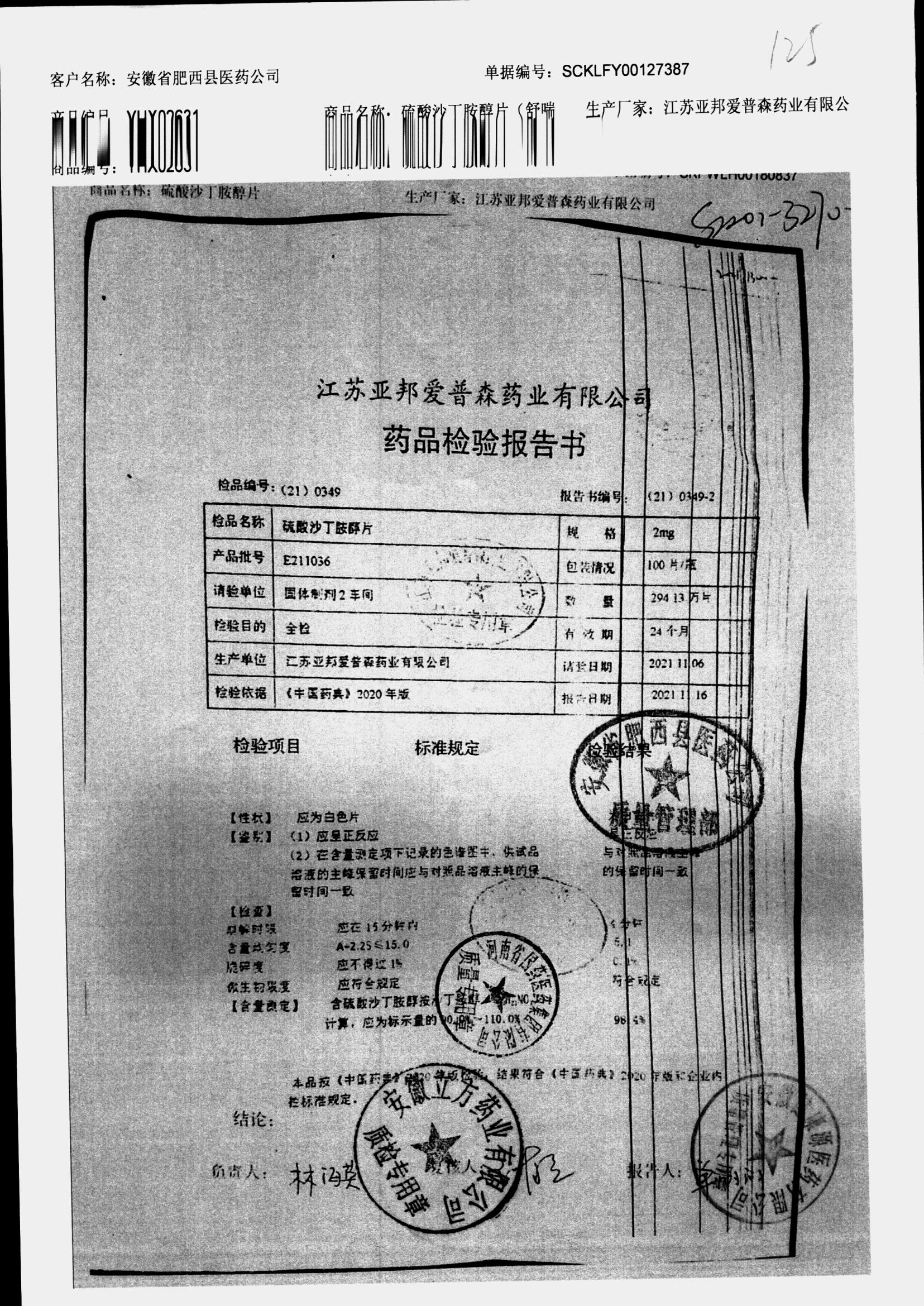 硫酸沙丁胺醇片 | 2mg | E210726 | 查看详情 |
