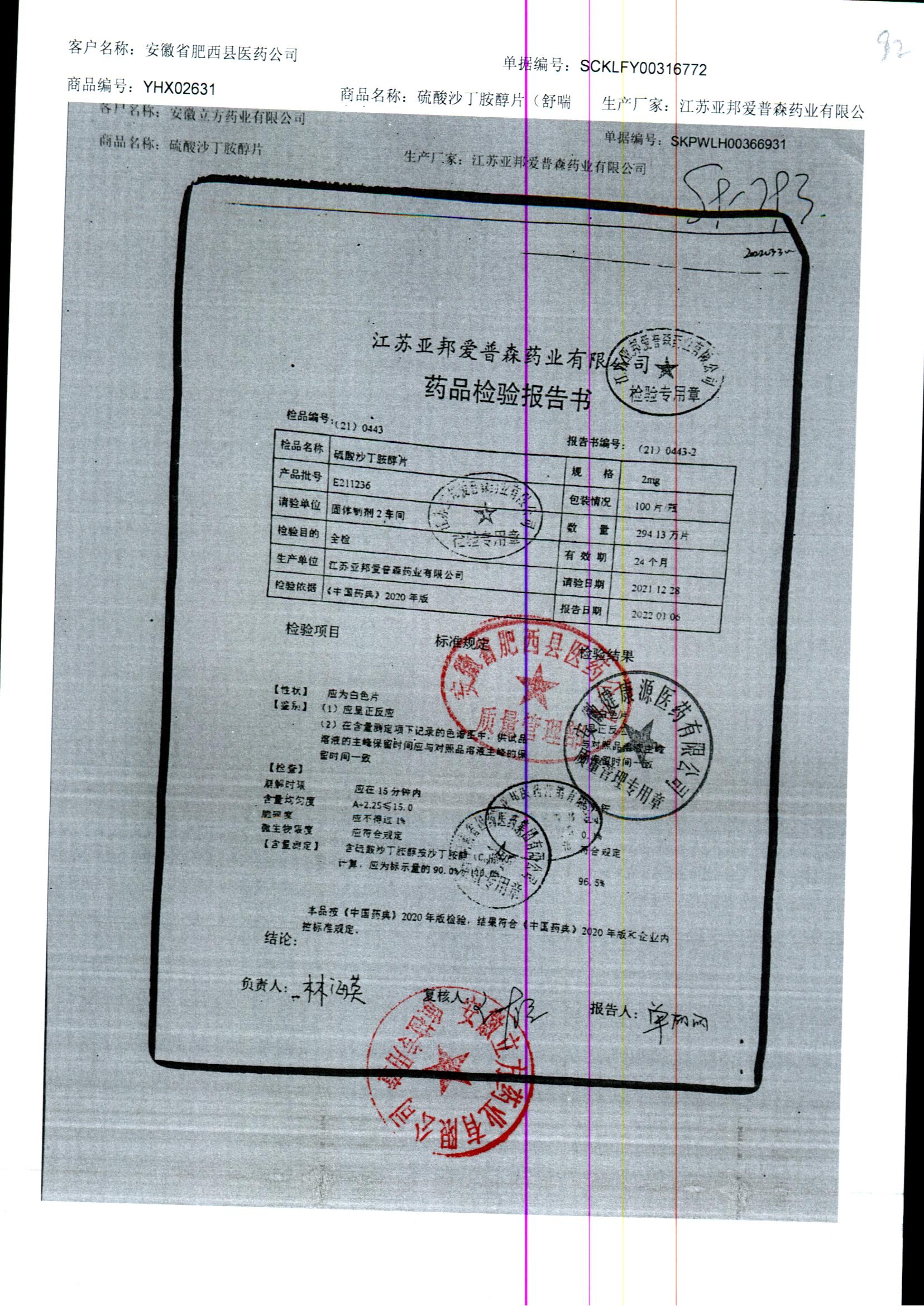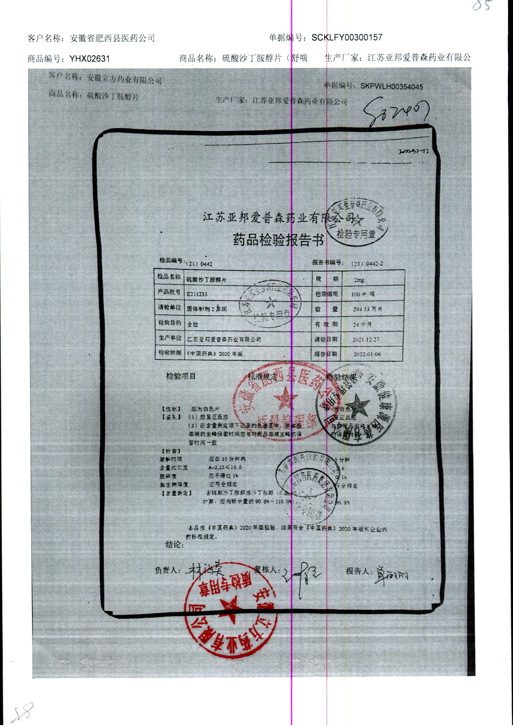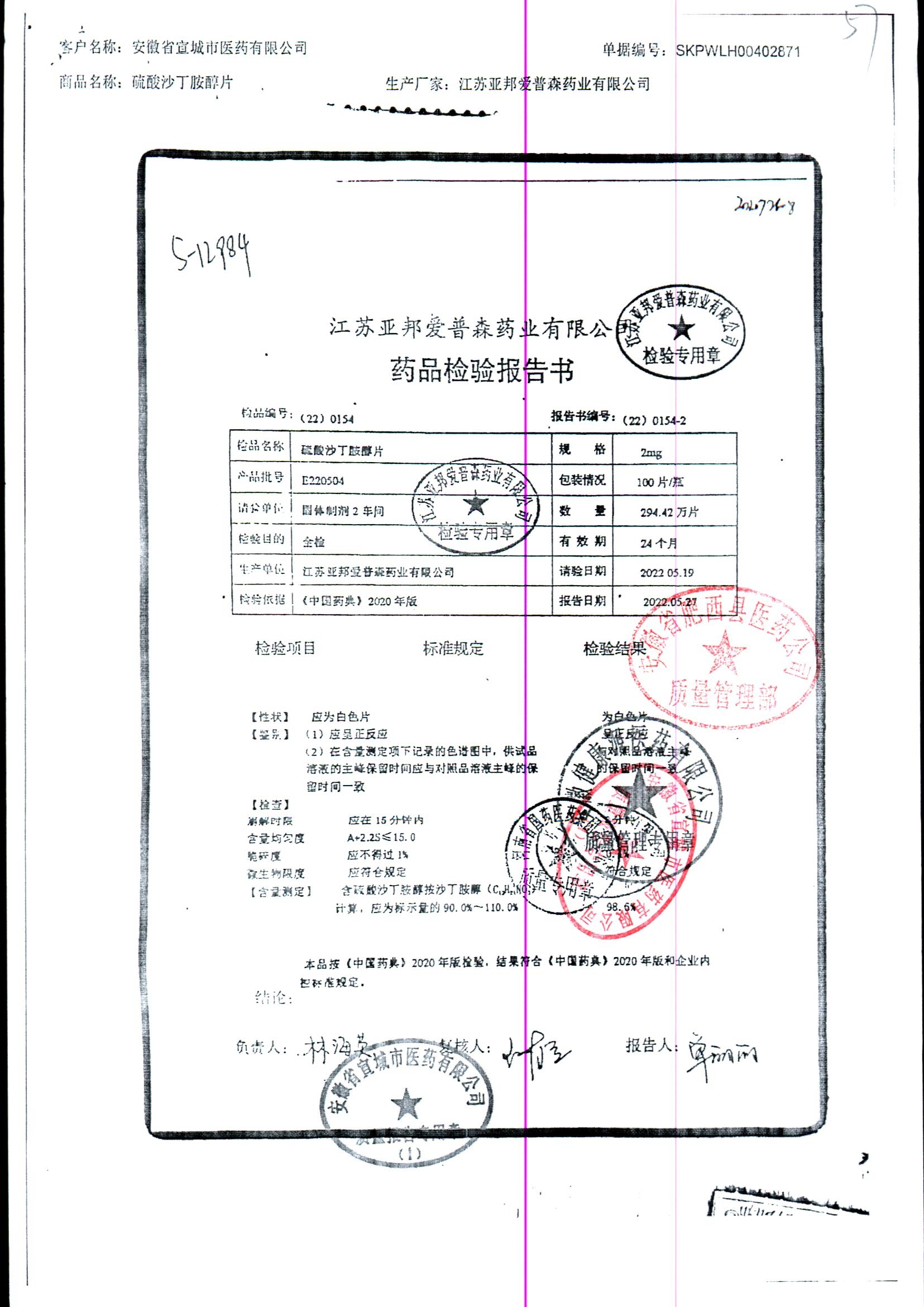 硫酸沙丁胺醇片 | 2mg | E220504 | 查看详情 |
