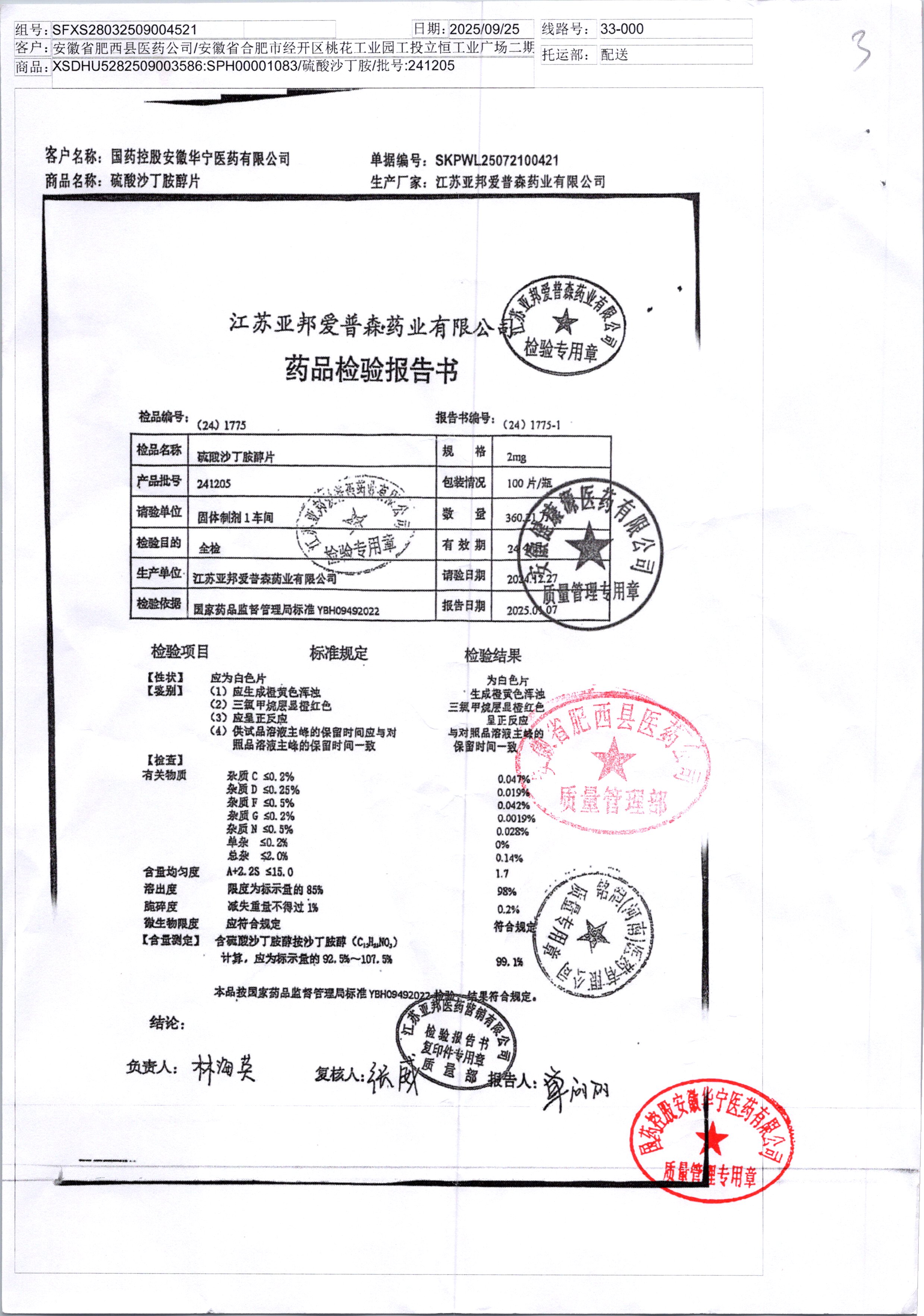 硫酸沙丁胺醇片 | 2mg | 241205 | 查看详情 |
