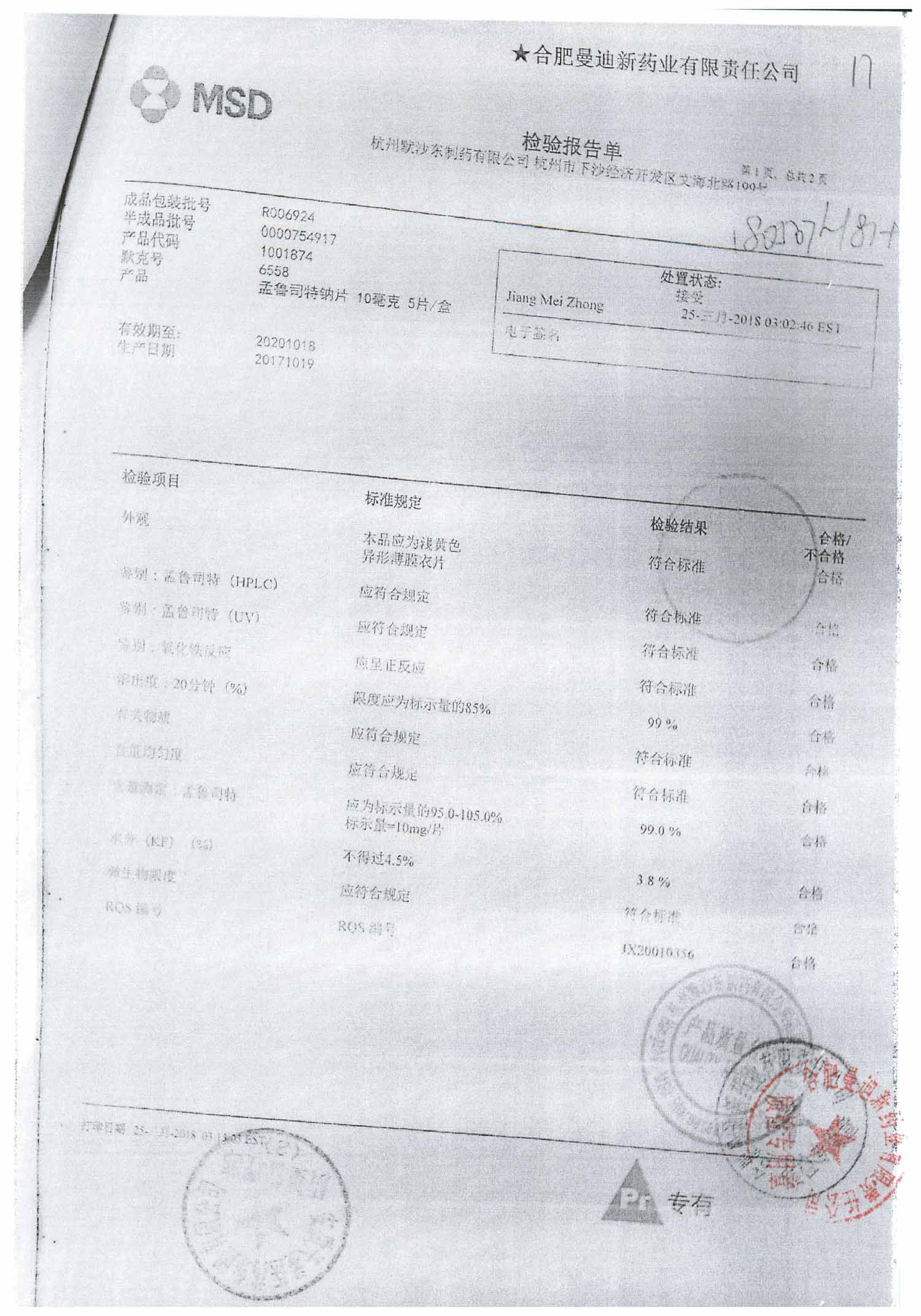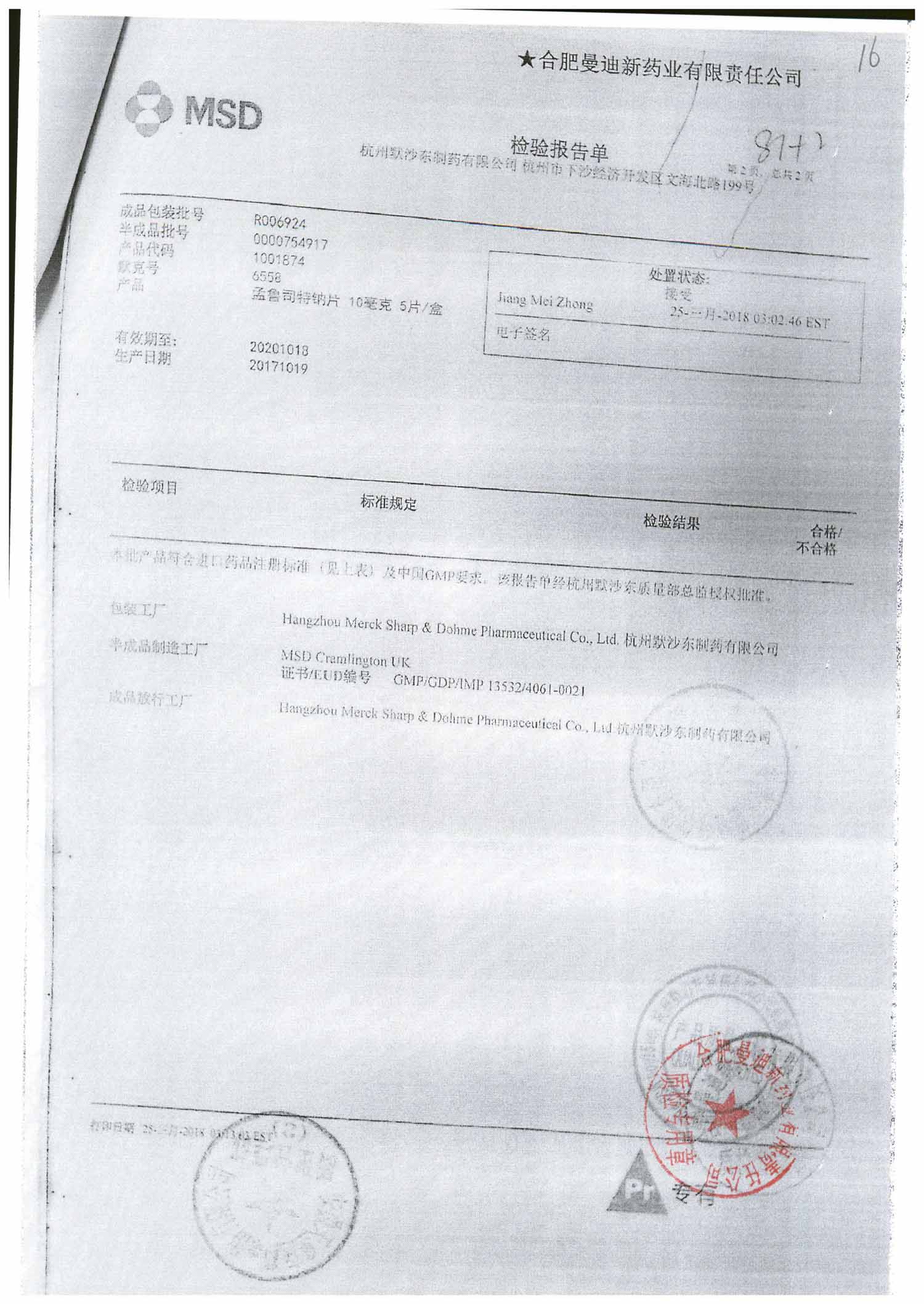 孟鲁司特钠片 | 10mg*5片 | R006924(2/2) | 查看详情 |