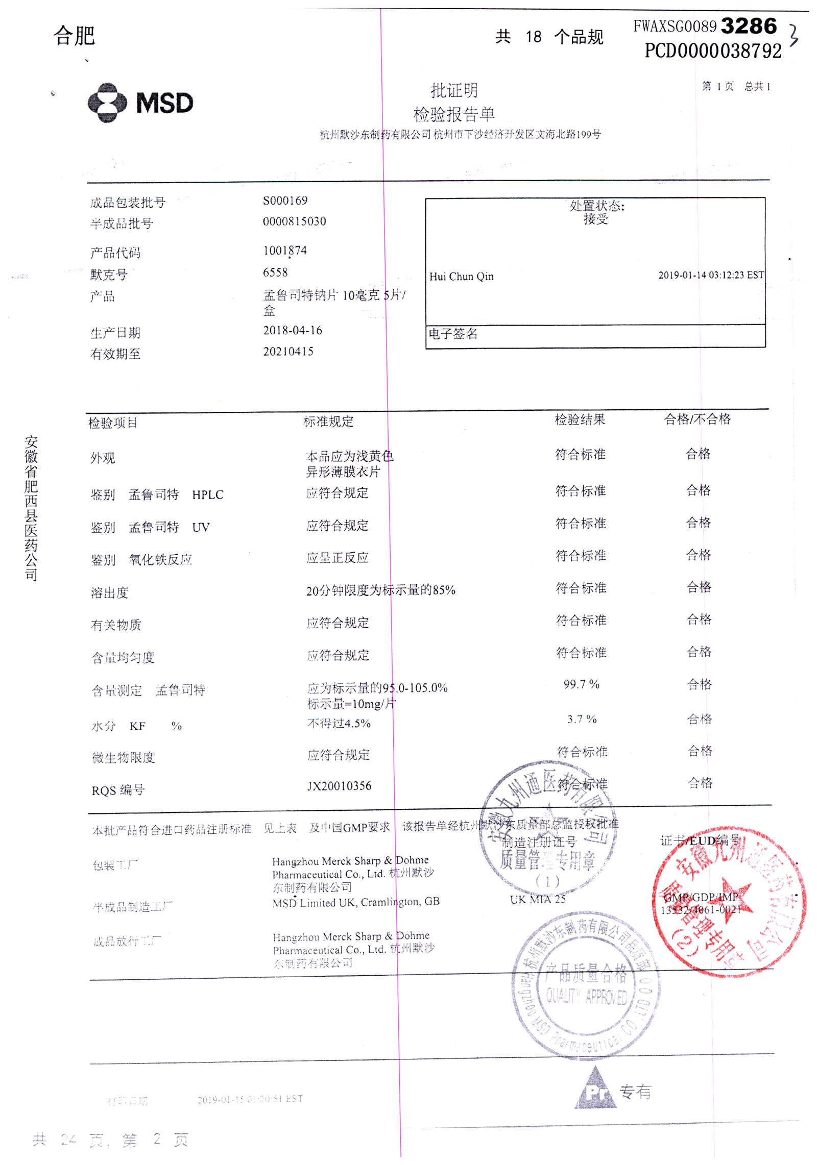 孟鲁司特钠片 | 10mg*5片 | S000169 | 查看详情 |