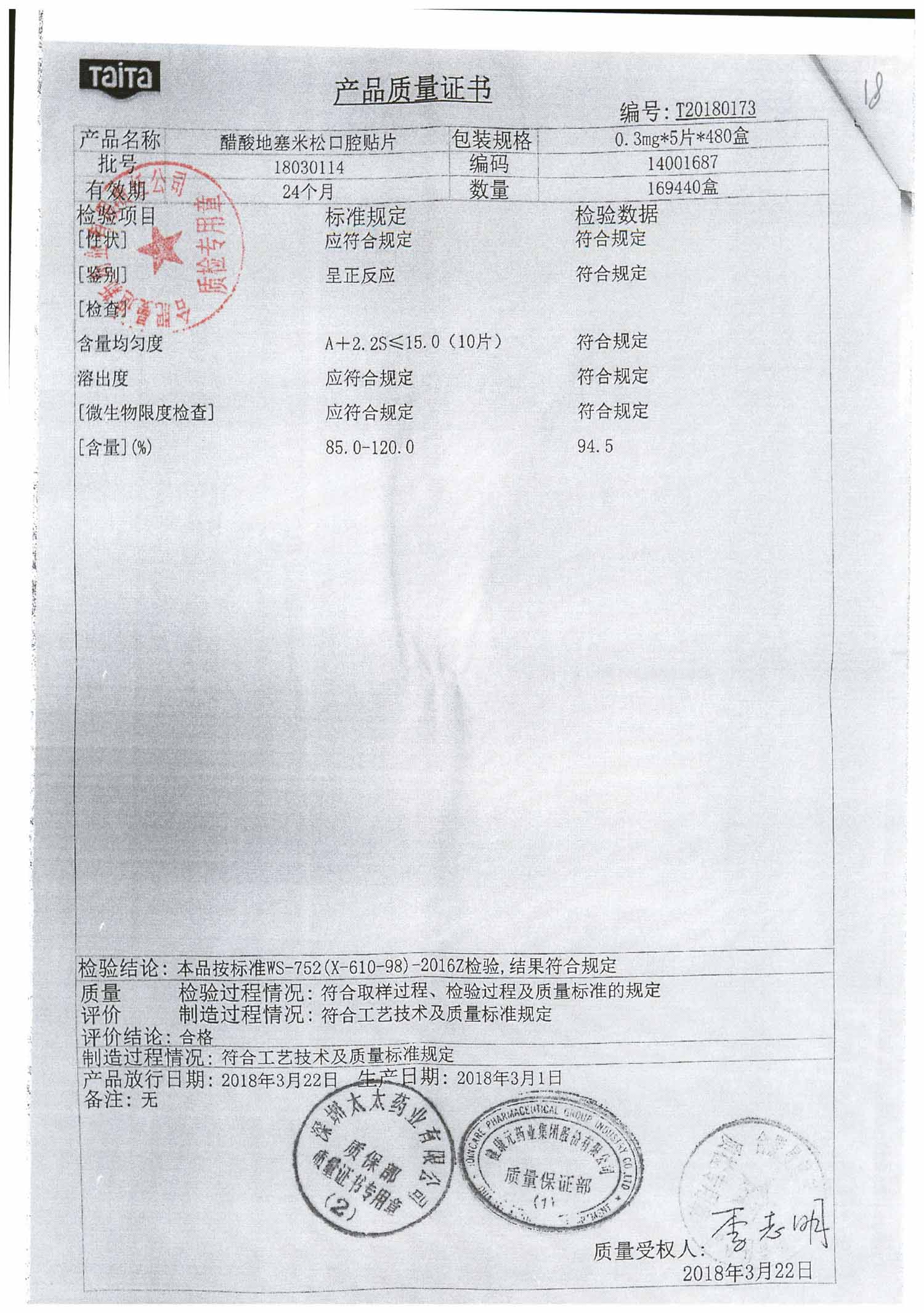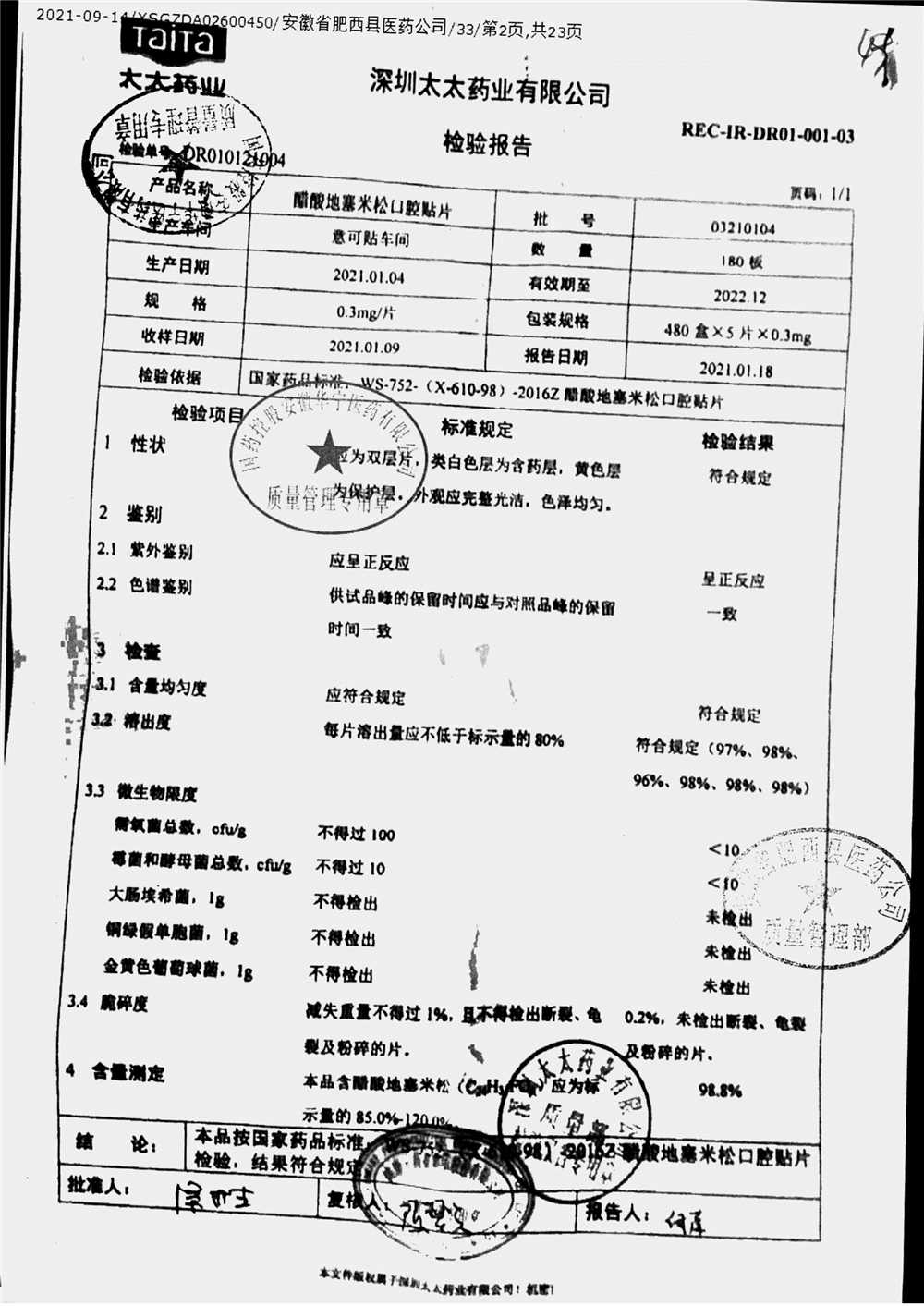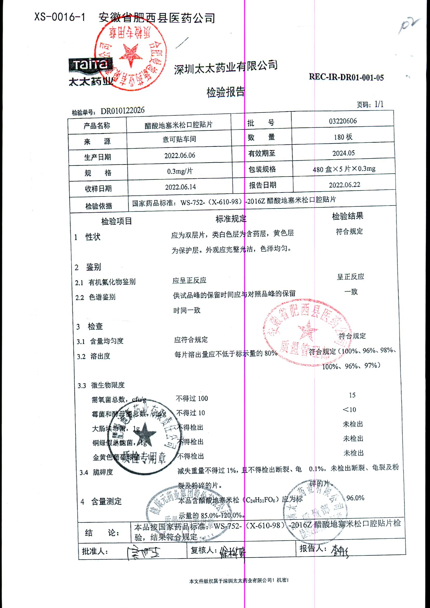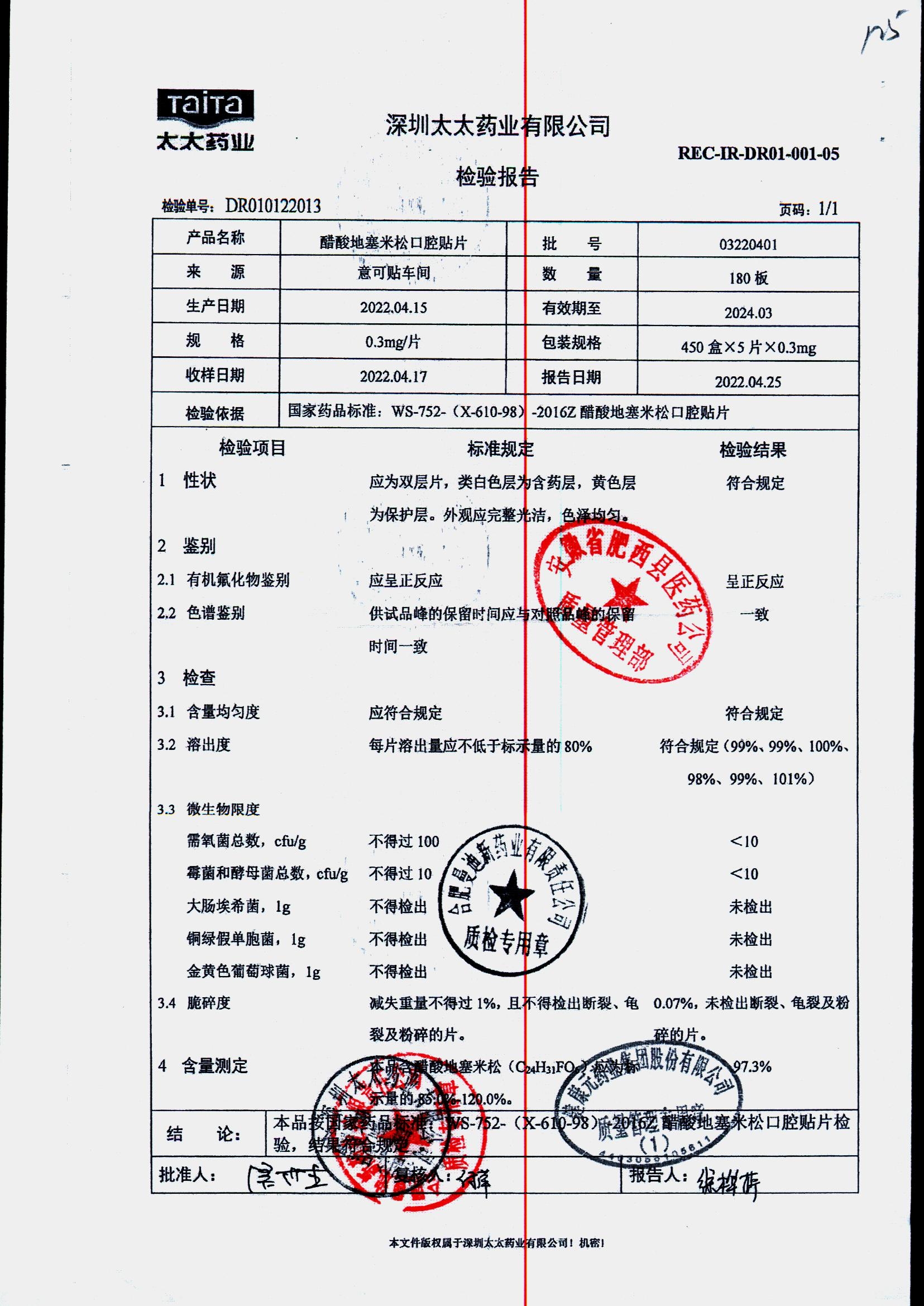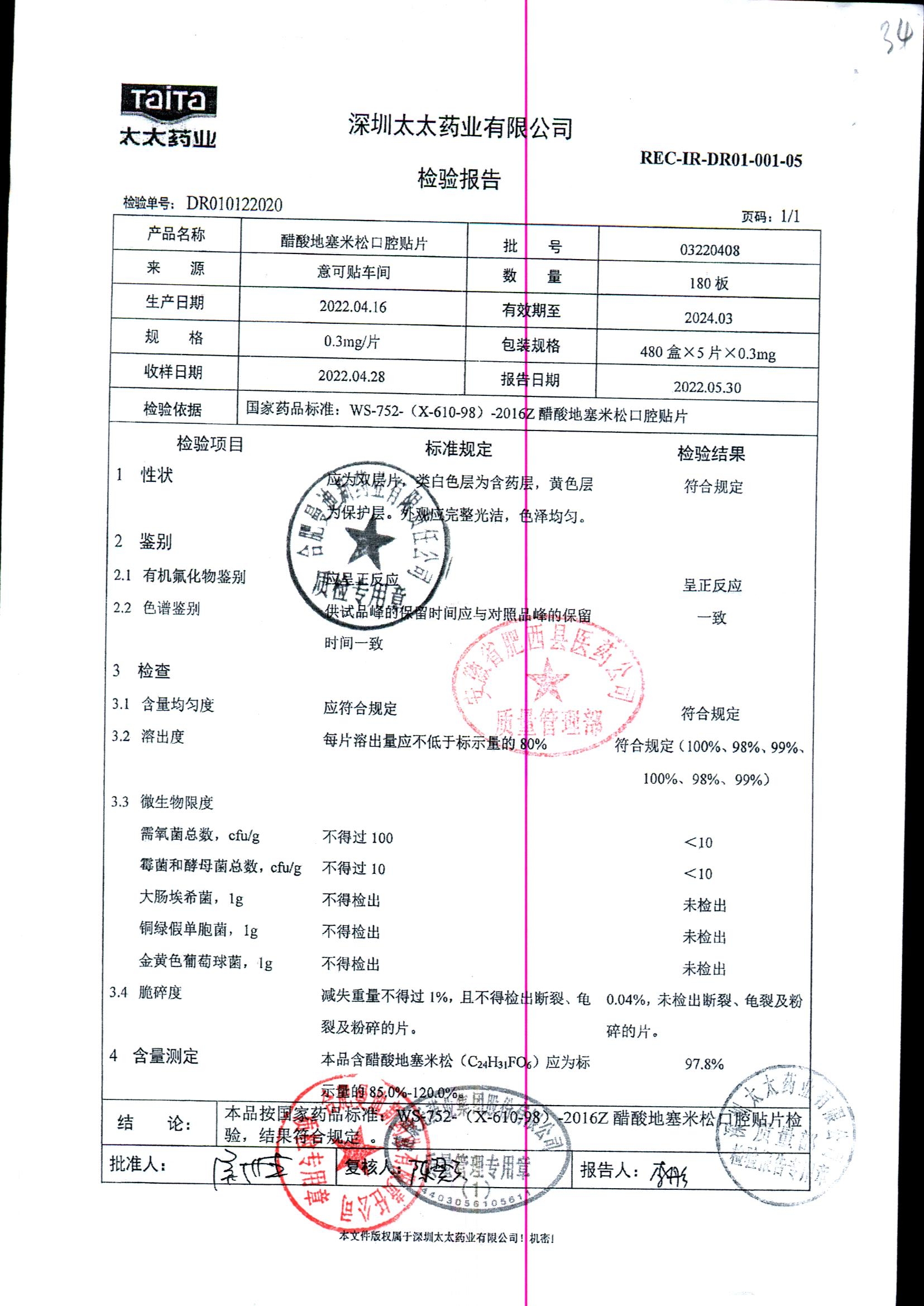 醋酸地塞米松口腔贴片 | 0.3mg*5片 | 03230407 | 查看详情 |