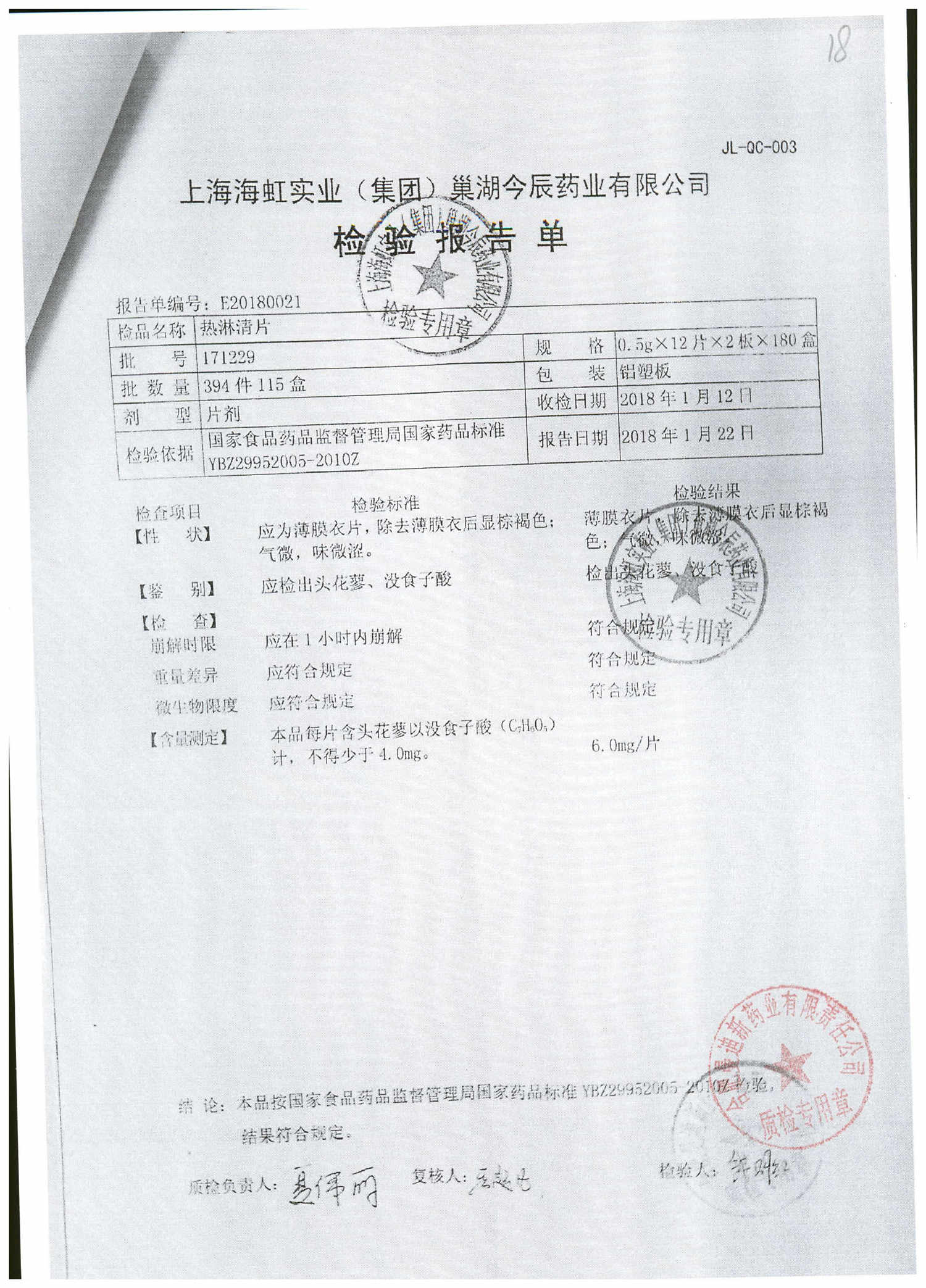 热淋清片 | 0.5g*24片 | 201111 | 查看详情 |