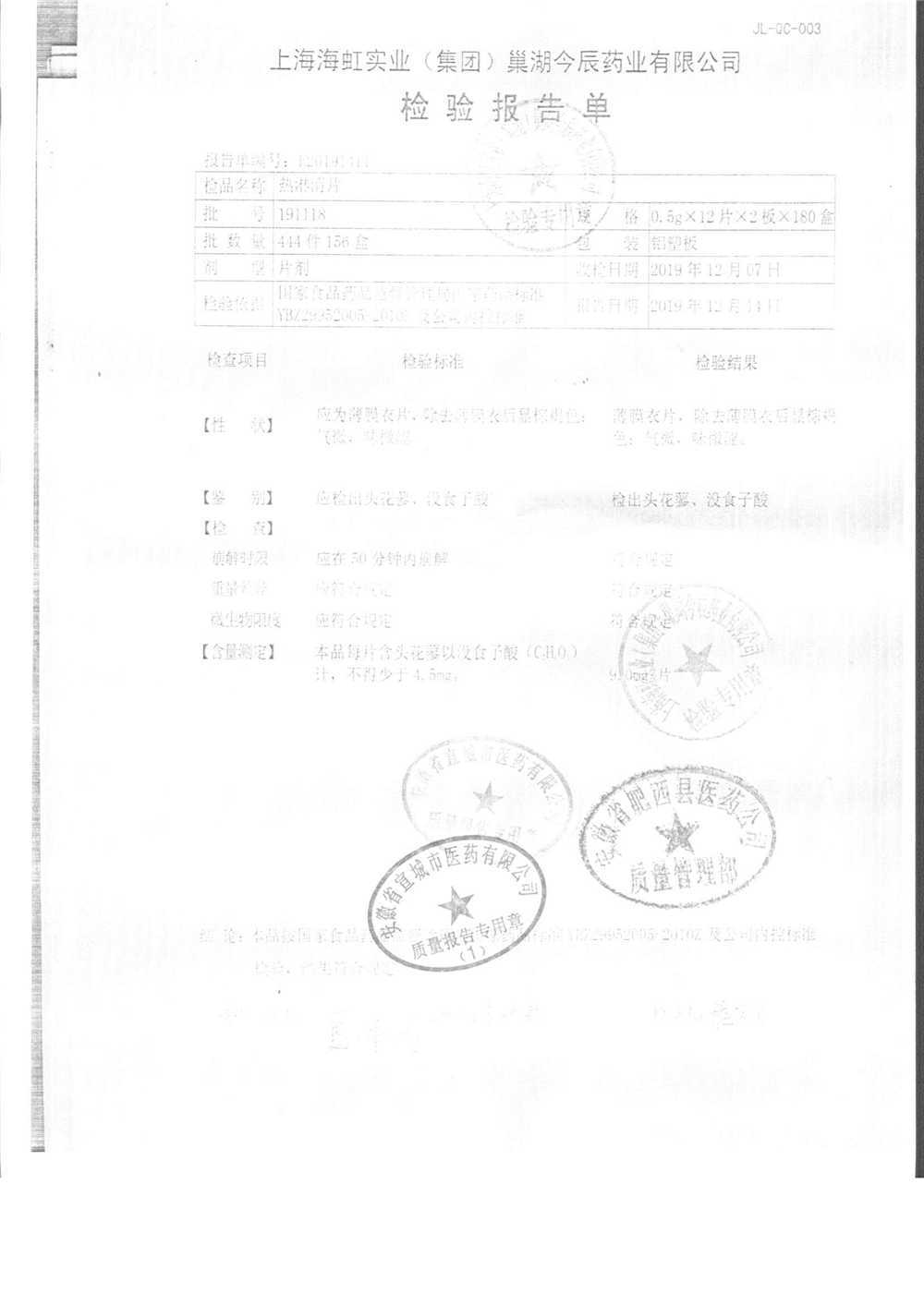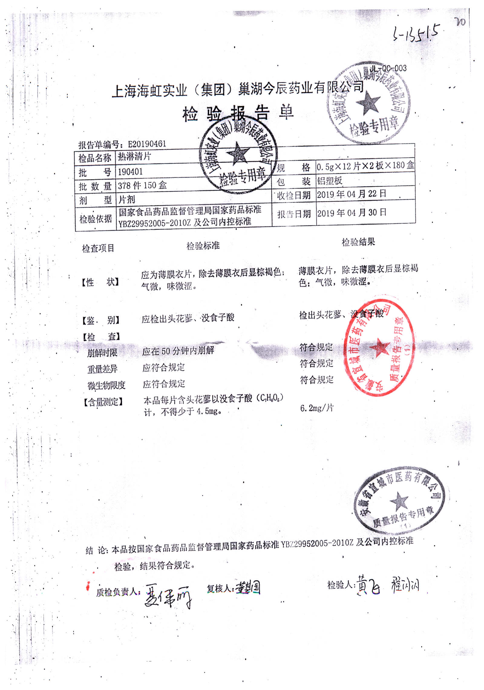 热淋清片 | 0.5g*24片 | 190401 | 查看详情 |
