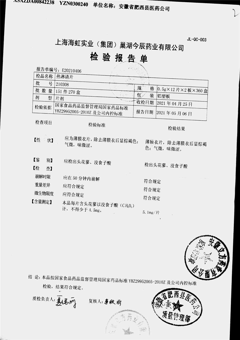 热淋清片 | 0.5g*24片 | 210308 | 查看详情 |