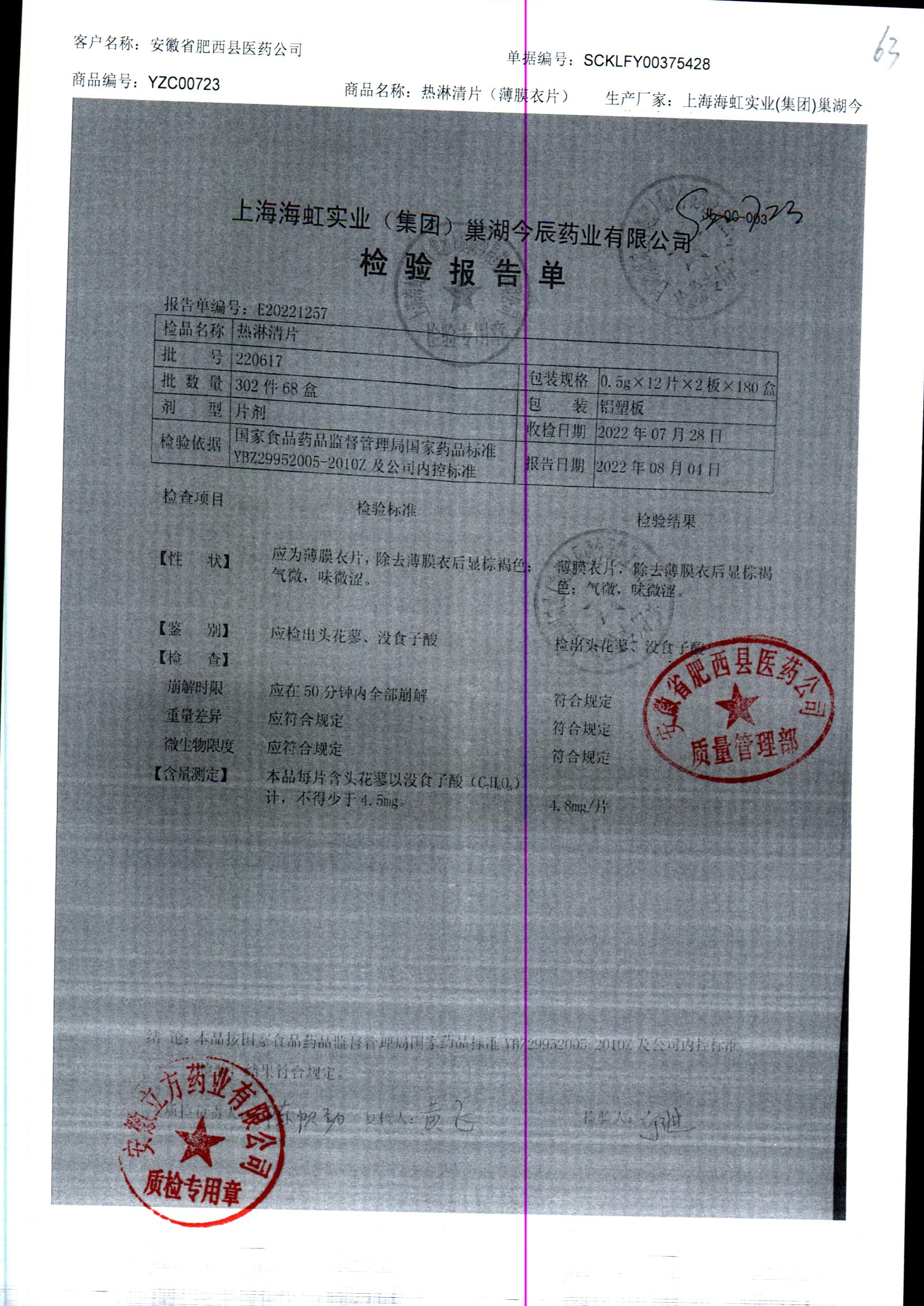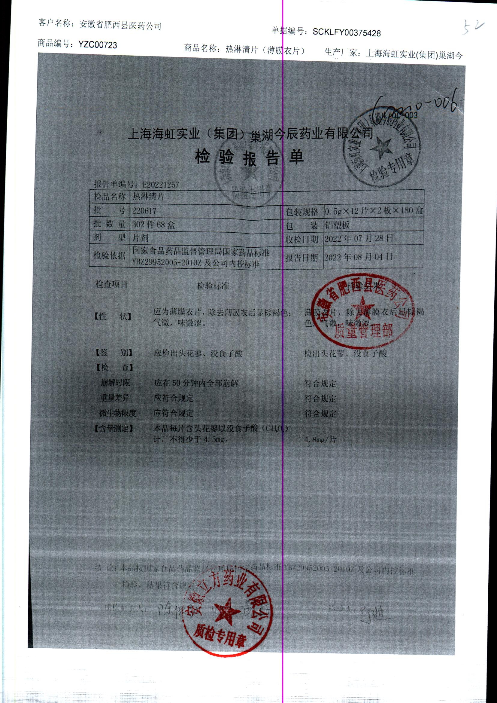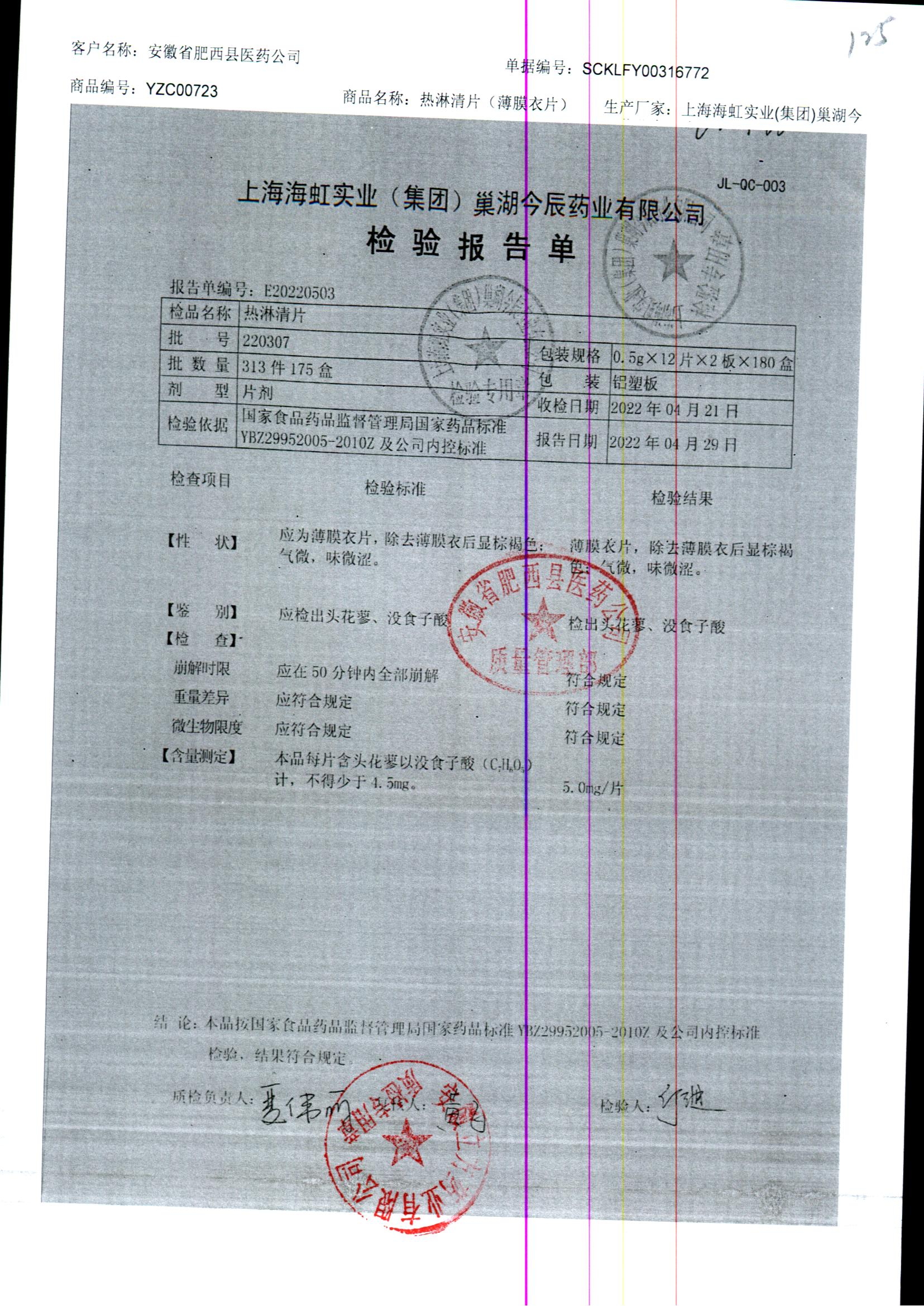 热淋清片 | 0.5g*24片 | 220307 | 查看详情 |