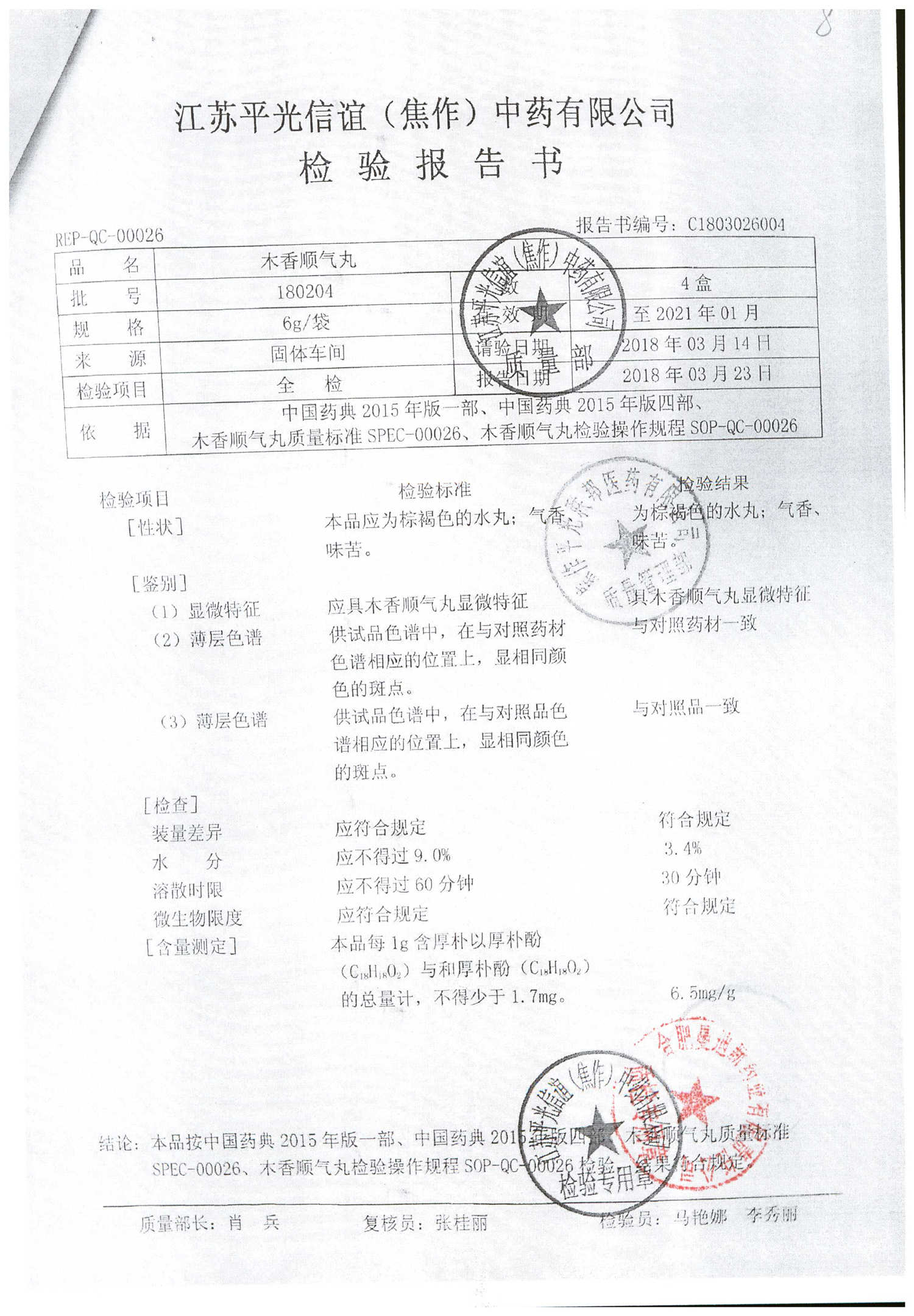 木香顺气丸 | 6g | 180204 | 查看详情 |