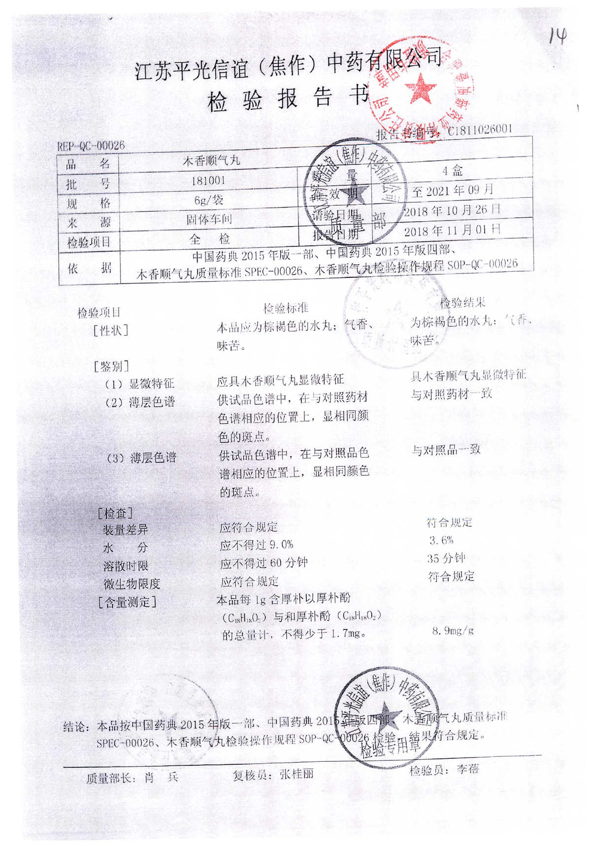 木香顺气丸 | 6g | 181001 | 查看详情 |