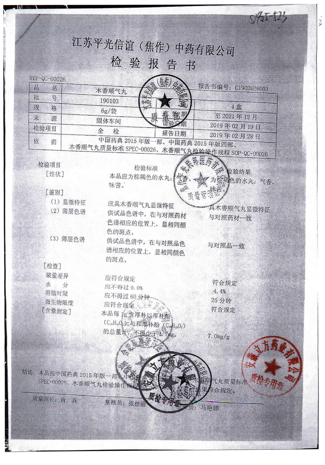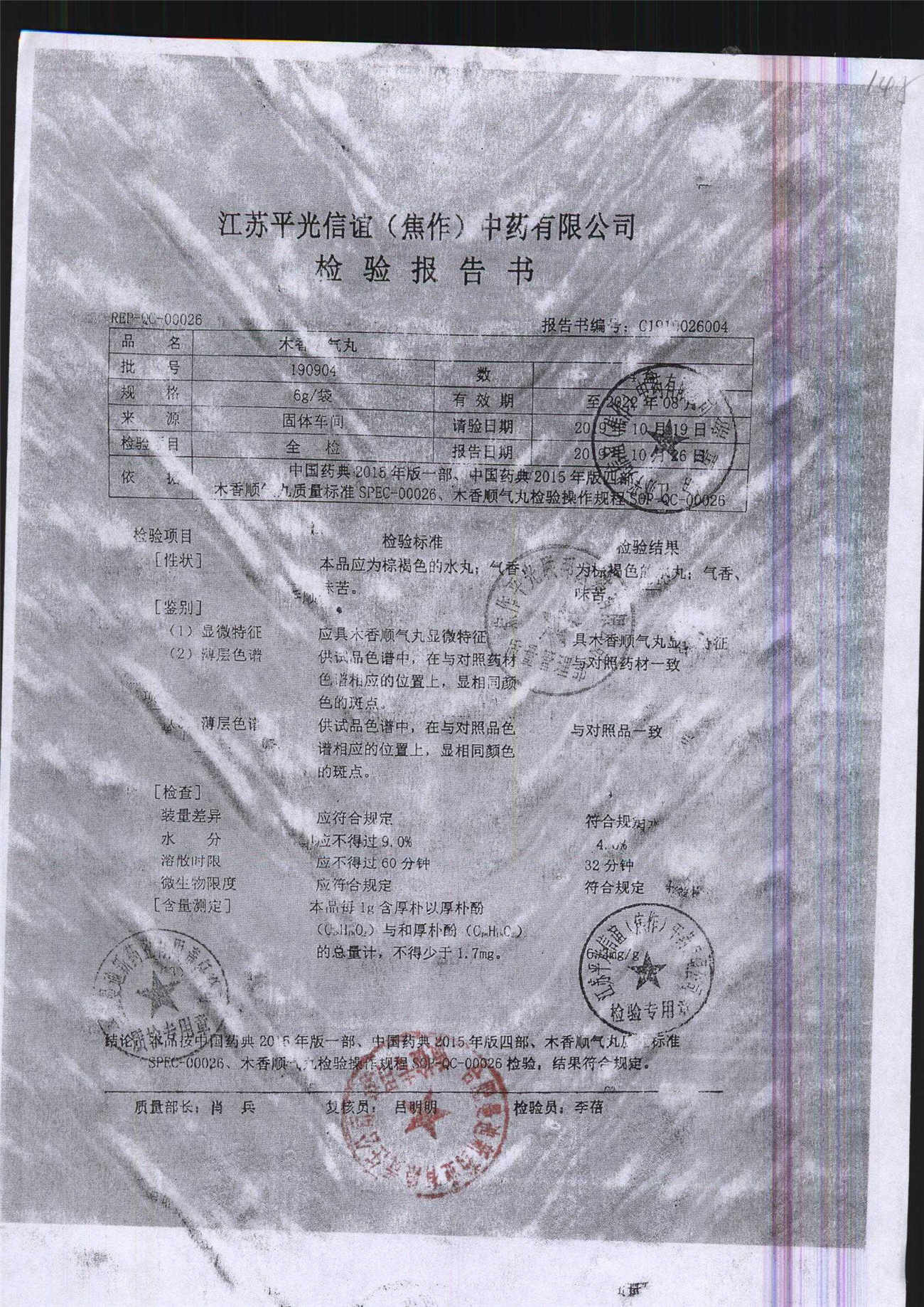 木香顺气丸 | 6g | 190904 | 查看详情 |
