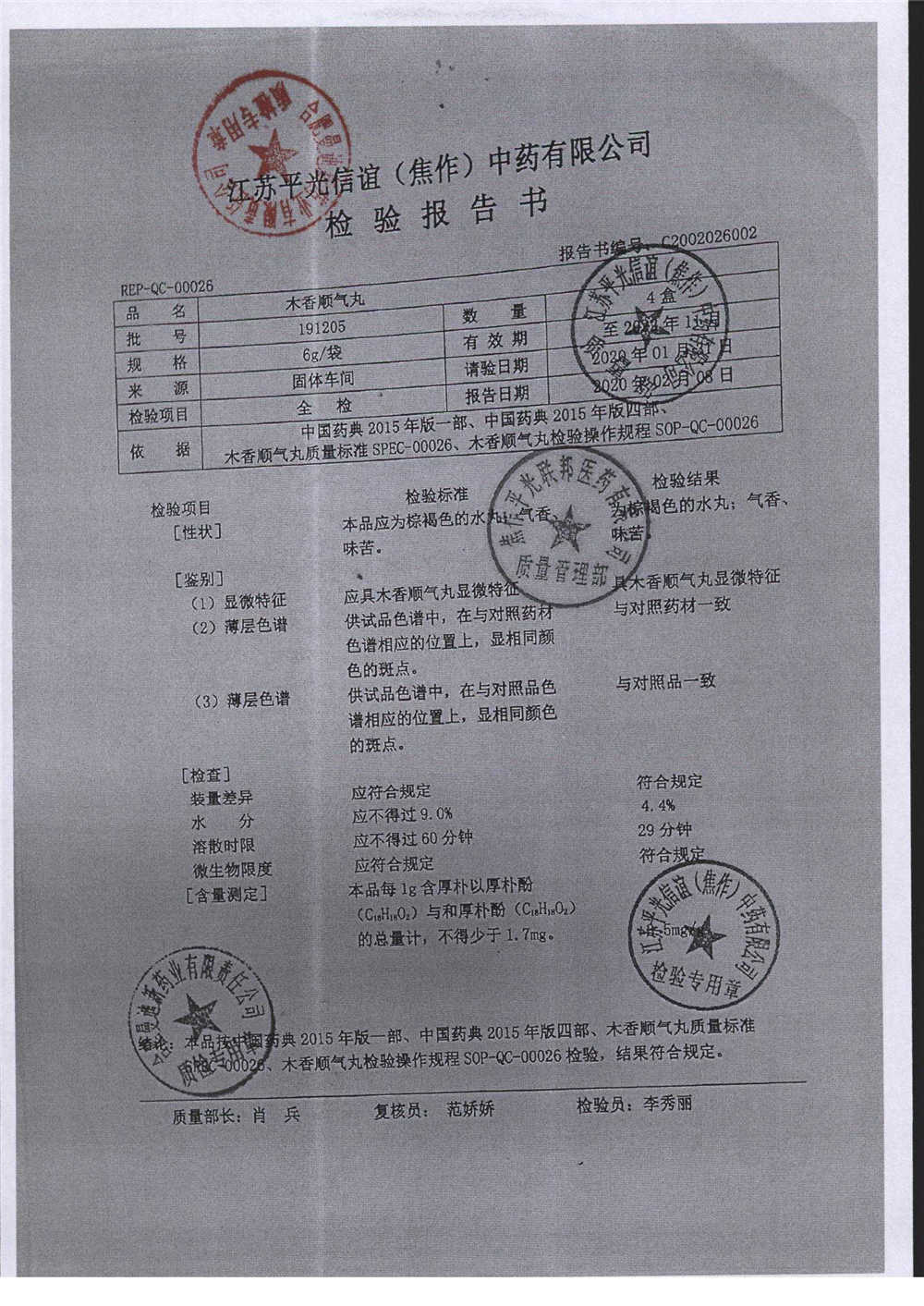 木香顺气丸 | 6g | 191205 | 查看详情 |