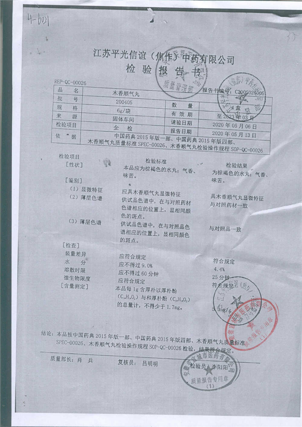 木香顺气丸 | 6g | 200405 | 查看详情 |