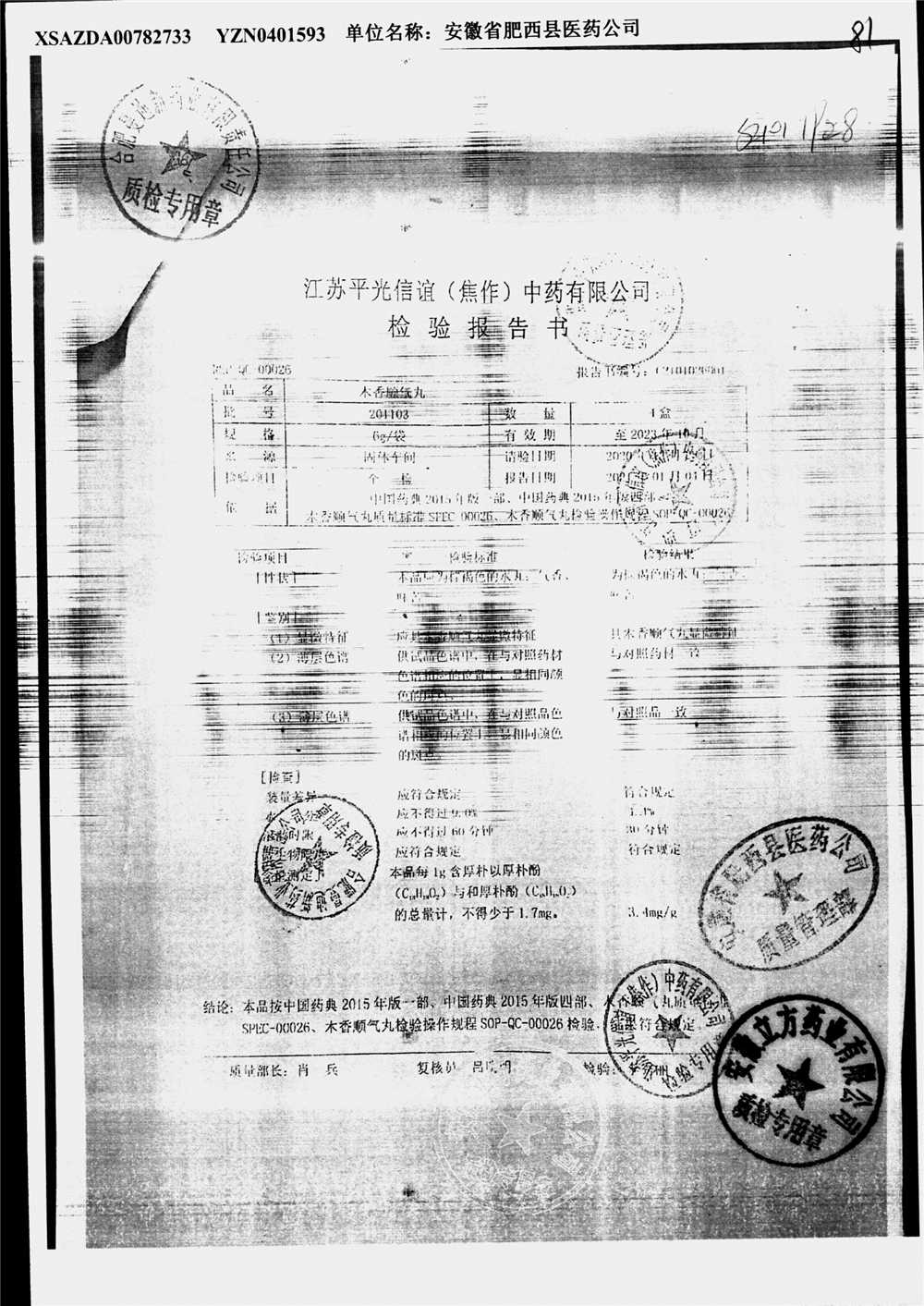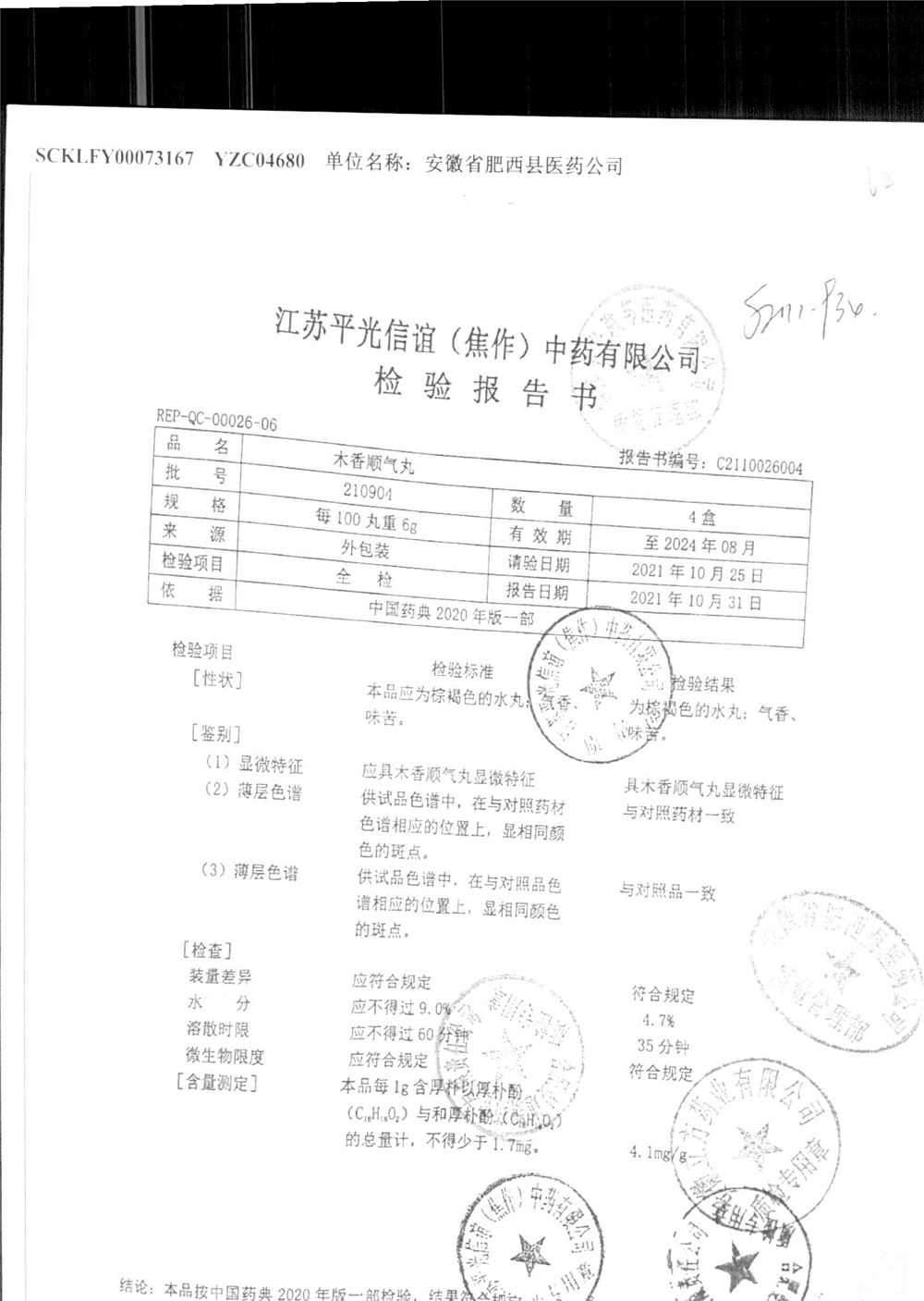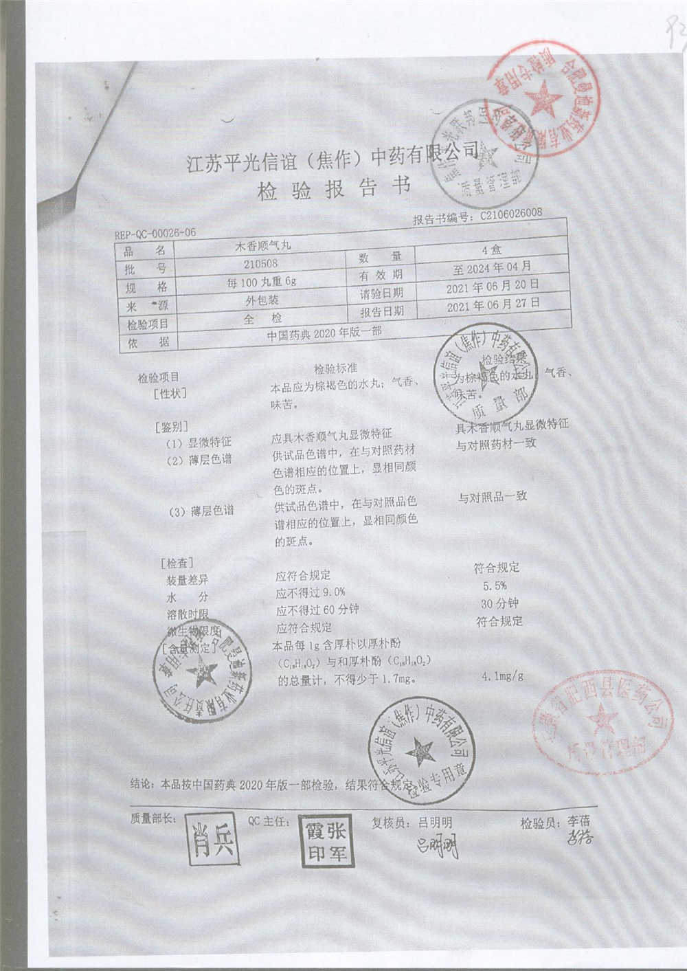 木香顺气丸 | 6g | 210904 | 查看详情 |