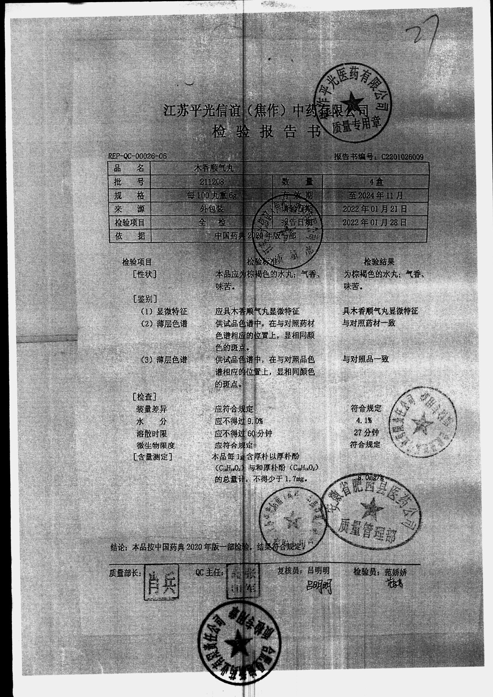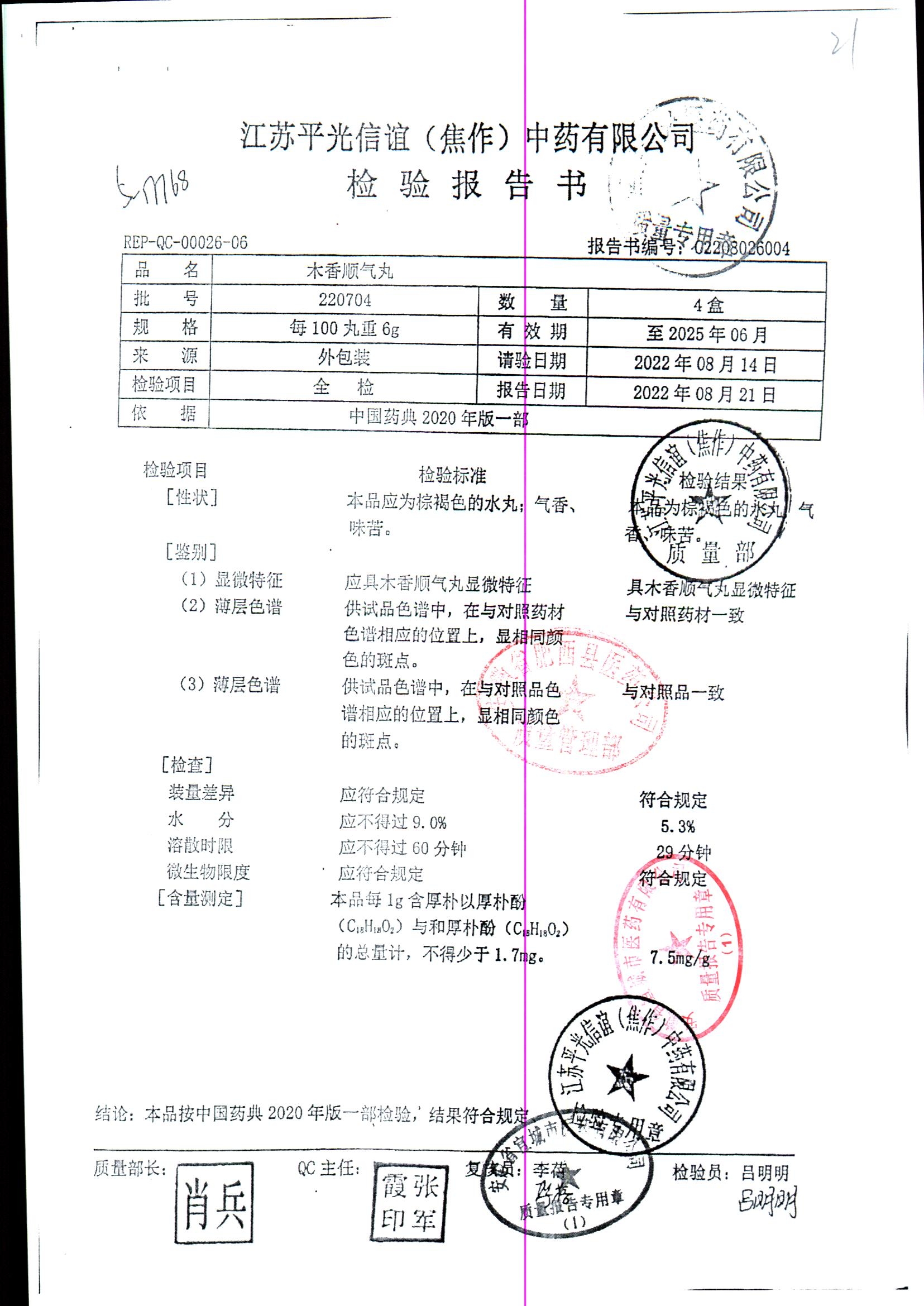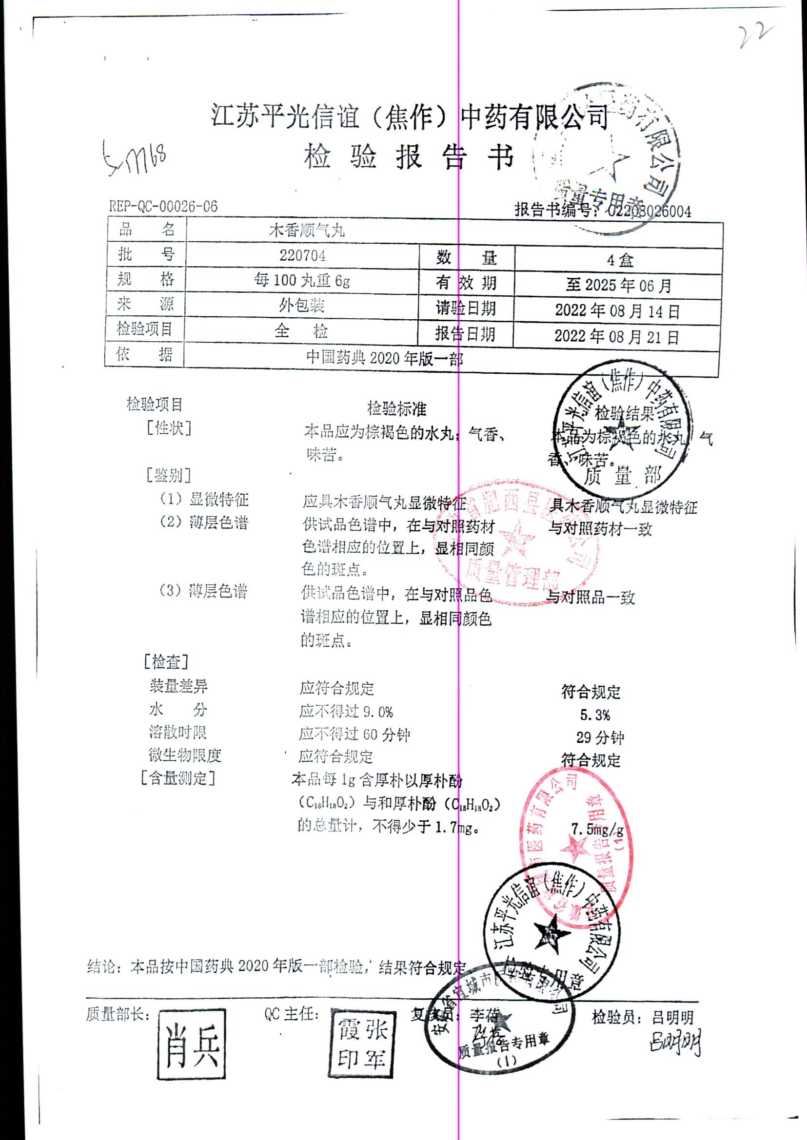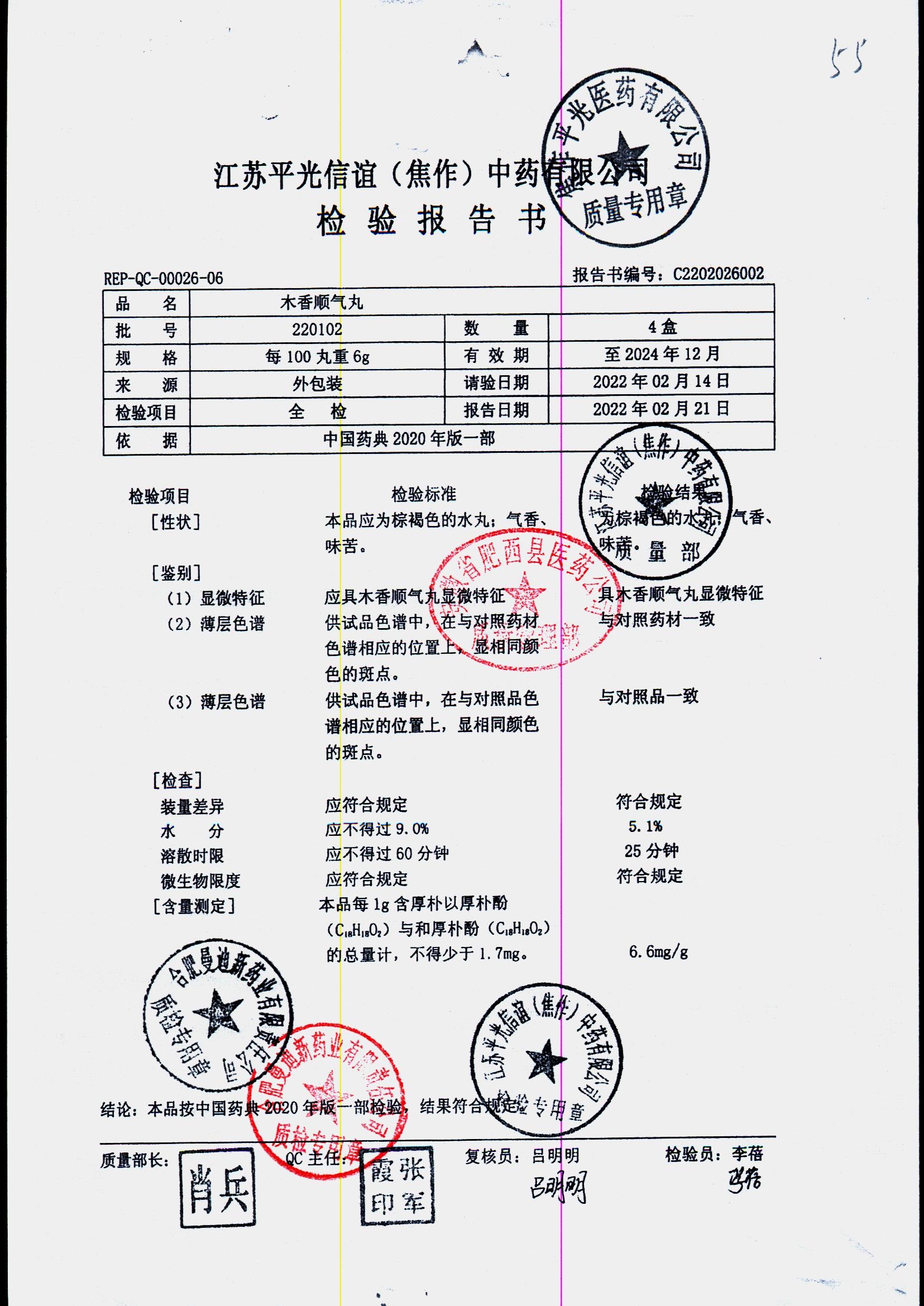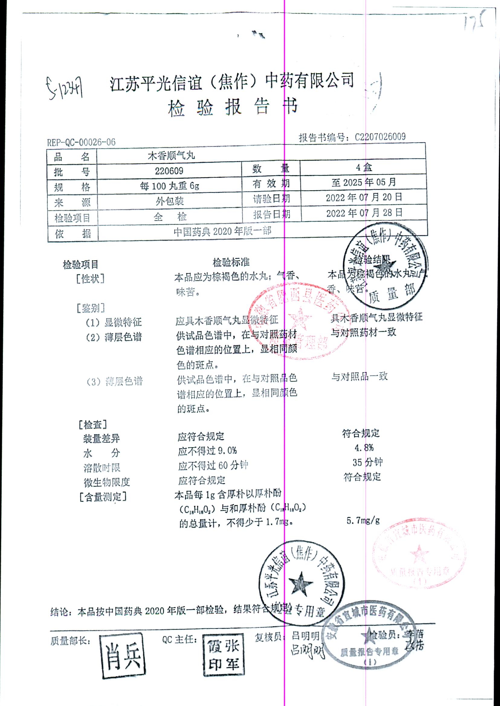 木香顺气丸 | 6g | 220704 | 查看详情 |