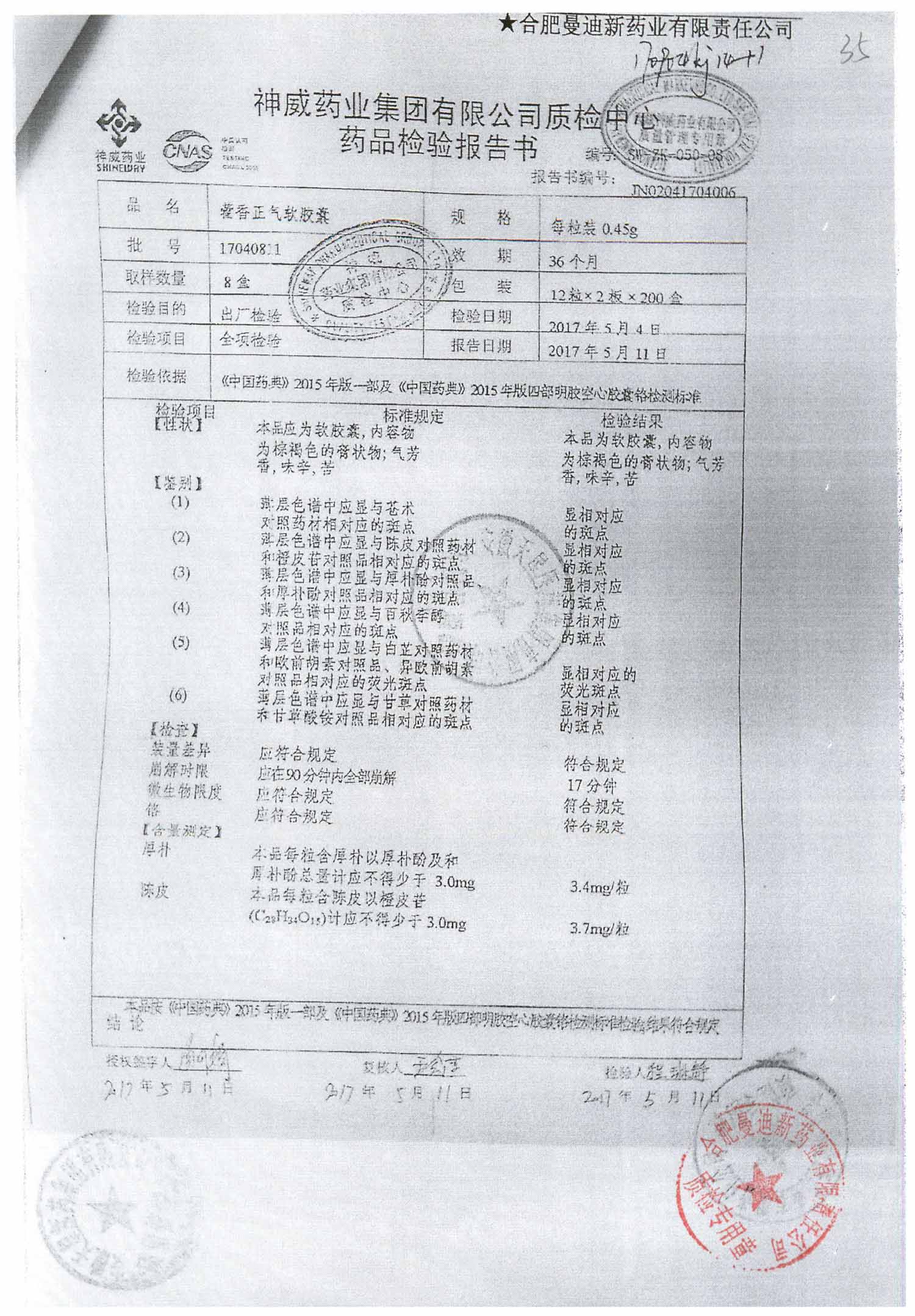 藿香正气软胶囊 | 0.45g*24粒 | 17040811 | 查看详情 |